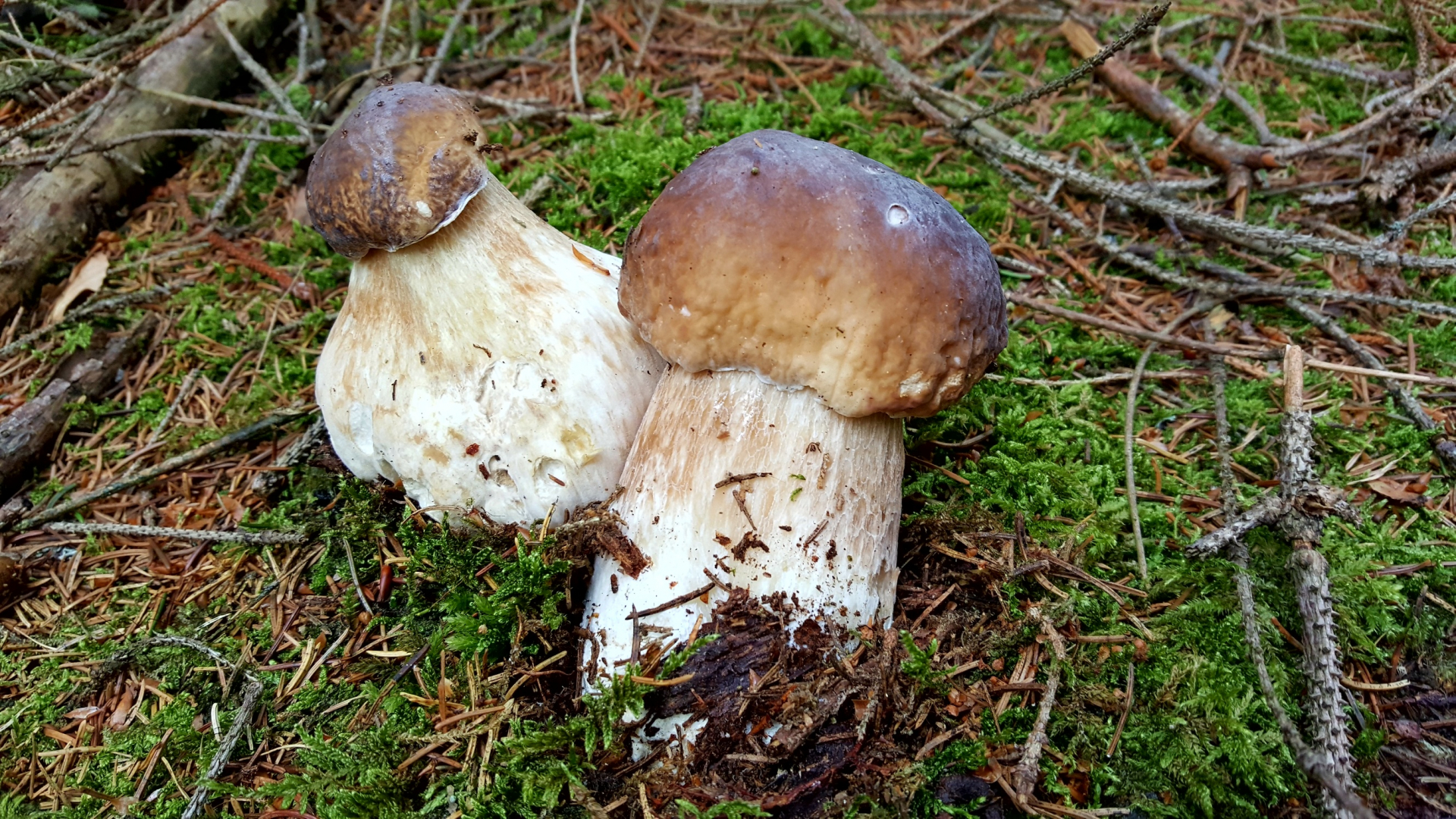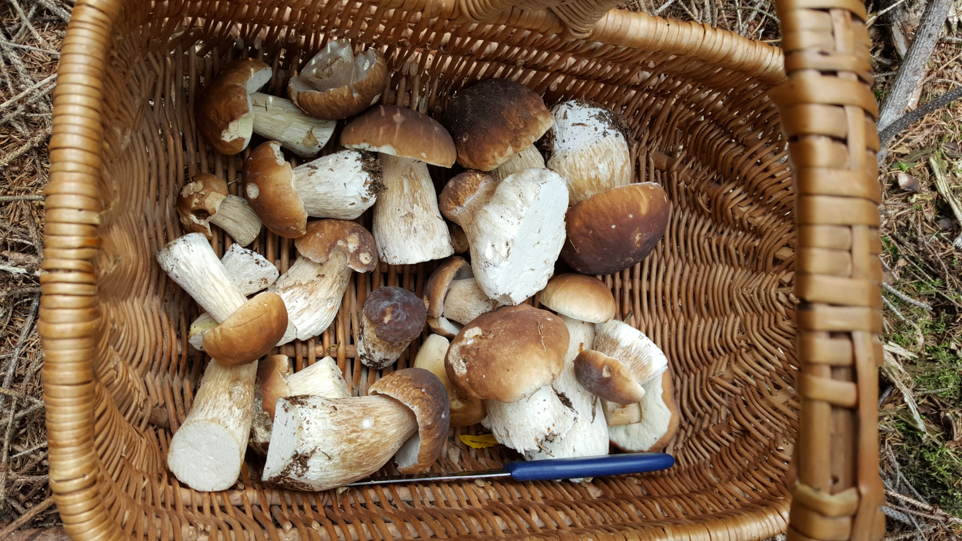 Am Samstag (mit nur 1,5 Stunden Zeit im Gepäck) habe ich immerhin 14 Steinpilze und ein paar wenige Pfifferlinge finden können. Am Sonntag waren es dann 24 schöne Exemplare (siehe Bilder)