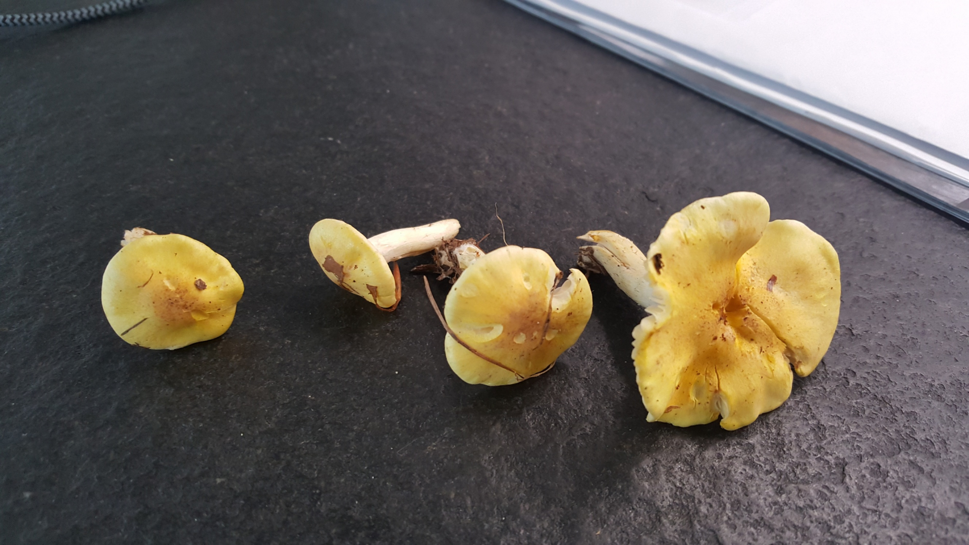 Bei meiner letzten Tour am 10. November habe ich diese Pilze gefunden, die ich aufgrund der Farbe zunächst für Pfifferlinge hielt. Dafür gehen mir aber die Leisten nicht trichterförmig genug an den Stil heran. Habe die Pilze zur Bestimmung mal mit nach Hause genommen. Mein Buch konnte mir aber nicht weiterhelfen. Deshalb meine Frage an die Experten: Welcher Pilz ist das? (So auch der Name von meinem Pilz-Buch