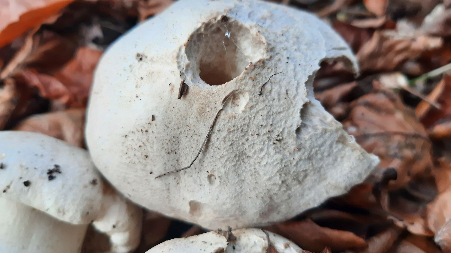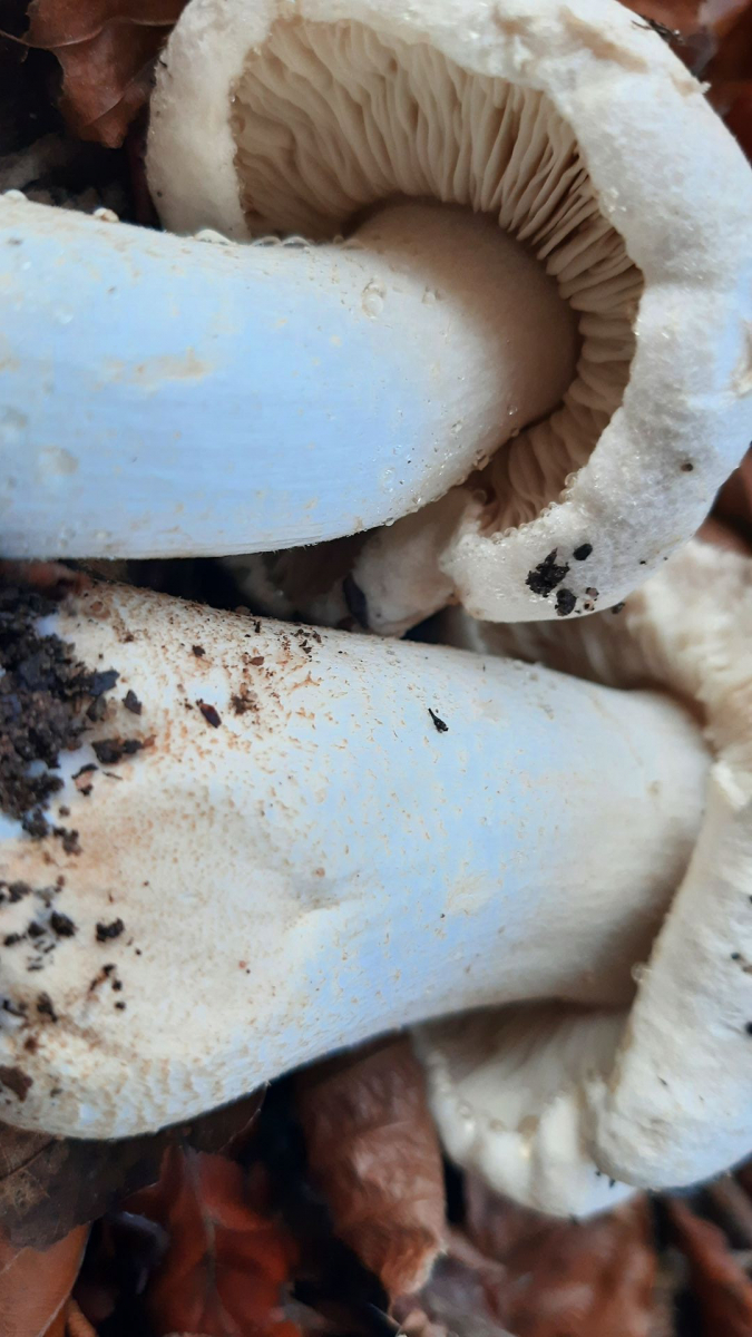 Dieser Riesenrötling-Drilling ist der einzige Fruchtkörper dieser Art dieses Jahr, obwohl ich die letztes Jahr im Dutzend hätte einsammeln können. Die Huthaut ist war etwas dunkel, aber mittlerweile kenne ich diese nicht so häufige Art recht gut und kann sie auch an dem mehlig-chemischen Geruch ohne ranzige oder gurkige Komponente ganz gut ansprechen: