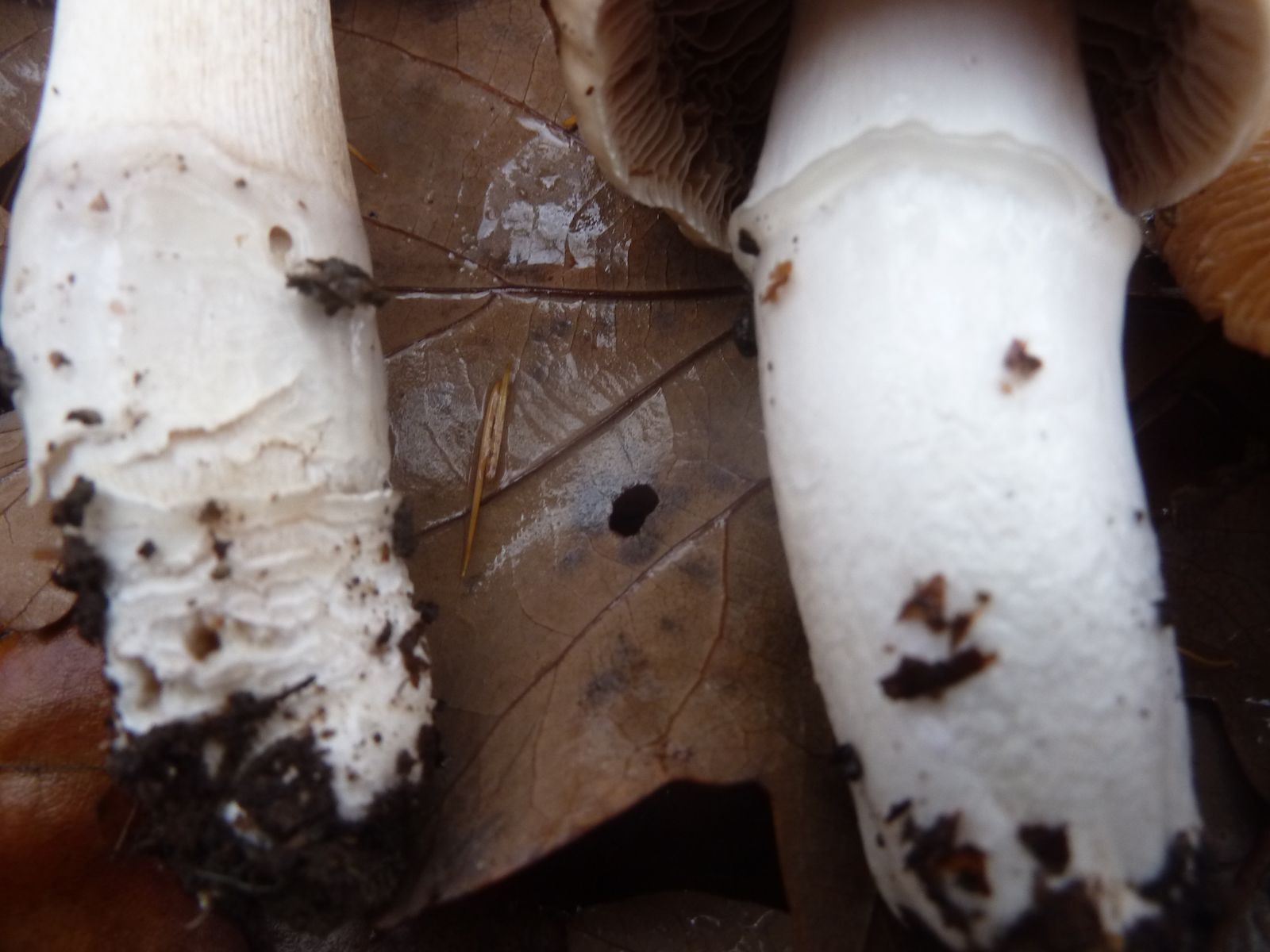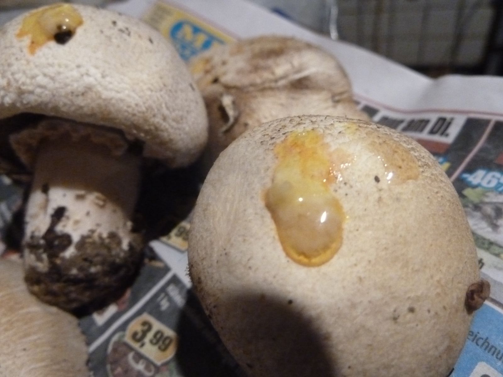 So, jetzt habe ich endlich einen Karbol-Champignon (erstes Foto rechts) als Vergleich und kann schonmal die KOH-Probe präsentieren. Bei meiner Kollektion nur ganz schwache Gelbfärbung nach einiger Zeit, während der Karbol sofort dottergelb wird.