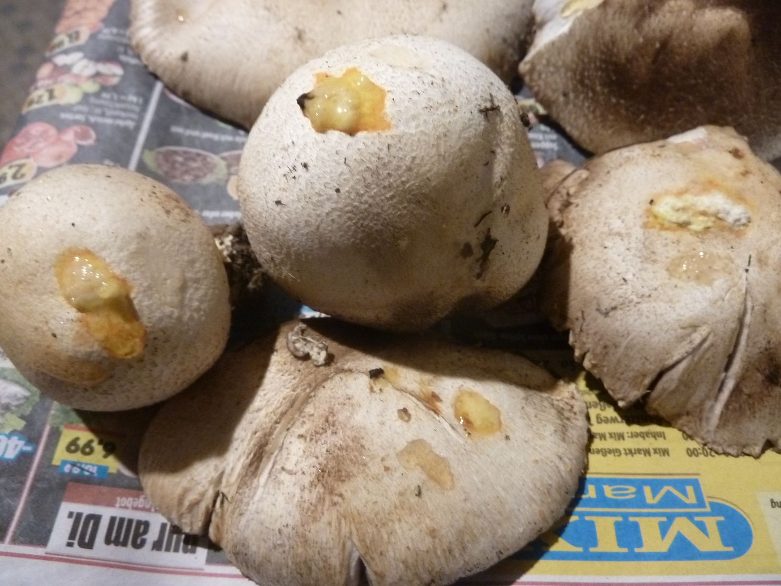 Ja, das stimmt. Die alten Exemplare sind ziemlich zäh, besonders die Stiele. Wenn man eine dreistellige Stückzahl zur Auswahl hat, nimmt man so 30 bis 40 kleine bis mittelgroße Exemplare mit noch eingerolltem Hutrand mit. Auch wenn ich Mönchsköpfe sehr gerne esse, hängen Sie mir nach drei oder vier Tagen zum Hals raus, dann brauche ich eine längere Pause.