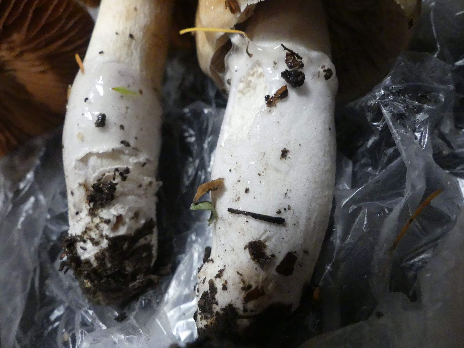 Hallo Bernd! Ja, Pholiota lenta sieht von oben sehr ähnlich aus. Eine bei feuchtem Wetter ordentliche Schleimschicht und die dezenten Schüppchen auf dem Hut sind dann weitestgehend vom Regen abgewaschen. Diese Exemplare hatte zuehli in der Hand und als solche bestimmt: