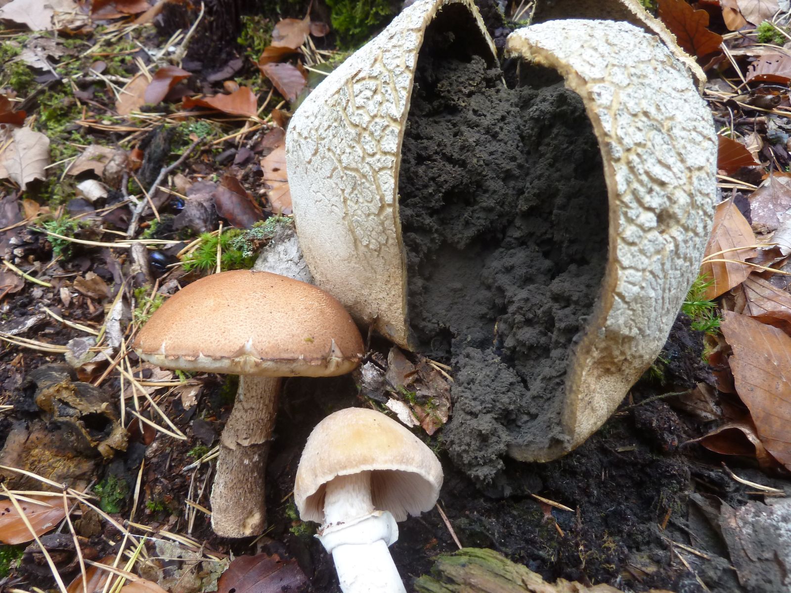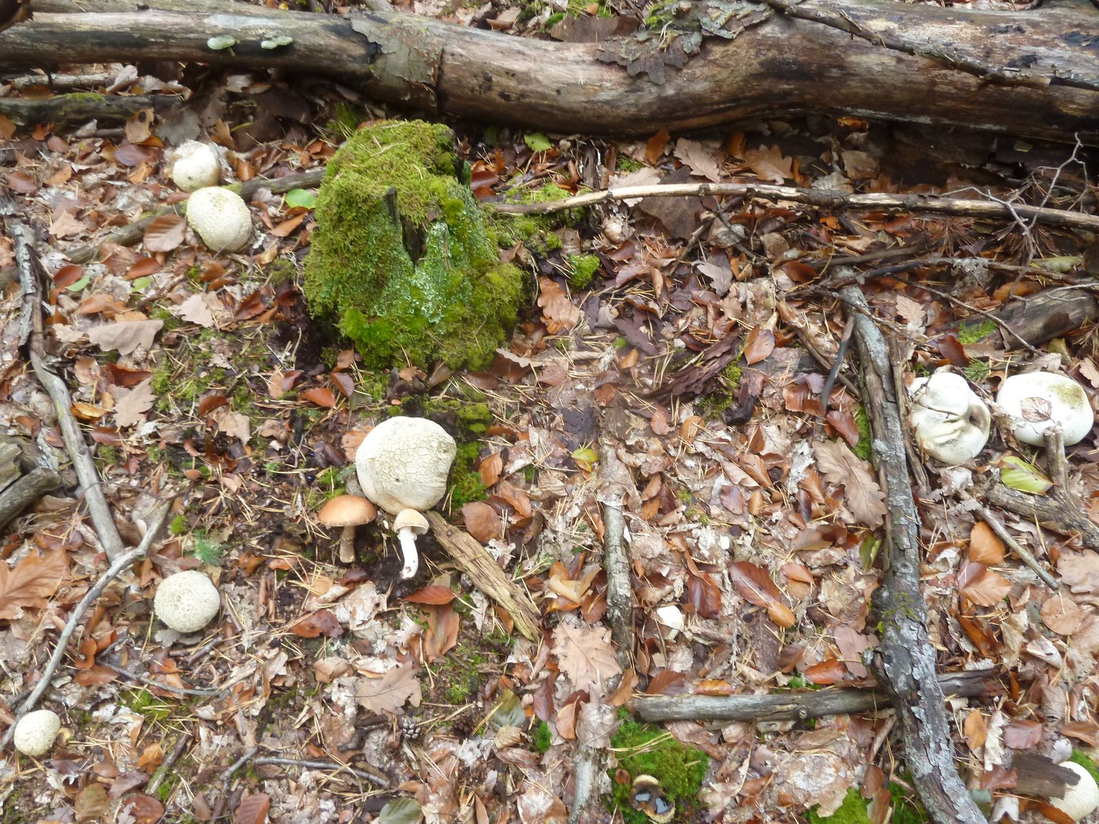 Diese Exemplare habe ich im Eichen-Hainbuchen-Wald auf basischem Basaltboden gefunden. Geruch deutlich mehlartig, ähnlich wie Maipilz, aber nicht so intensiv und auch etwas angenehmer (nicht so ranzig-ölig). Meine Bestimmungsversuche führten mich zum Waldschnecking Hygrophorus nemoreus. Allerdings habe weder weiter führende Literatur, noch einen Gesamtüberblick über die möglichen Verwechslungspartner. Kommentare und Korrekturvorschläge sind daher willkommen.