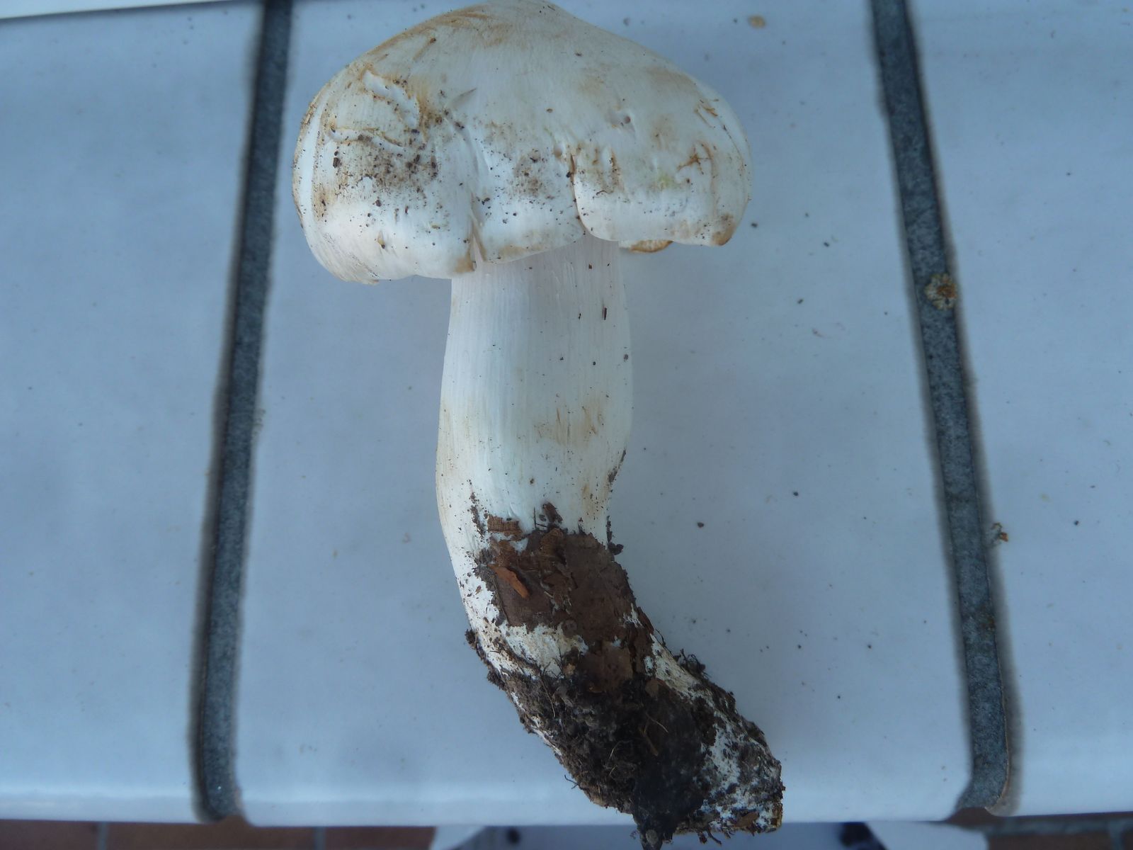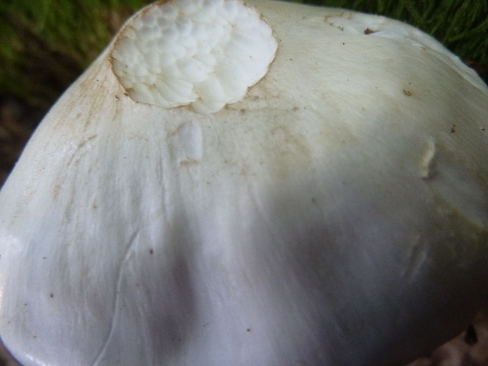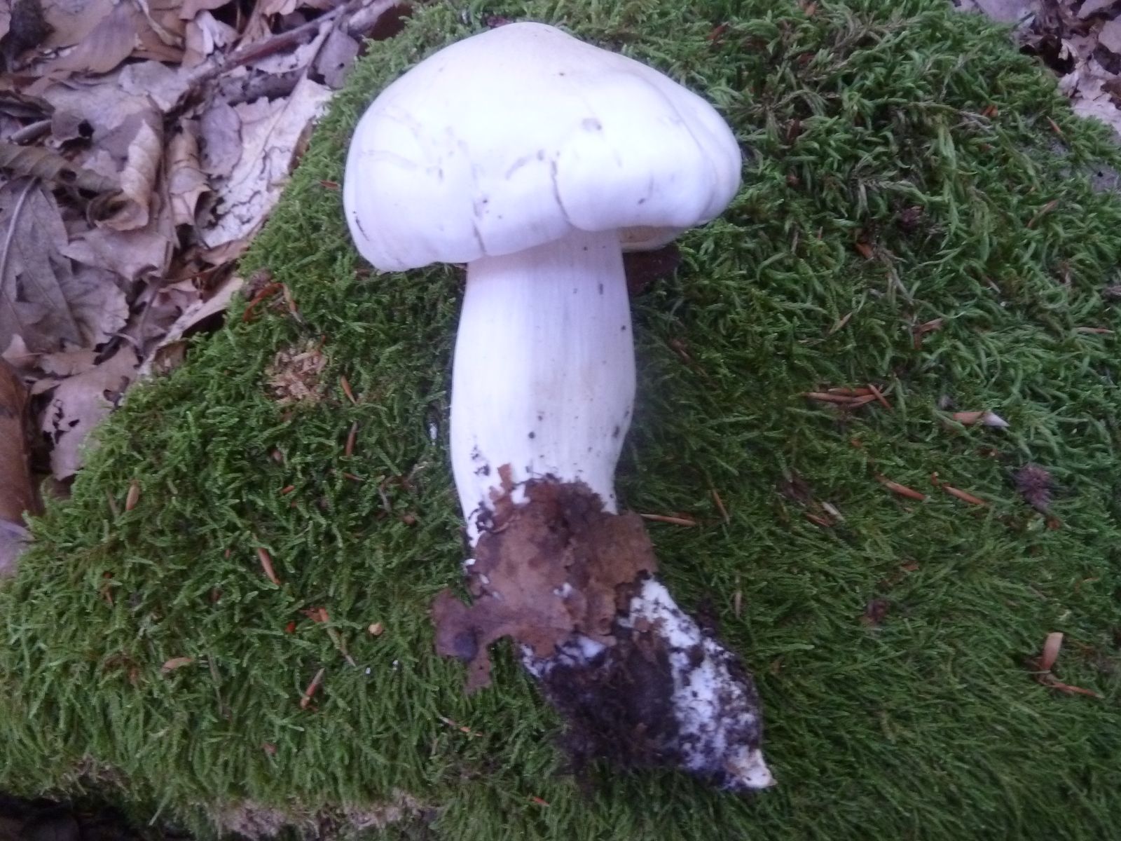 Hier ein "richtiger" weißer Knollenblätterpilz Amanita phalloides var. alba, den ich vergangene Woche in einem Eichen-Hainbuchen-Mischwald gefunden habe. Beachte bitte die häutige Knolle an der Stielbasis, das ist das wichtigste Unterscheidungsmerkmal zu deinem Fund.