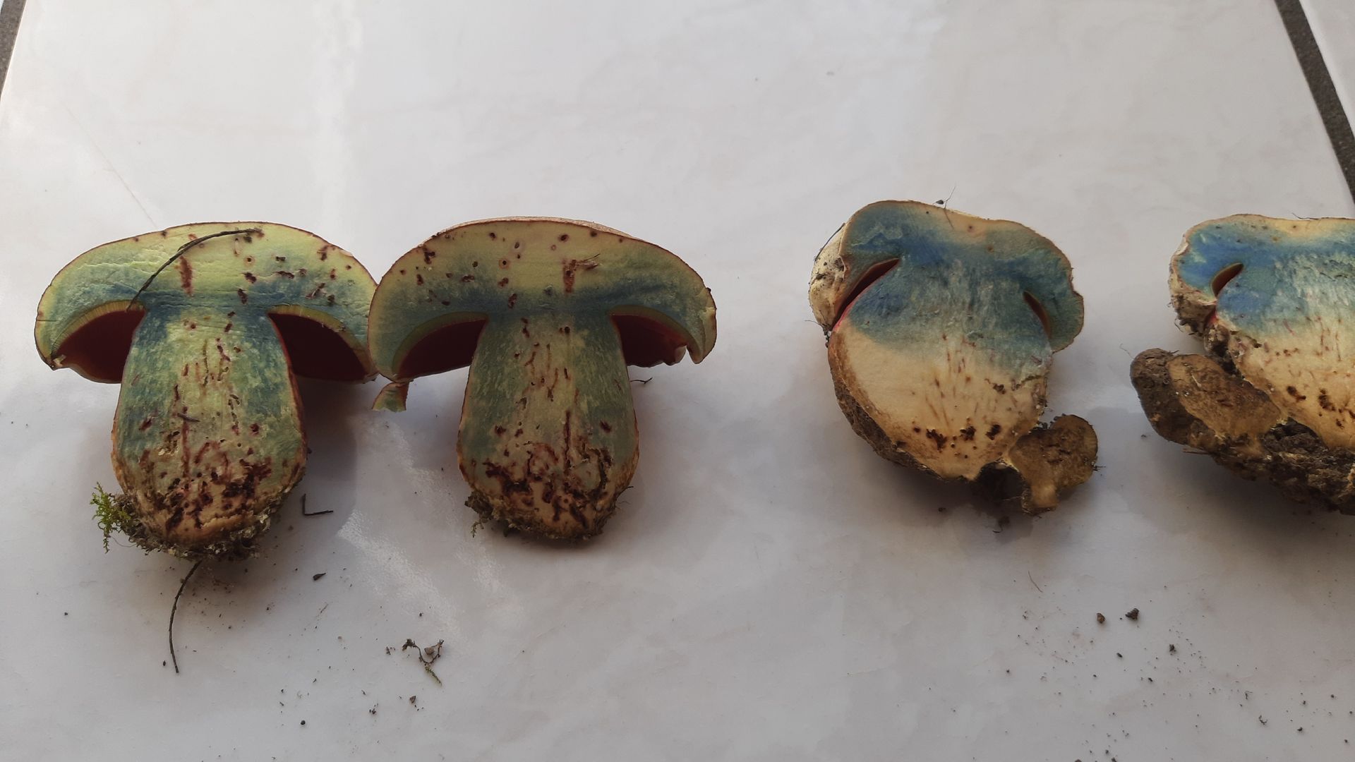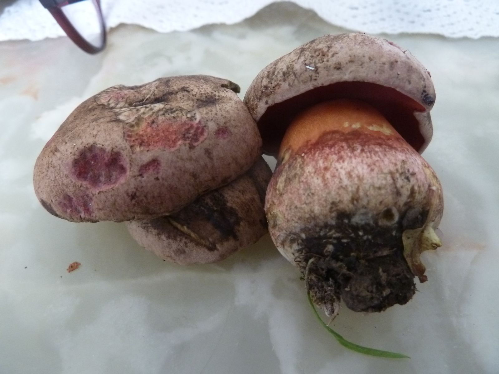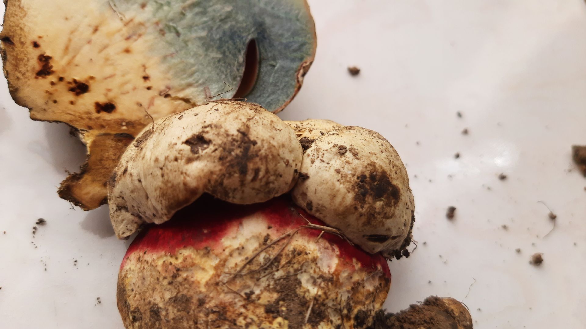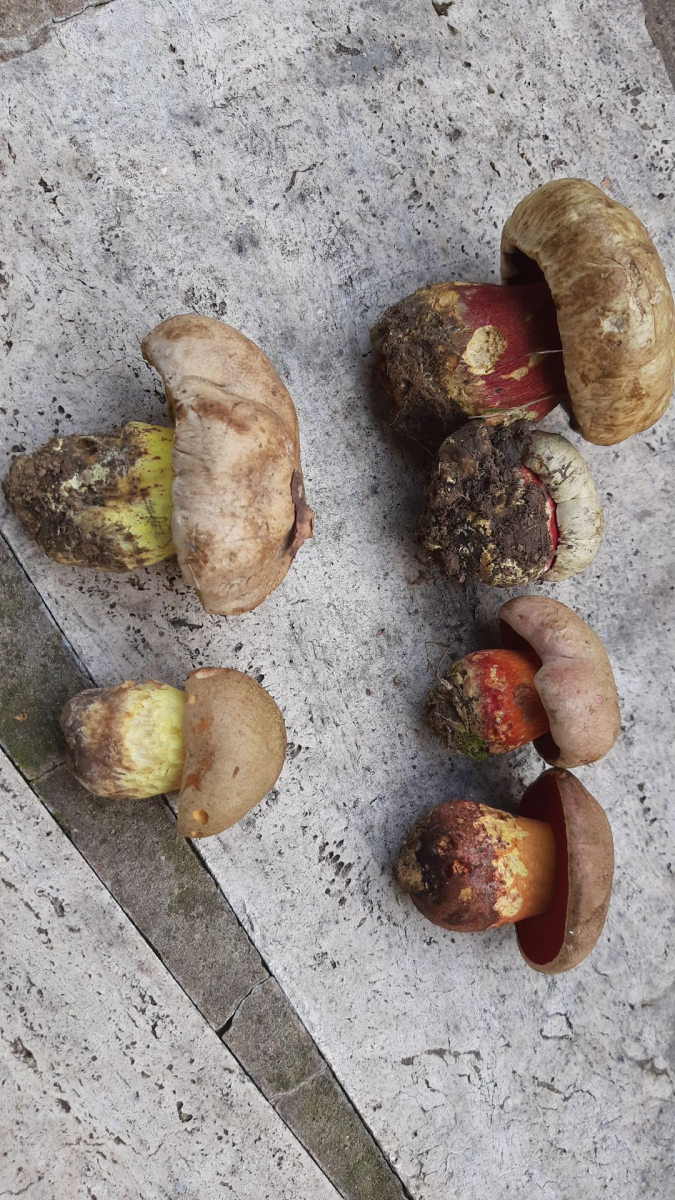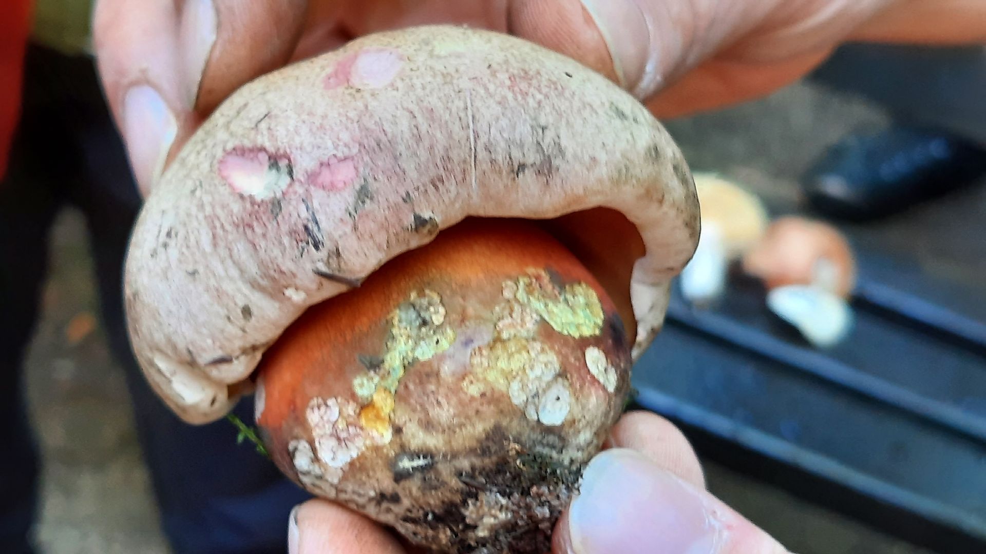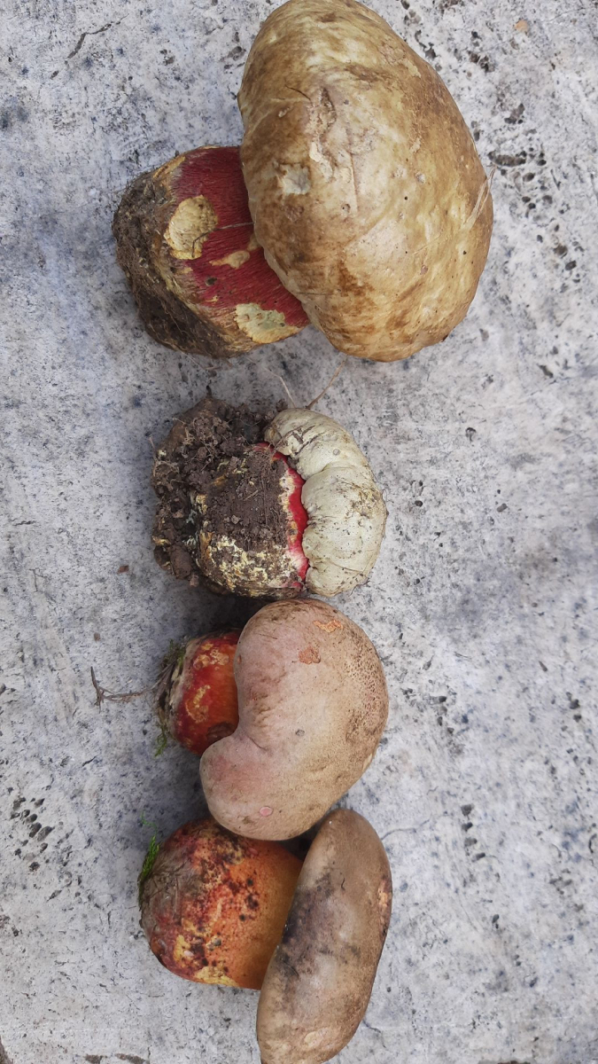 Eine intensive Rötung habe ich zwar nicht festgestellt, aber sehr wohl bei älteren Exemplaren bräunliche Verfärbungen. Auch ist die Bandbreite der Hut- und Flockenfarbe enorm. Von fast weiß bis schokoladenbraun, die Flocken von zitronengelb über diverse Grautöne bis weiß habe ich gesehen und gestaunt.