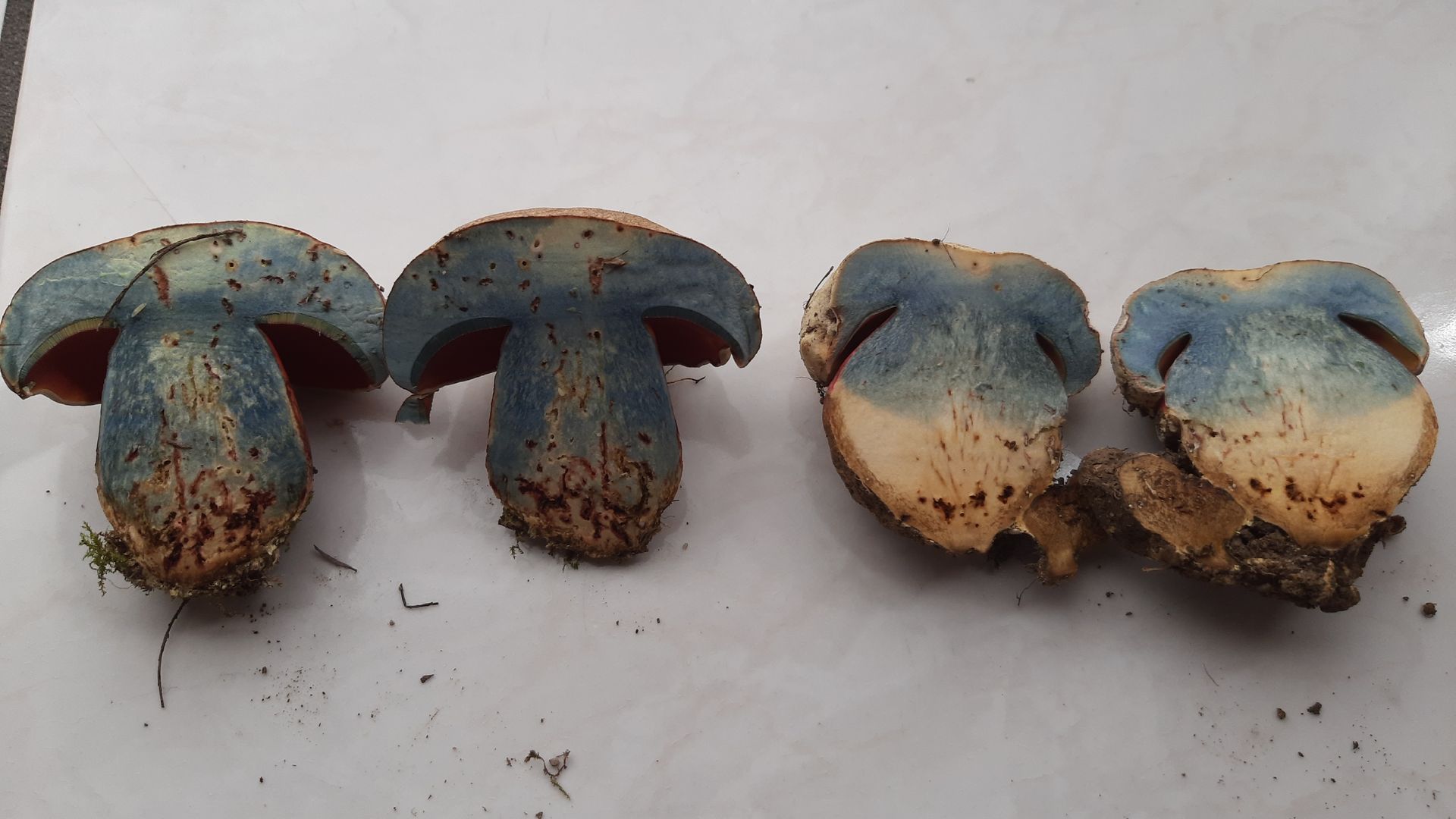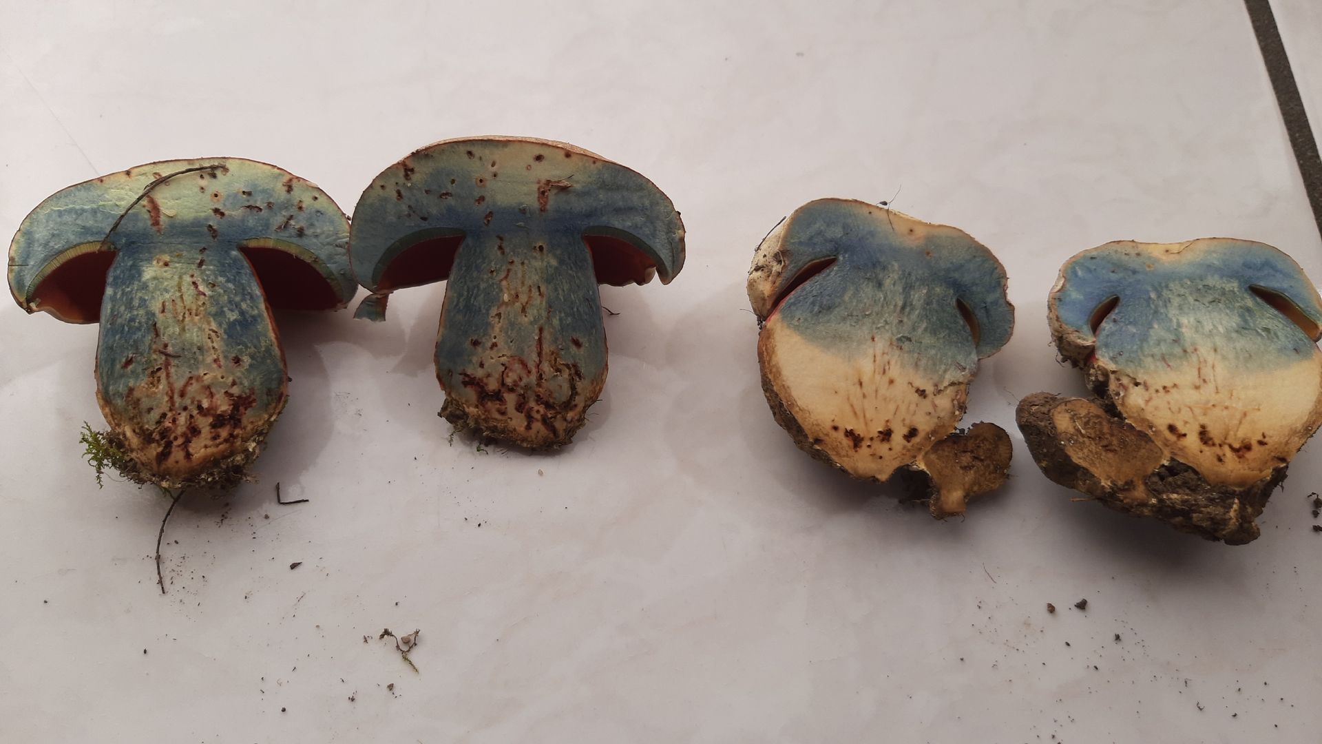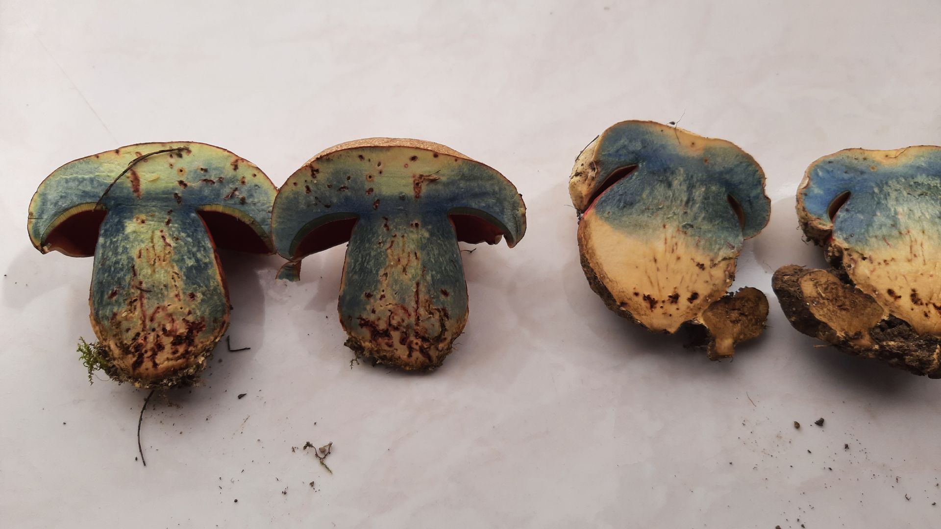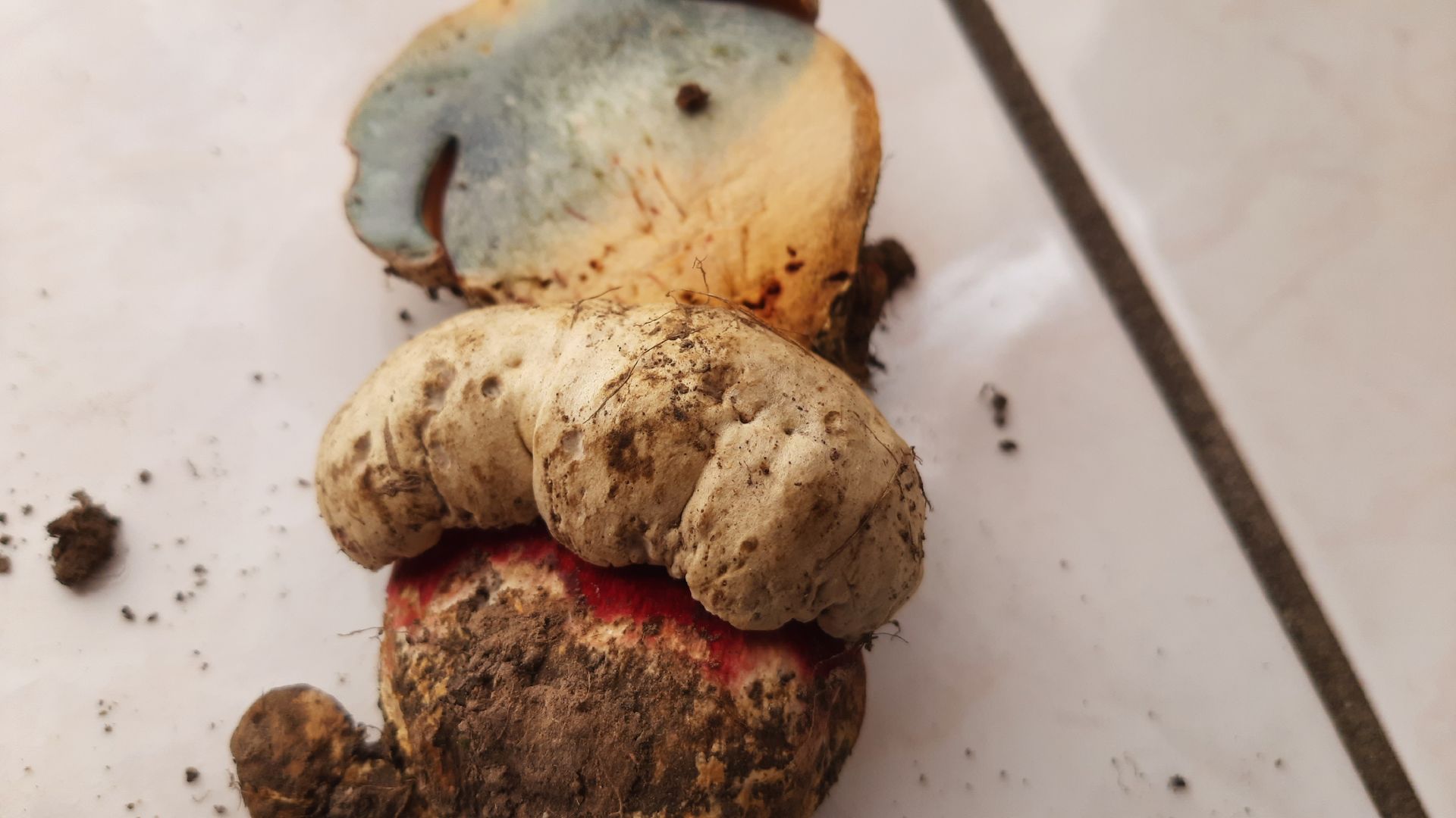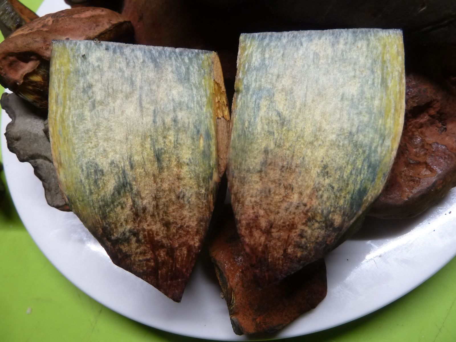 Eine intensive Rötung habe ich zwar nicht festgestellt, aber sehr wohl bei älteren Exemplaren bräunliche Verfärbungen. Auch ist die Bandbreite der Hut- und Flockenfarbe enorm. Von fast weiß bis schokoladenbraun, die Flocken von zitronengelb über diverse Grautöne bis weiß habe ich gesehen und gestaunt.