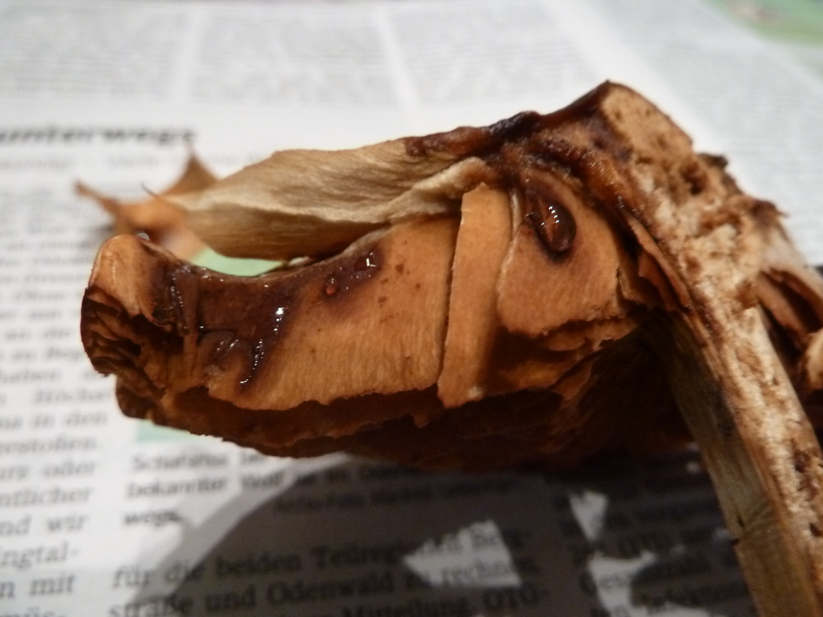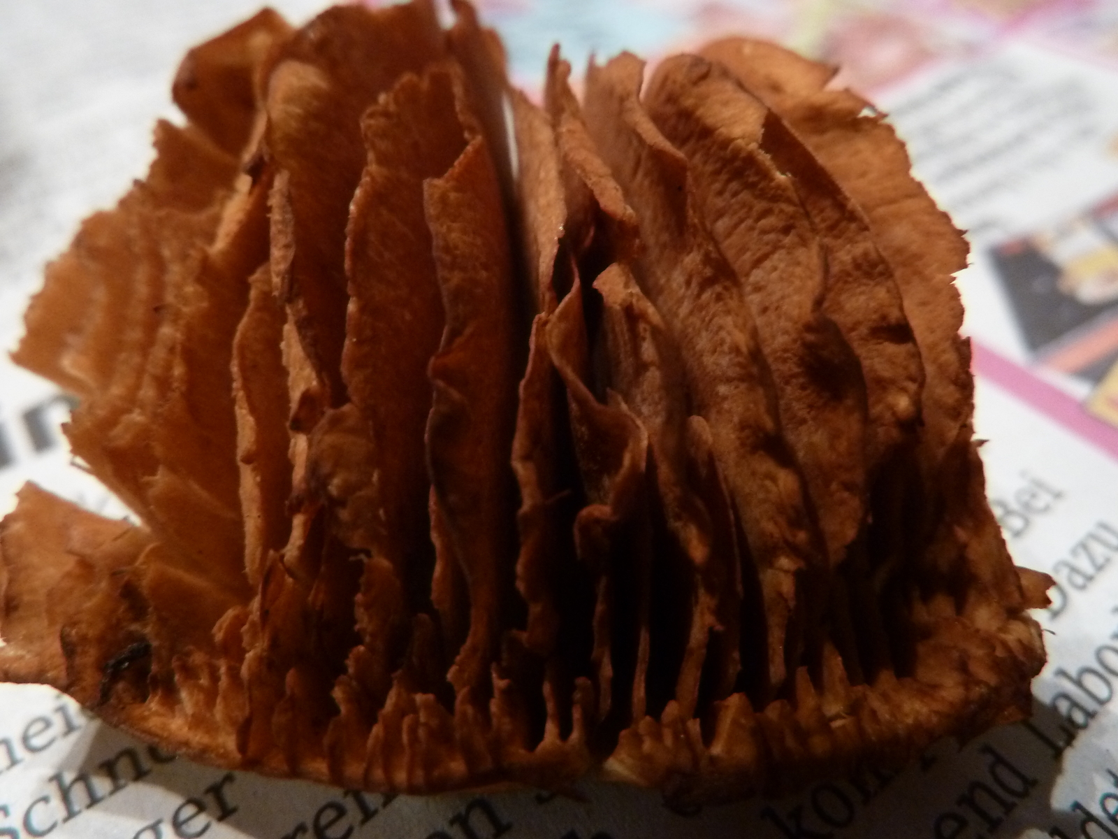 Danke für die Info und das Vergleichsbild. Eigentlich wäre das ein Kandidat für das "schräge Pilze" Forschungsprojekt der Uni Hamburg, aber die haben wohl keinen weiteren Bedarf. Vor ein paar Monaten hatte ich denen Pfifferlinge mit einer ähnlichen Lamellen-Anomalie vergeblich angeboten.