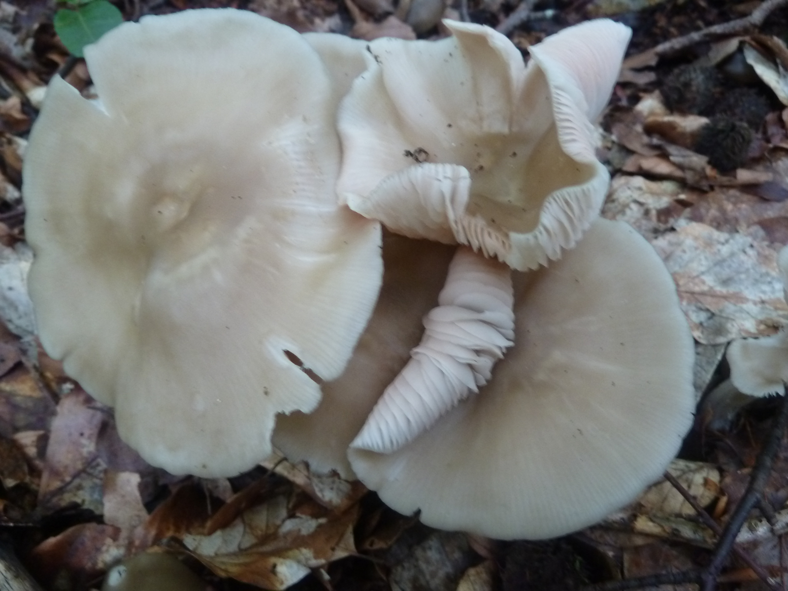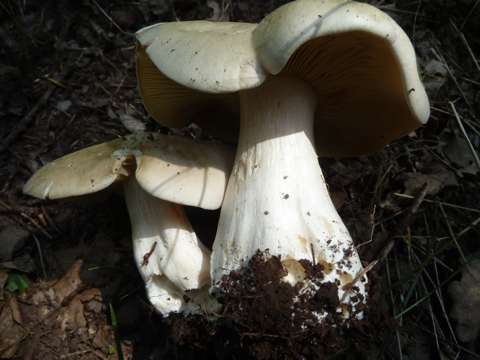 Seltener als der Strubbelkopfröhrling ist - zumindest hier in Mittelhessen - der Riesenrötling Entoloma sinuatum. Im wärmebegünstigten Süddeutschland mag das anders sein, in Frankreich soll er gar für einen erheblichen Teil der Pilzvergiftungen verantwortlich sein. Der Geruch ist angenehm süßlich-mehlartig, ohne die unangenehme ranzige Komponente des Maipilzes.