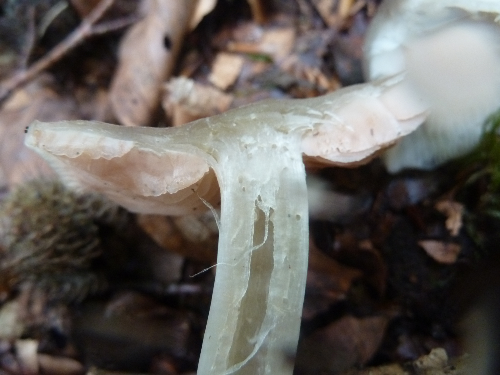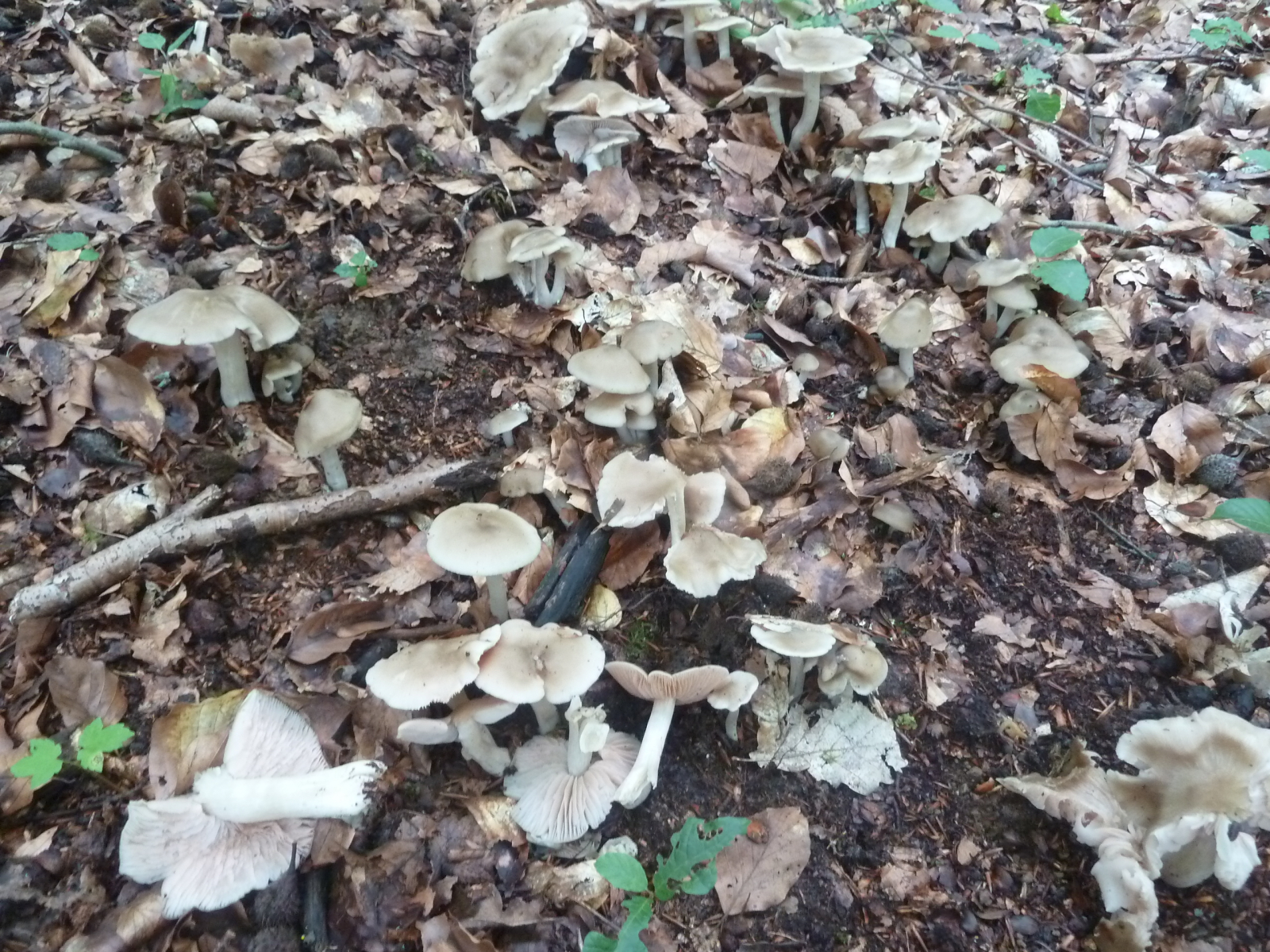 heute habe ich wieder mehrere Stellen mit jeweils dutzenden Fruchtkörpern einer (vermutlich) Entoloma-Art gefunden. Eichen-Hainbuchen-Habitat, basischer Basaltboden, ca. 270 Meter über NN.