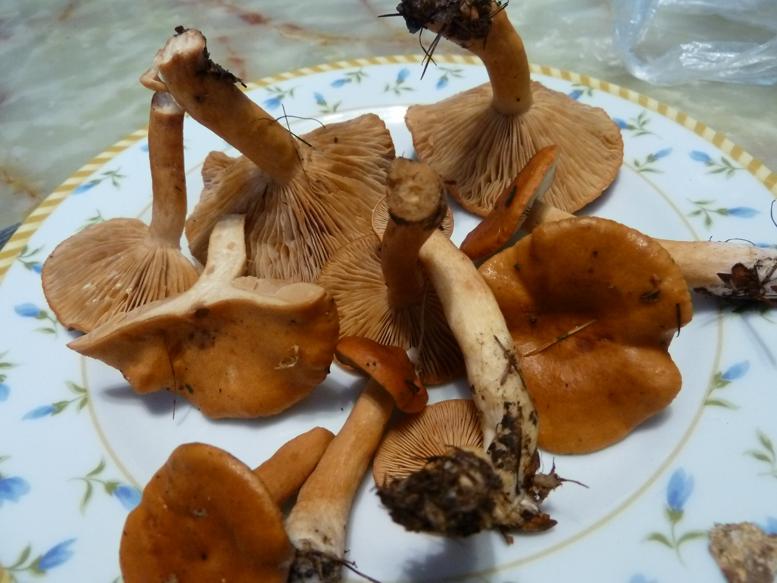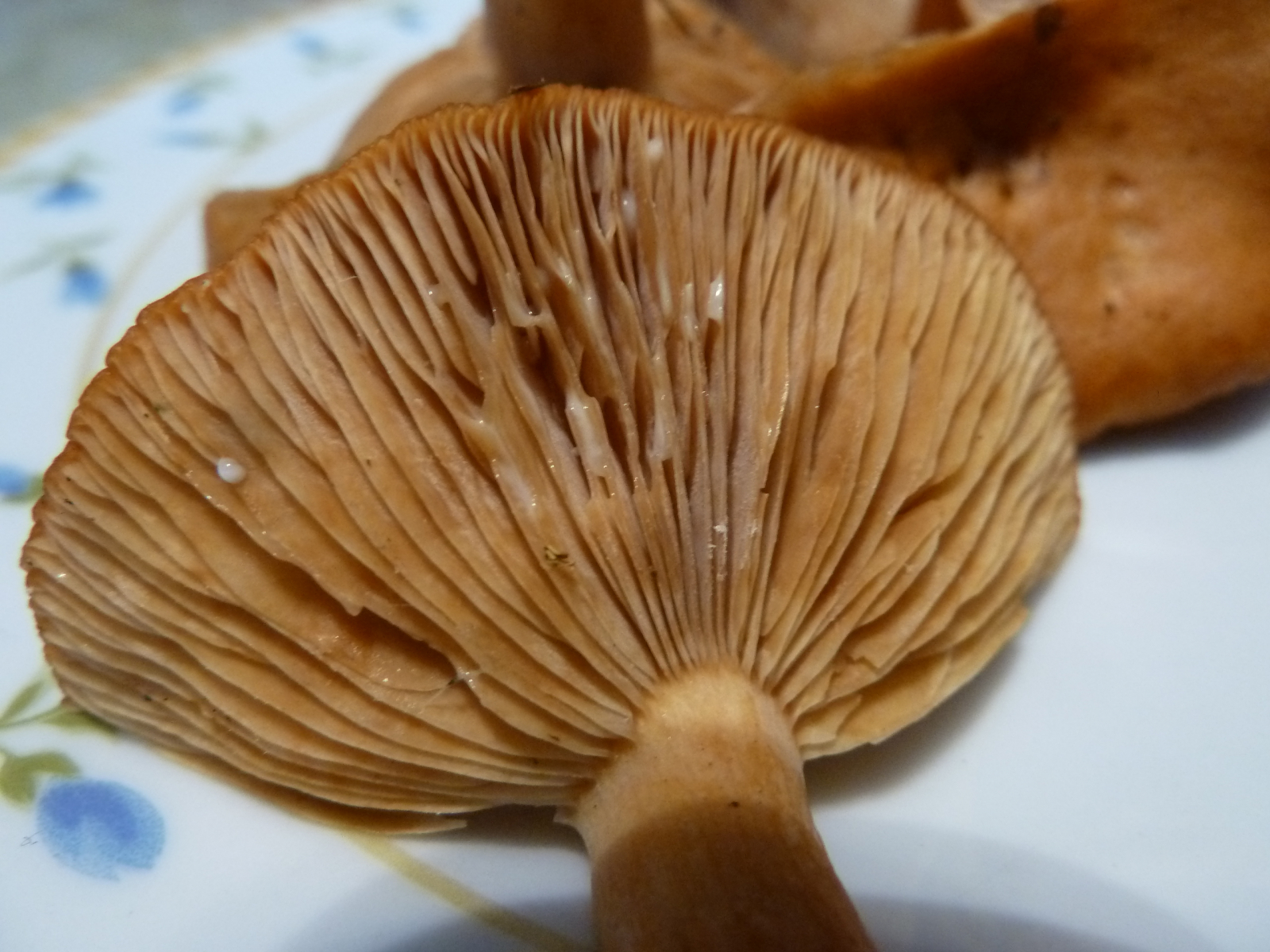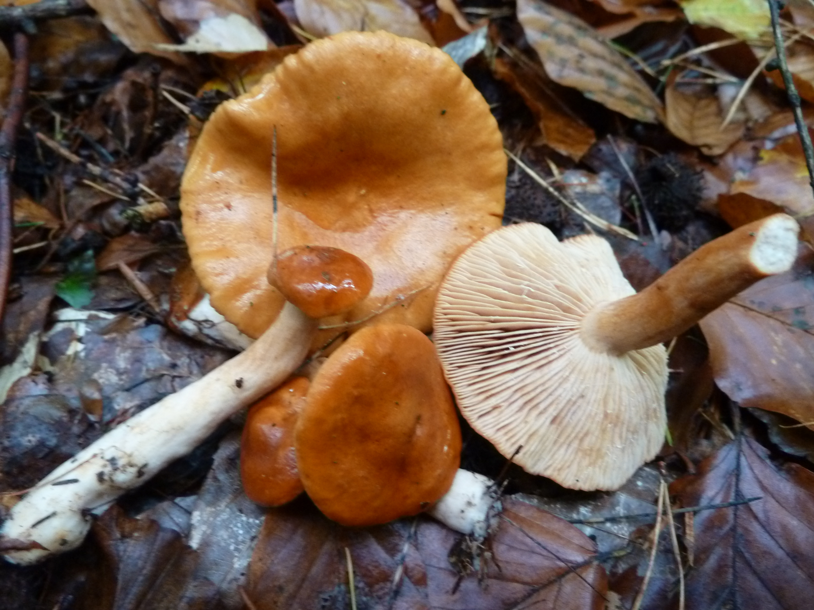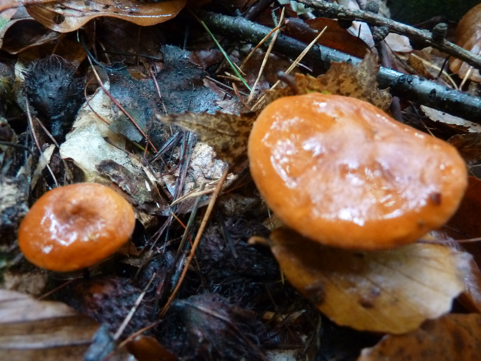 diese Milchlinge habe ich heute im Mischwald (Lärche-Kiefer-Buche-Birke) auf Buntsandstein gefunden. Zunächst dachte ich wegen der freudig orangebraunen Farben an den Brätling, aber der ist es nicht. Es fehlt der typische Geruch, die Milch verfärbt sich nicht dunkel und ist auch nicht harzig-klebrig. Der Geschmack der Milch ist zunächst mild, nach einigen Sekunden ist ein leichtes bitterliches Kratzen im Rachen zu spüren (aber nicht auf der Zunge, obwohl ich einen Milchtropfen direkt auf die Zunge gegeben habe).
