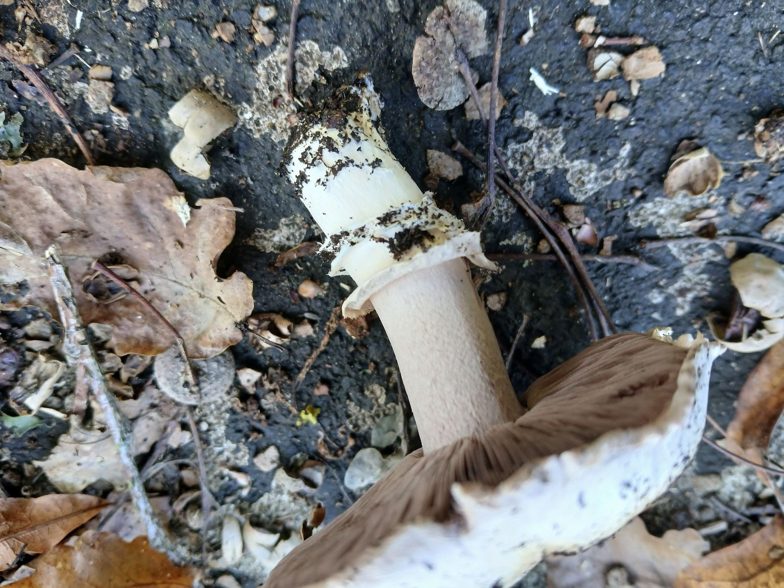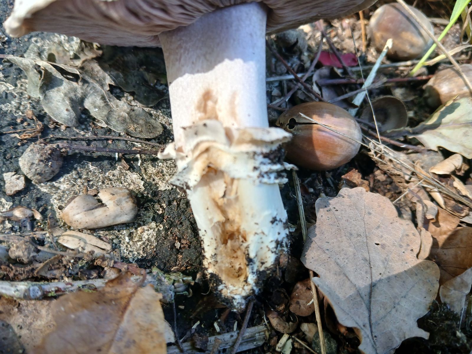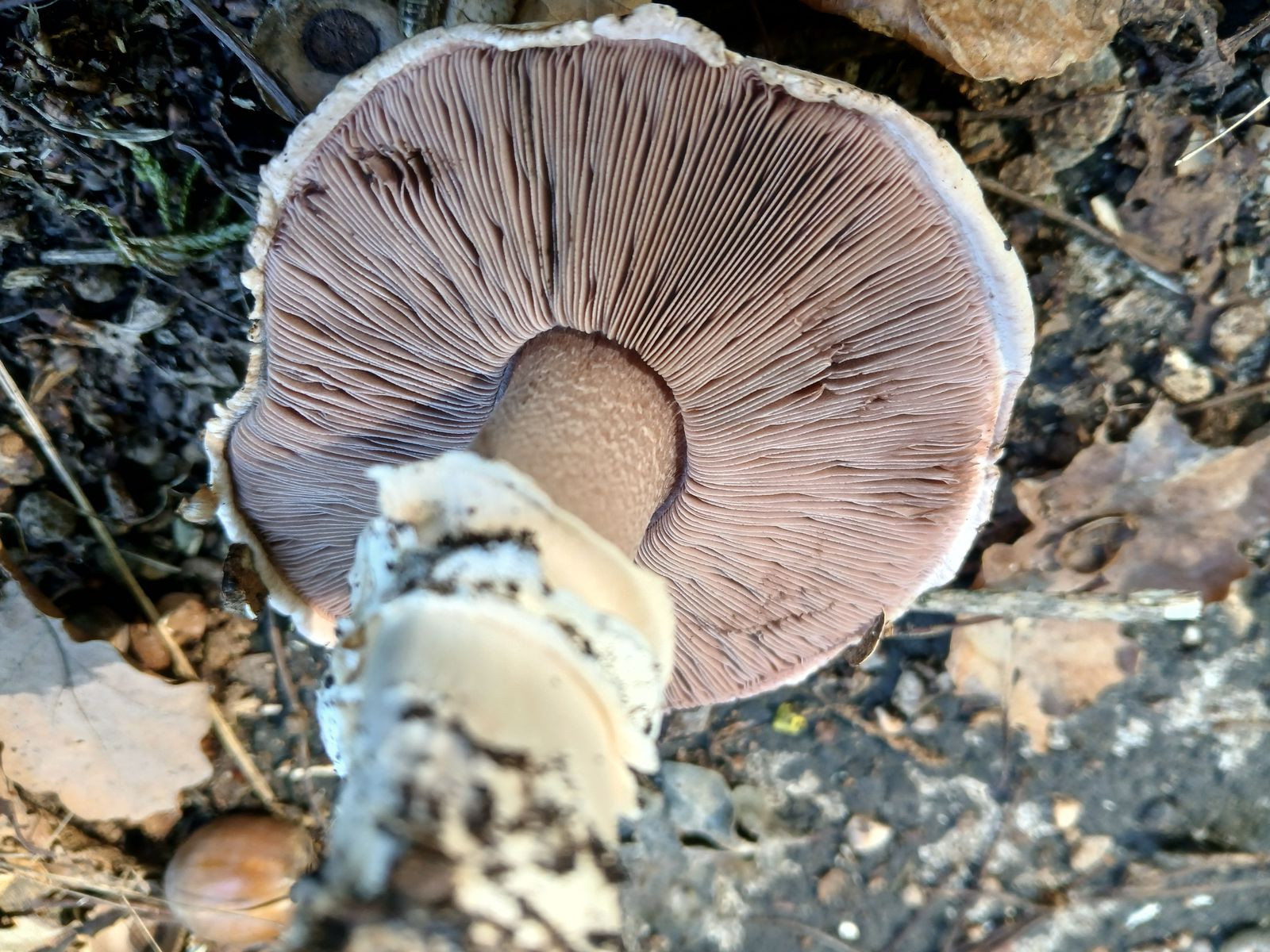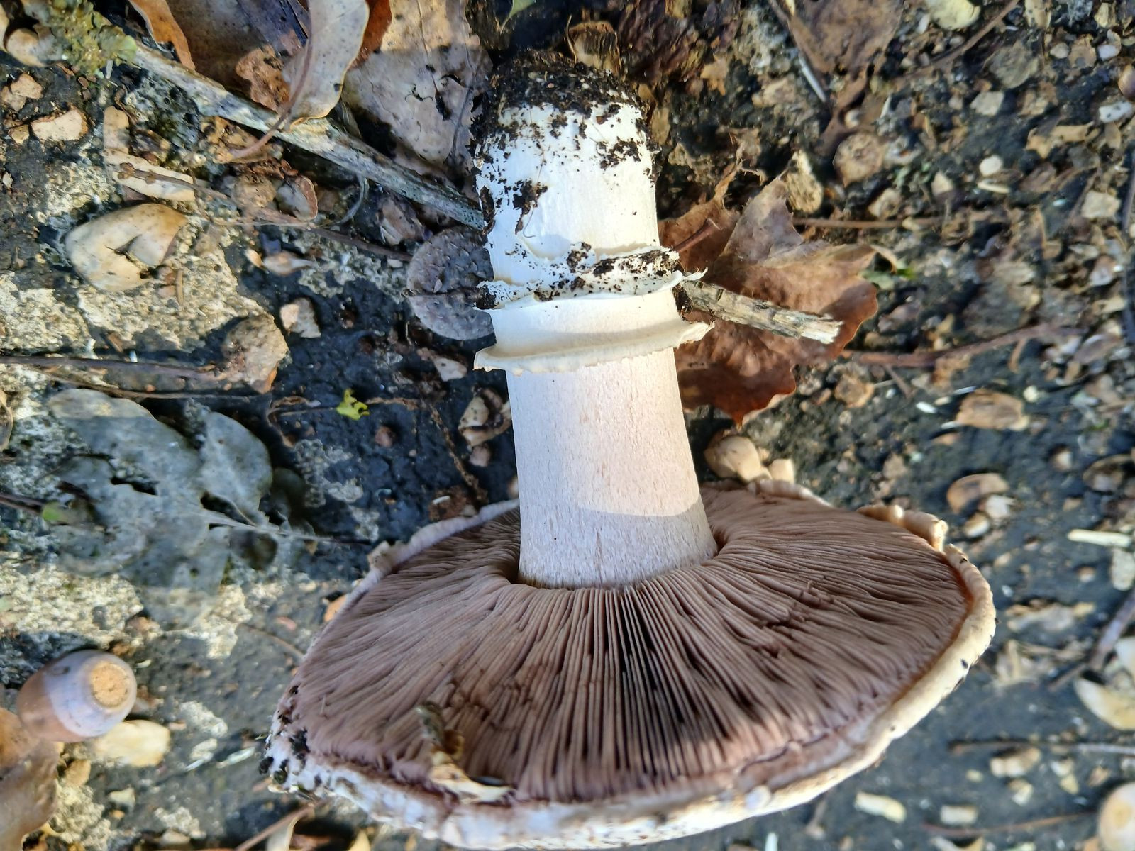 Auf dem Heimweg ist mir noch ein Champignon mit markanter Ringstruktur aufgefallen. Da würde mich der Name interessieren, falls man den rein makroskopisch fest machen kann. Ggf. könnte ich noch mit KOH, Phenol, Eisensulfat und Schaeffer'sche Kreuzreaktion dienen, falls das einen Erkenntnisgewinn verspricht.