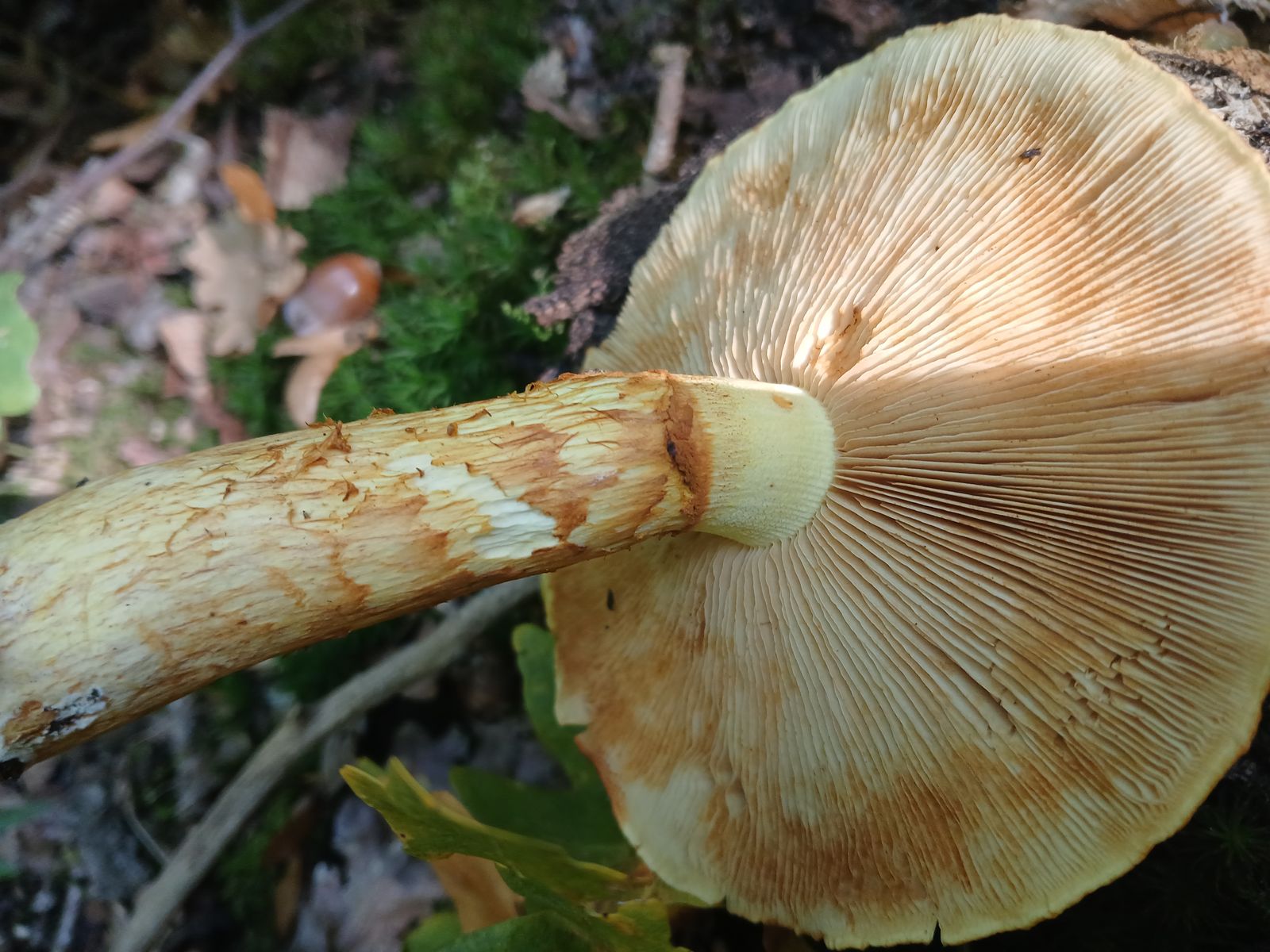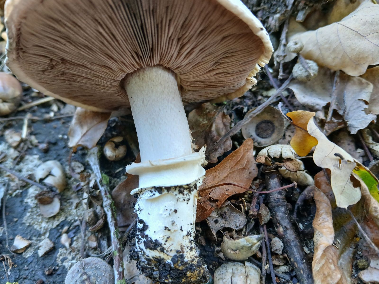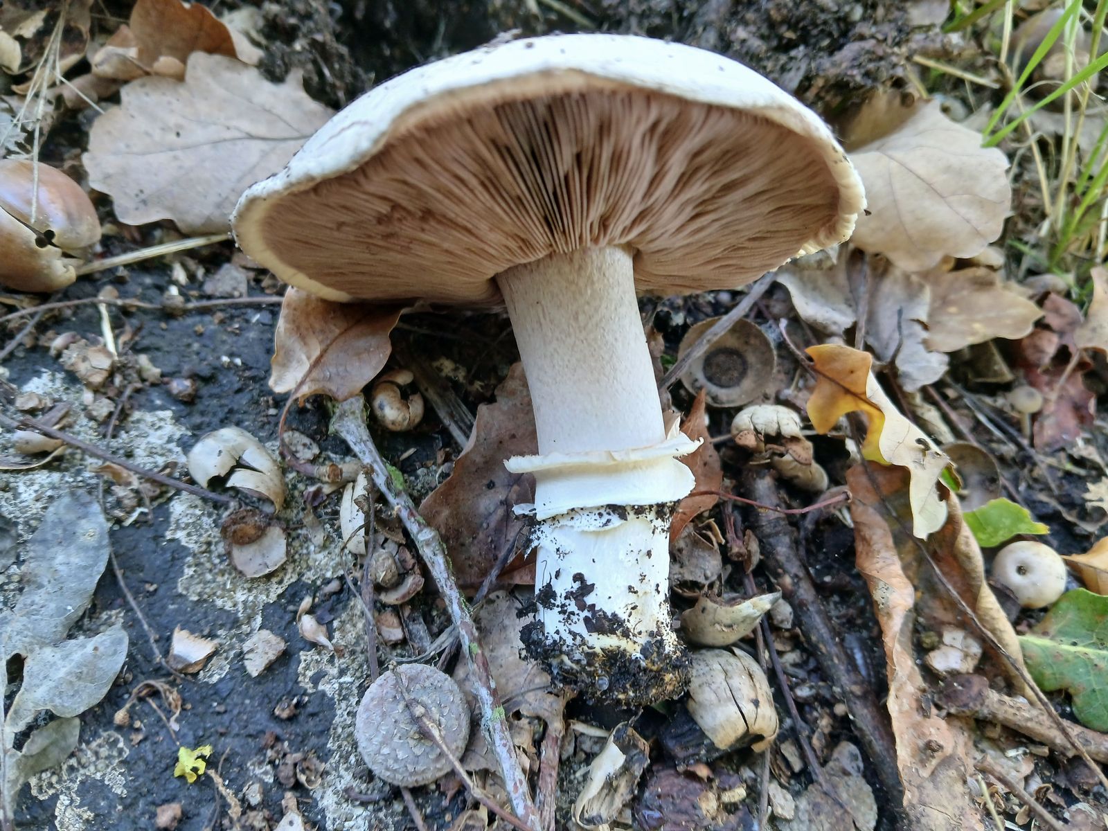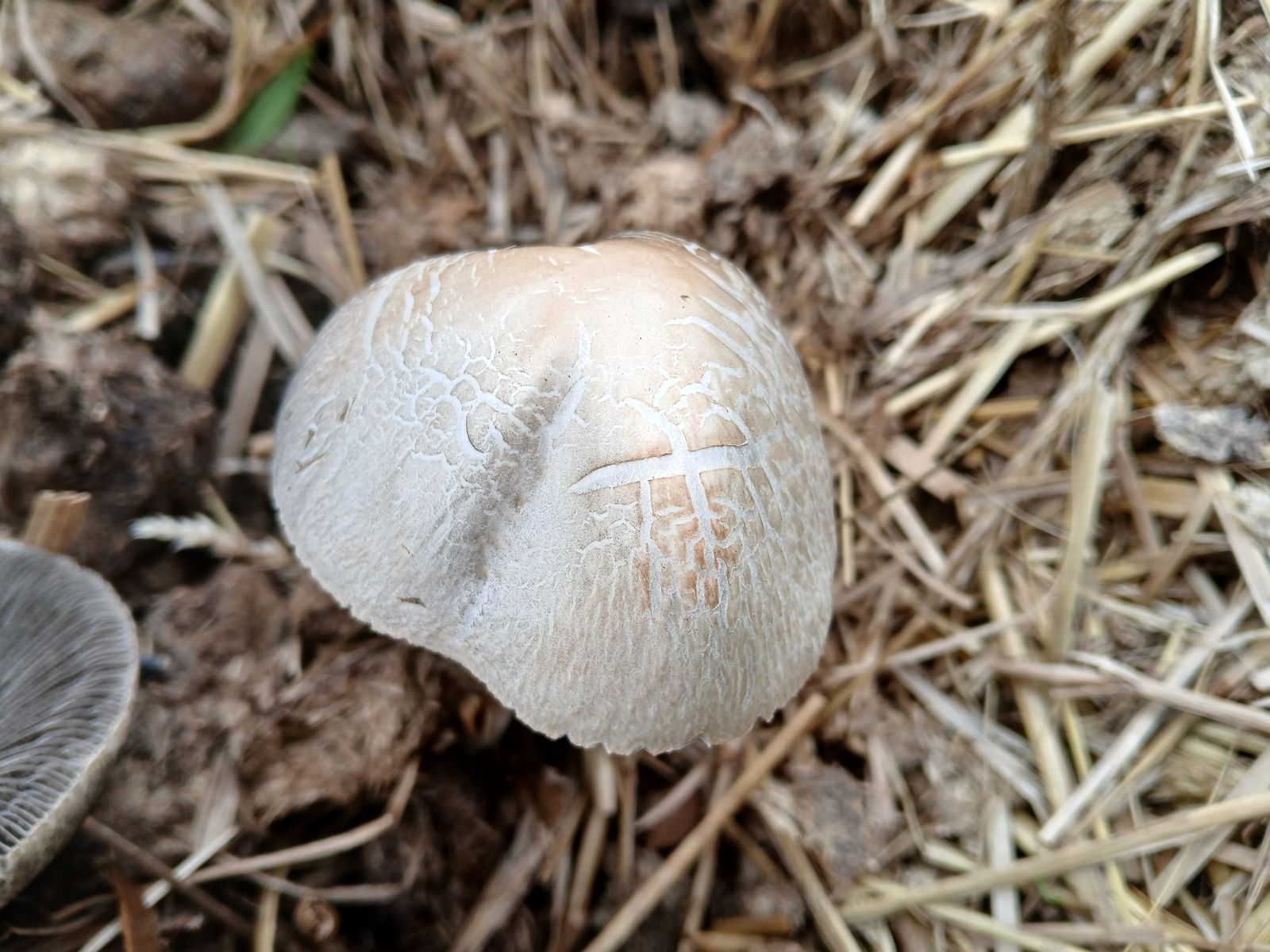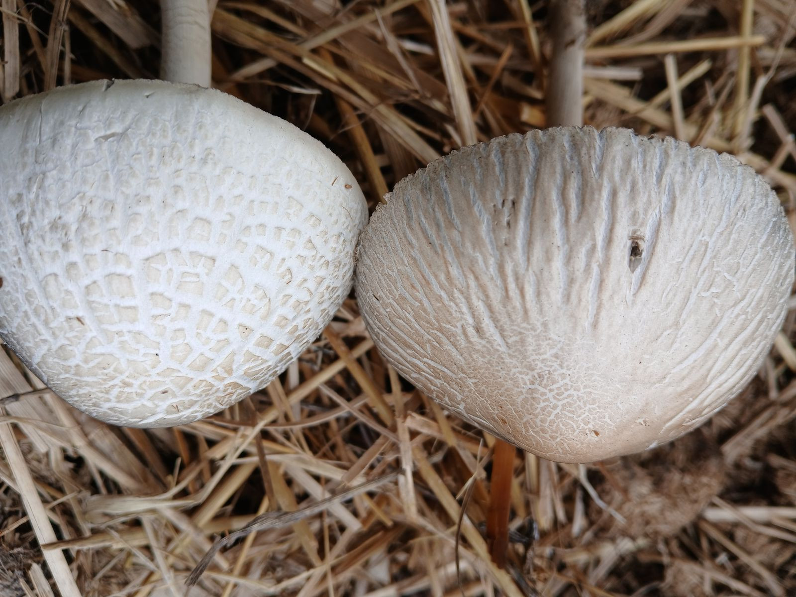 Auf dem Heimweg ist mir noch ein Champignon mit markanter Ringstruktur aufgefallen. Da würde mich der Name interessieren, falls man den rein makroskopisch fest machen kann. Ggf. könnte ich noch mit KOH, Phenol, Eisensulfat und Schaeffer'sche Kreuzreaktion dienen, falls das einen Erkenntnisgewinn verspricht.