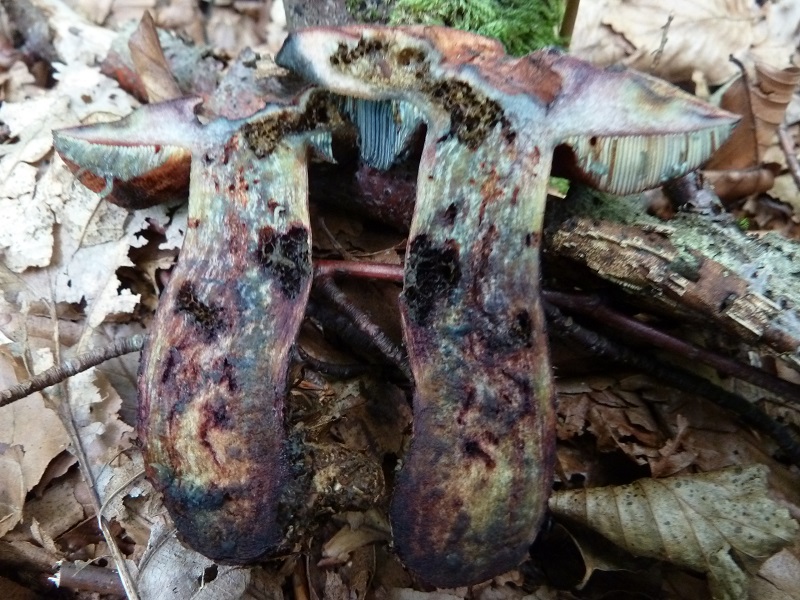 heute war ich auf neuem Terrain unterwegs. Ein Eichen-Buchen-Hainbuchen-Mischwald auf Schichtkalk (örtlich begrenzte geologische Anomalie) war heute mein Ziel. Neben den üblichen Kalkzeigern (Gallertkäppchen, Herkuleskeule, Herbsttrompete, grauer Leistling etc.) sind mir diese drei Kameraden aufgrund ihrer Hutform ins Visier geraten.