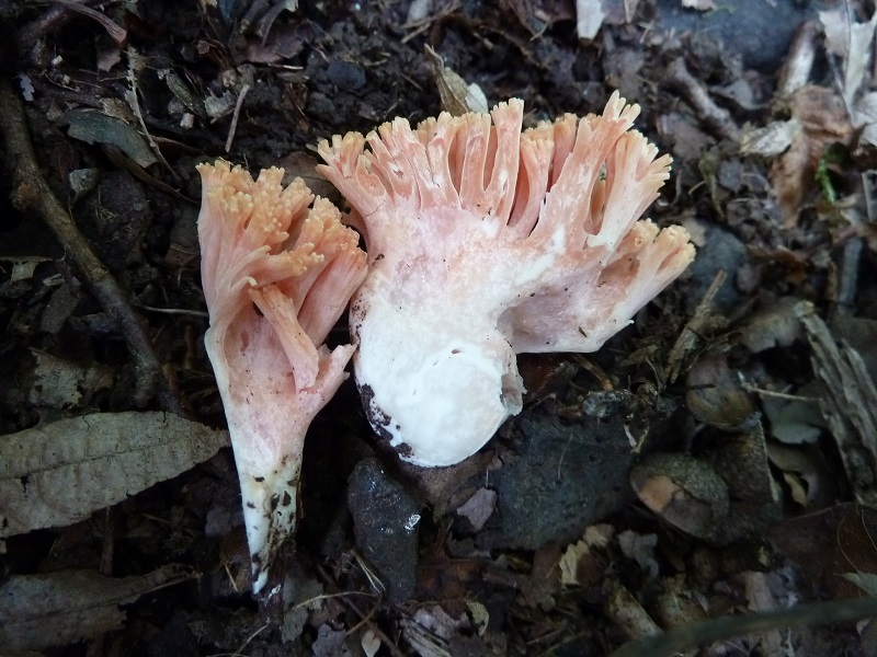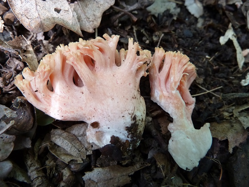 Vielleicht können die Experten aufgrund der Fotos und der Angabe Eichen-Hainbuchen-Mischwald auf Basalt (basisch: Herkules-Keule, Gold-Täubling, grüngelbes Gallertkäppchen etc.) die eine oder andere Koralle identifizieren.