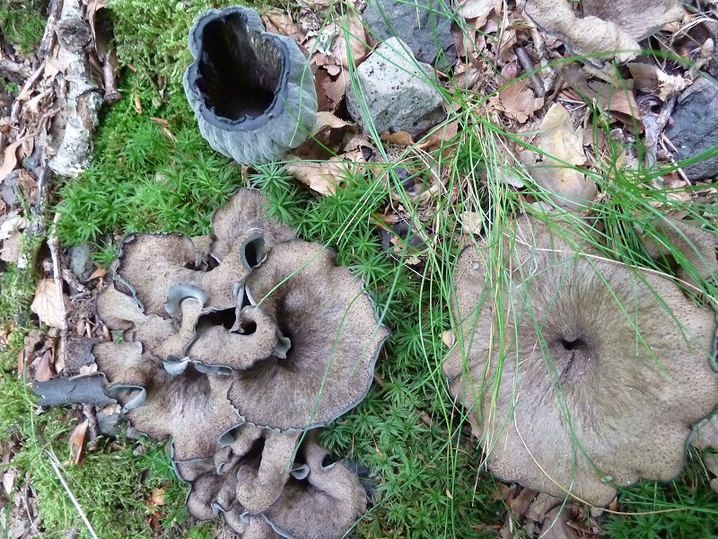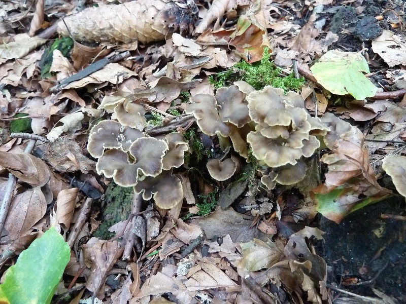 Heute sind mir diese Pilzchen bei der Suche nach Herbsttrompeten untergekommen, liege ich mit Krause Kraterelle richtig? Ich meine sowas schonmal vor vielen Jahren gefunden zu haben. Allzu häufig ist dieser Pilz glaube ich nicht, heute habe ich ihn an zwei Stellen gefunden. Den grauen Leistling habe ich heute sogar an mehreren Stellen gefunden.