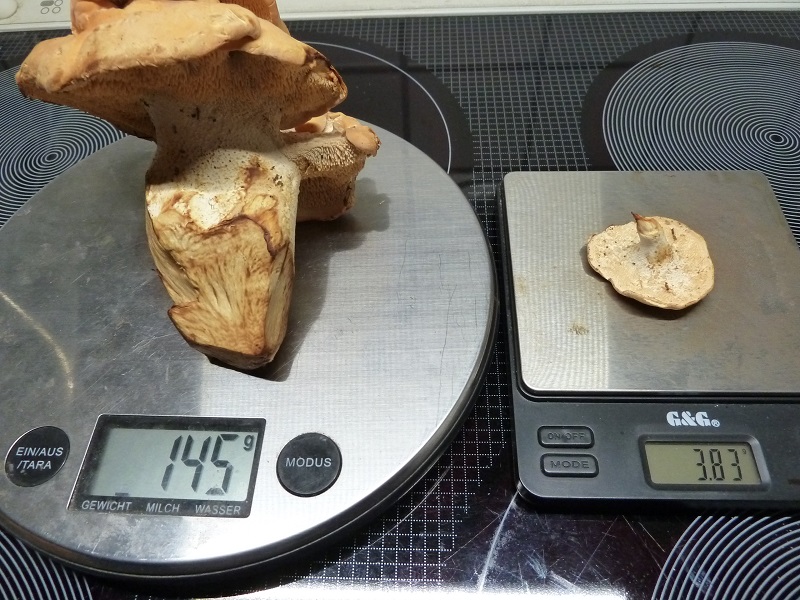 Gerne: Funddatum am 22. August, Fundort 63939 Wörth am Main, einmal im Kiefernwald mit grasigen Stellen und zweimal im Buchenwald (alte Buchen mit jungem Buchenunterholz am Wegesrand). Zwischen vielen "normal" geformten Fruchtkörpern diese drei Exemplare, die besonders durch ihre Größe hervorstechen. Bei den kleineren Fruchtkörpern habe ich solche Auffälligkeiten nicht gefunden.