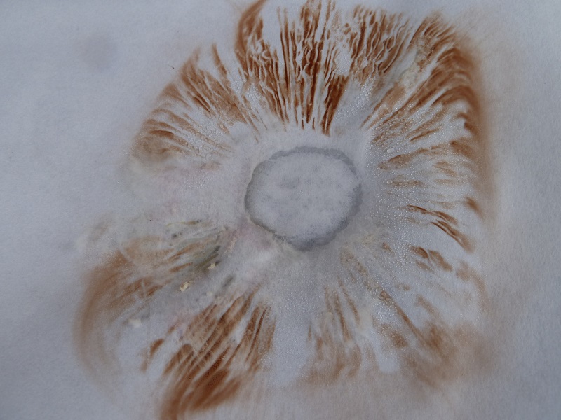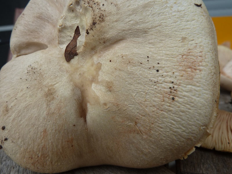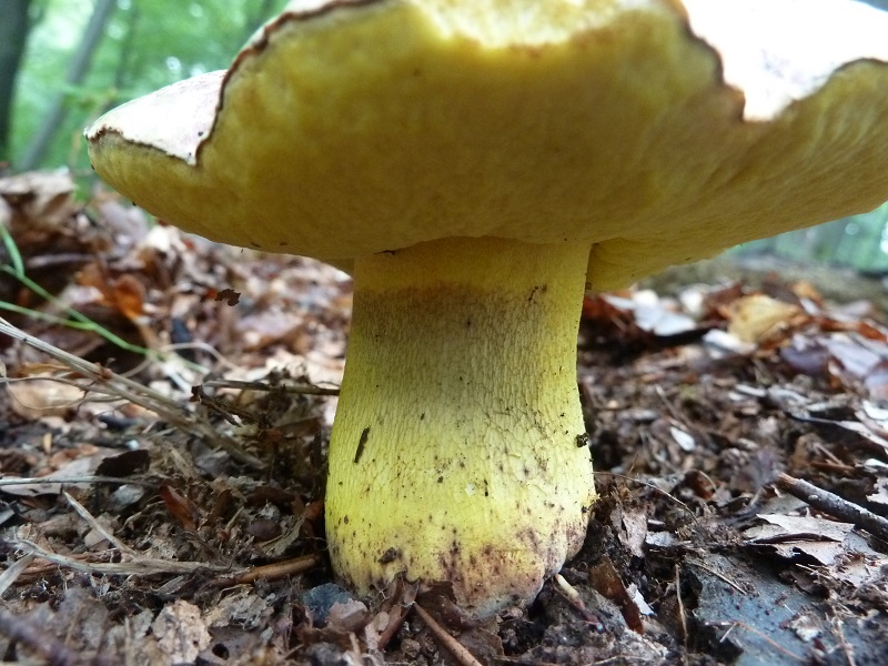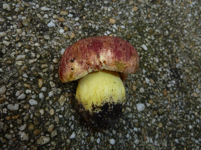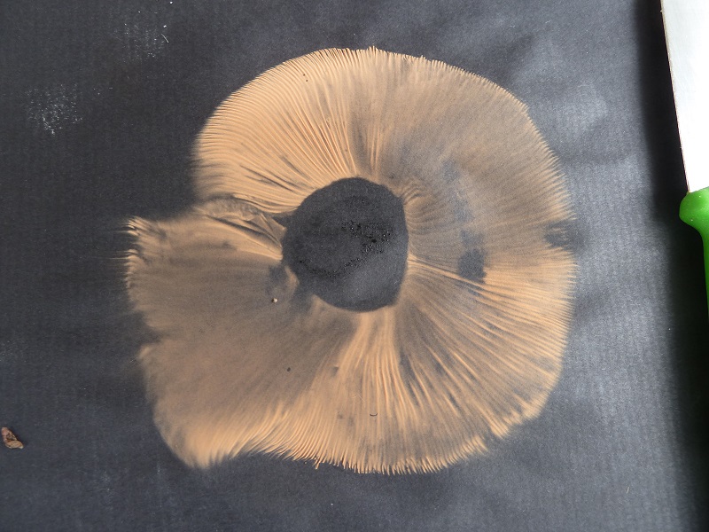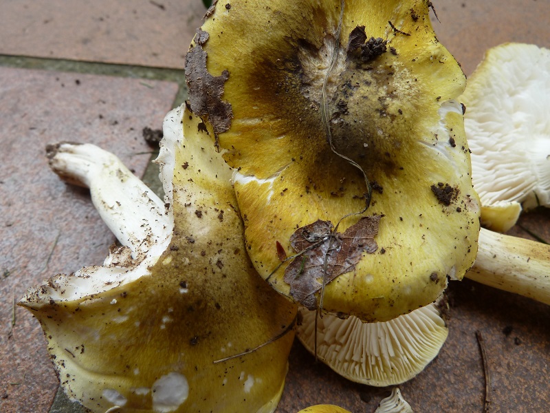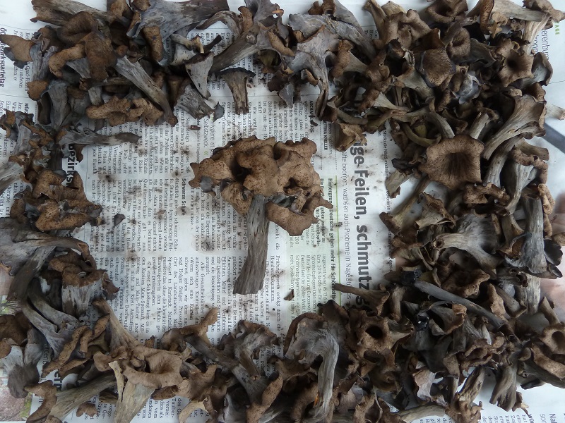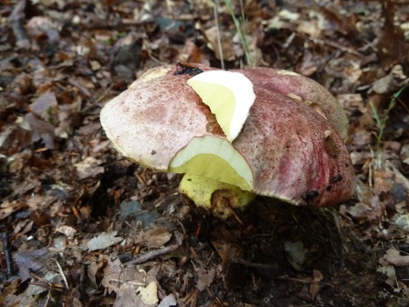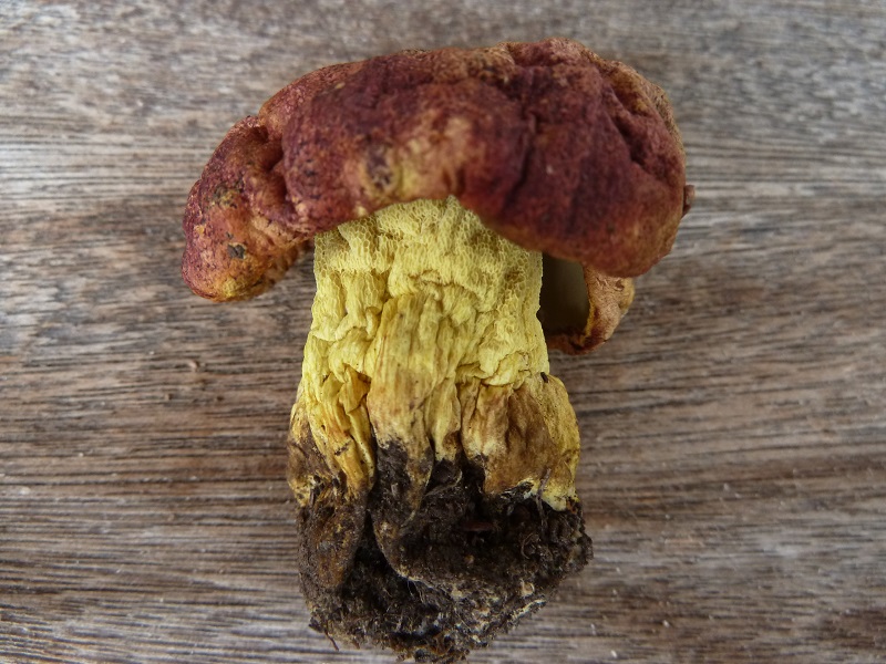 Darauf habe ich leider nicht geachtet. Ich schneide normalerweise erst einen Fruchtkörper ab, betrachte und schneide ihn durch bevor ich daran rieche. Hätte ich den unberührt lassen müssen um daran knieend zu schnuppern?