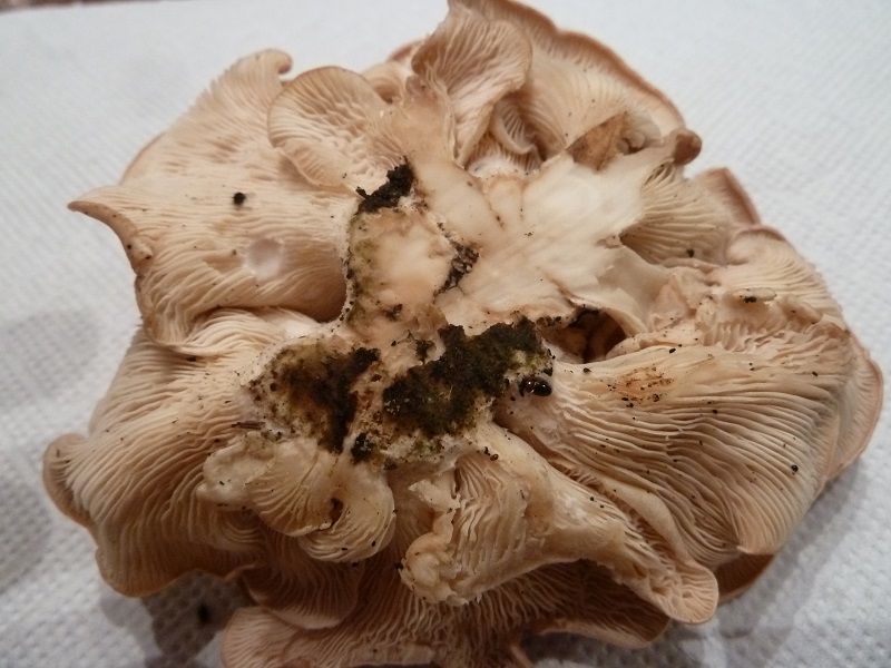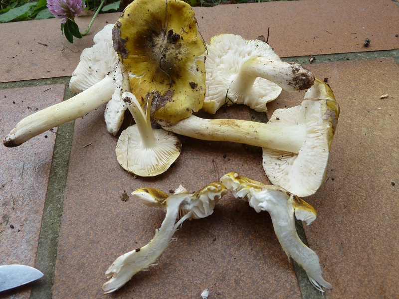 gestern habe ich im Eichen-Hainbuchen-Buchenmischwald auf basischem Basalt diese Pilze gefunden, die deutlich nach Mehl riechen. Genauer gesagt riechen sie so wie Maipilze. Mit der mir zur Verfügung stehenden Literatur bin ich zum grüngelben Ritterling gelangt, diese Art soll aber sehr variabel sein und es soll sehr ähnliche Arten geben (sägeblättriger Ritterling), wobei die Abgrenzung wohl recht schwierig ist.