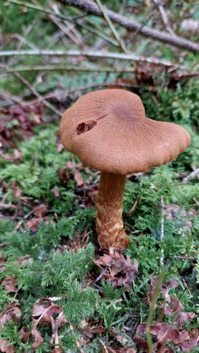 Ich hab beim Wandern in der Pfalz diesen jungen einzelnen Pilz gefunden. Standort: Waldwegrand unter Buchen. Kein markanter Geruch, keine Verfärbung.