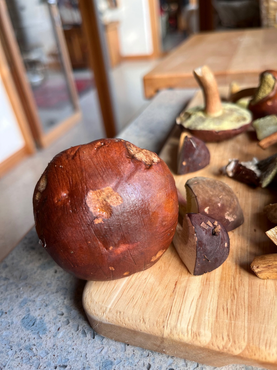 Handelt es sich eurer Meinung nach um einen Rotfussröhrling? Und bei dem kleinem Freund um einen Steinpilz oder um eine Marone?
