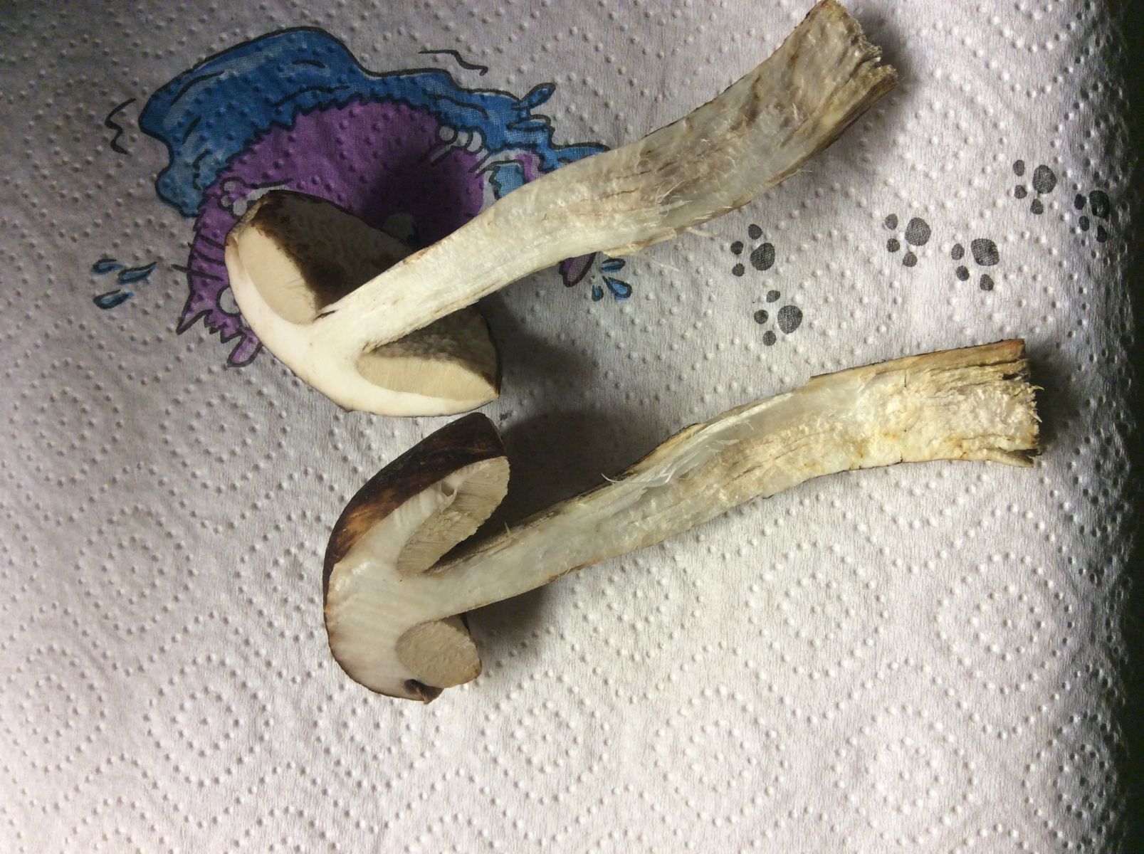 Tu uns doch bitte den Gefallen und schneide den Pilz einmal komplett längs durch