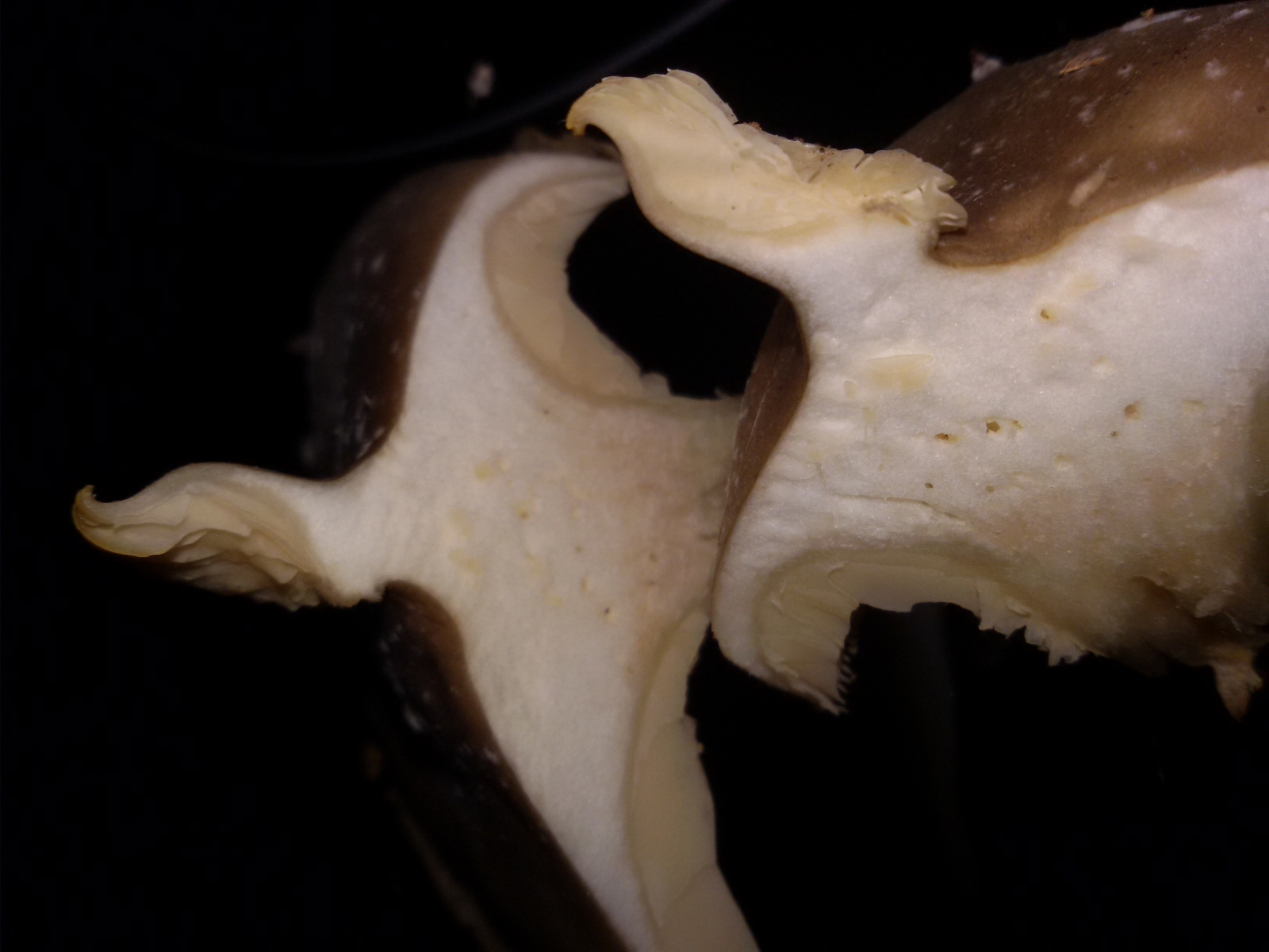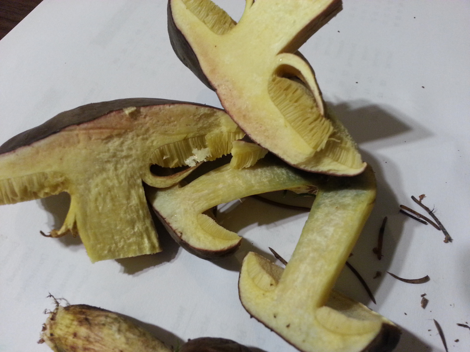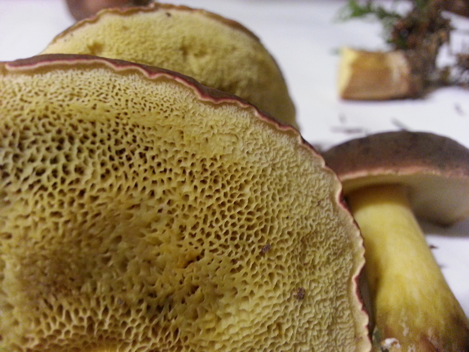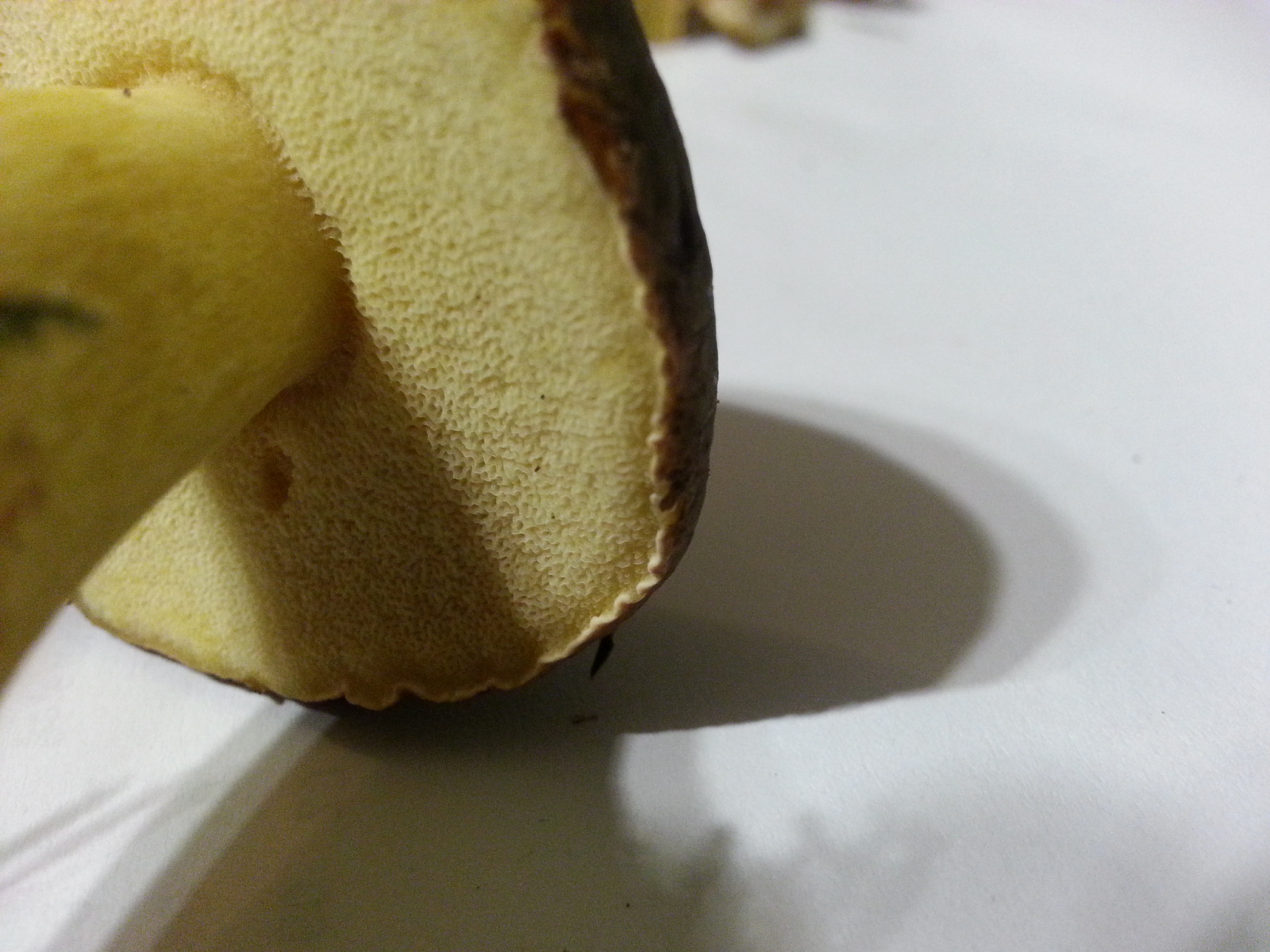 Aber das es auch Rotfußröhrlinge mit gelben (Füßen ) nicht außergewöhnlich sind wusste ich nicht, danke, dass mit dem Schnittbild verstehe ich aber was meinst du mit Struktur und Farbe der Hutoberfläche,den roten Strich zwischen Huthaut und Hutfleisch?