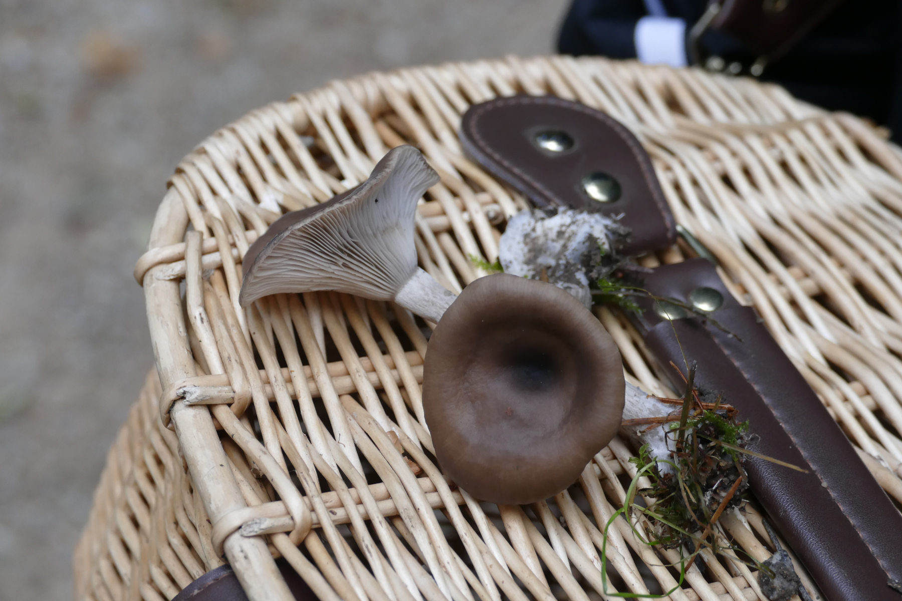 1 kaffeebrauner Gabeltrichterling (der nicht gegessen wurde)