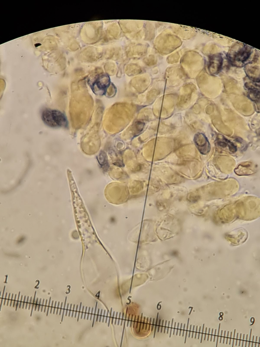 Ich habe mich nochmals auf die Suche nach einer Pleurozystide gemacht und habe noch eine gefunden: