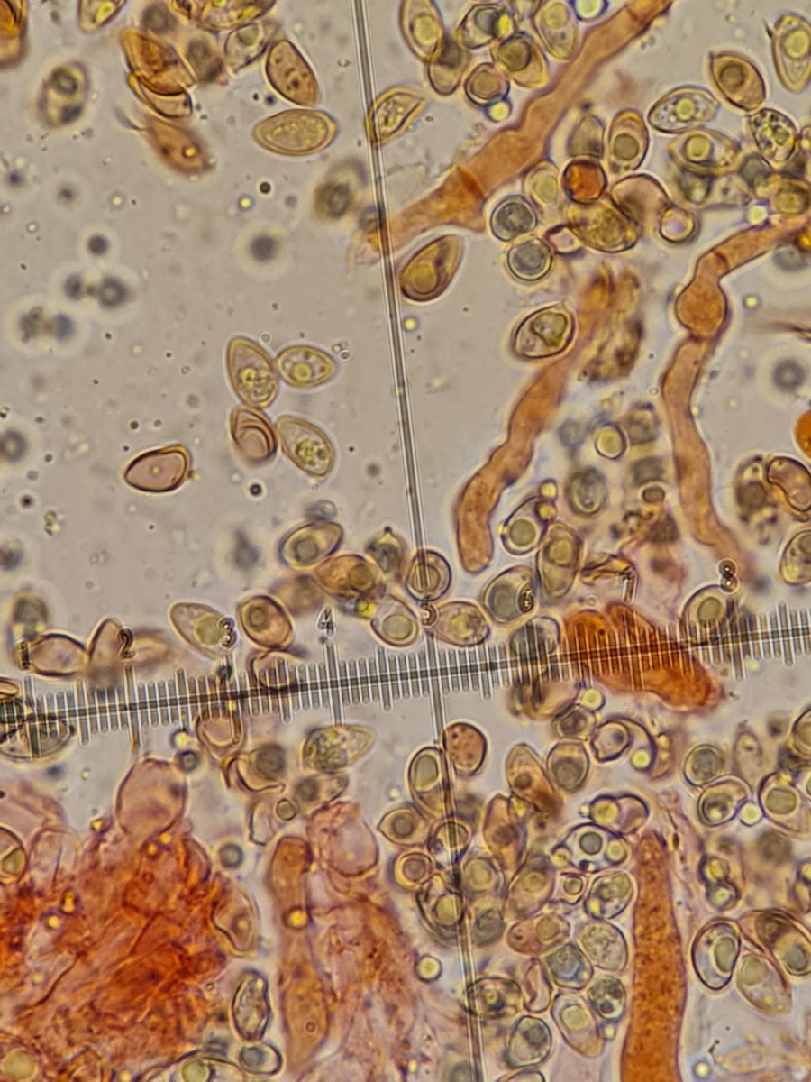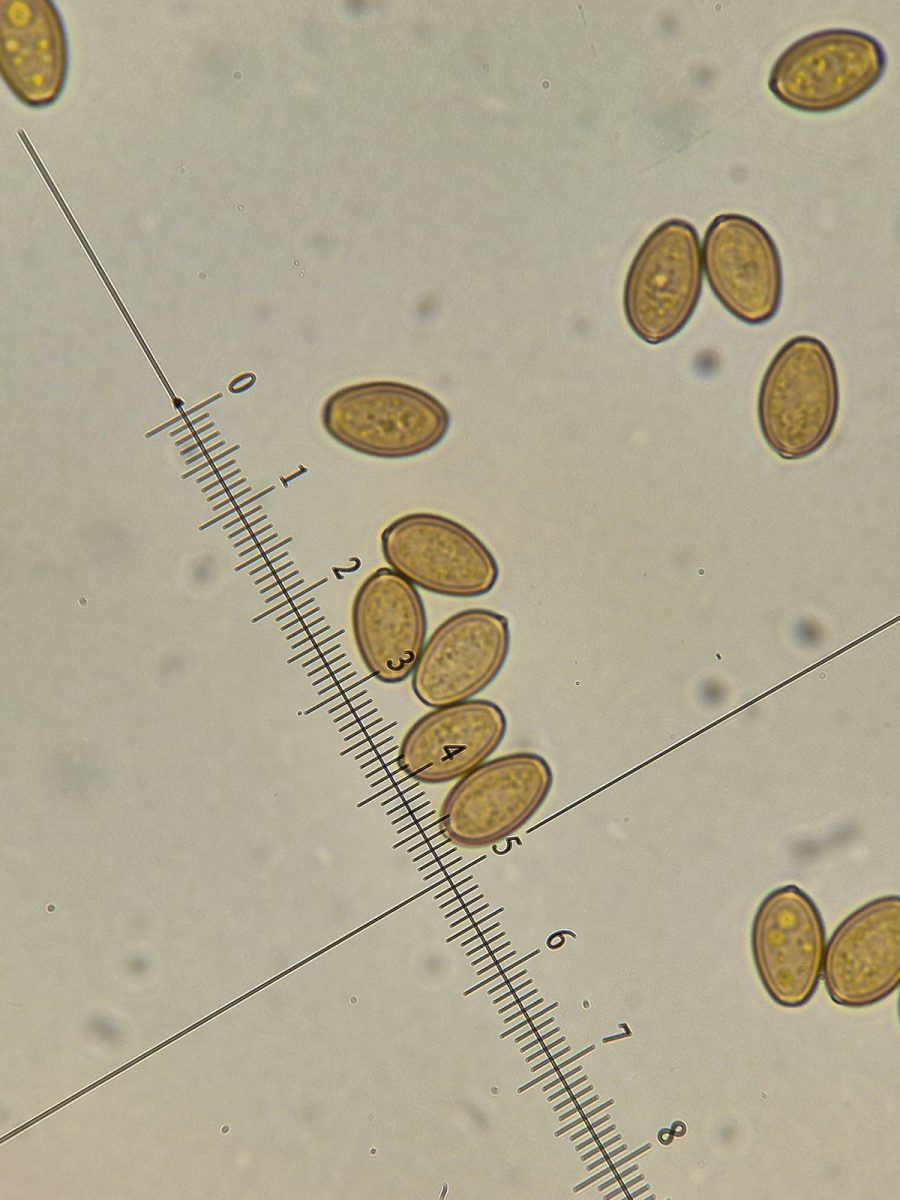 Sporenlänge ca. 7-8 µm, Sporenbreite ca. 4,5 - 5 µm
