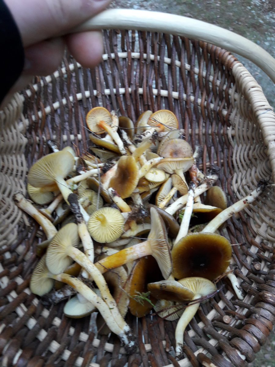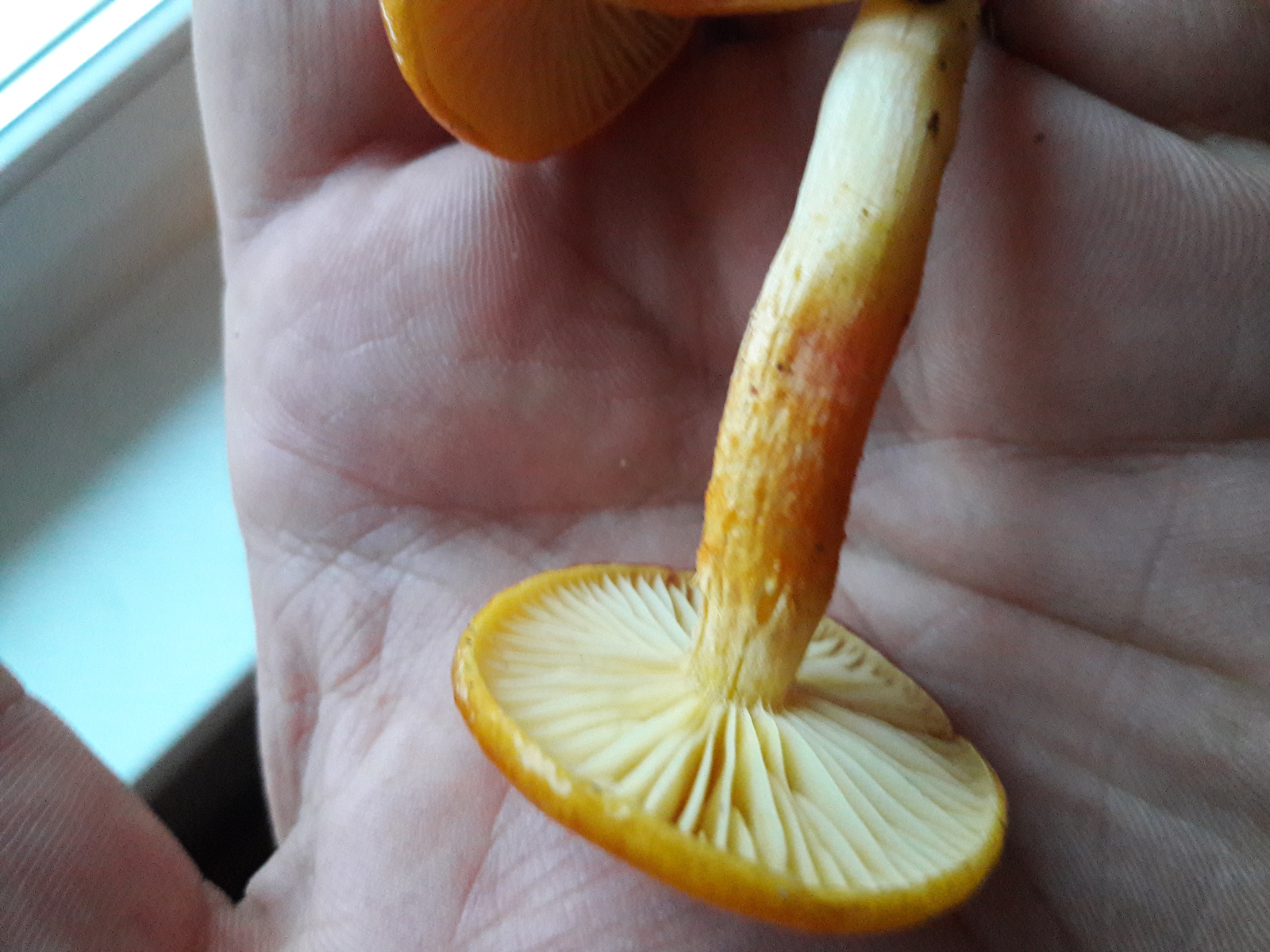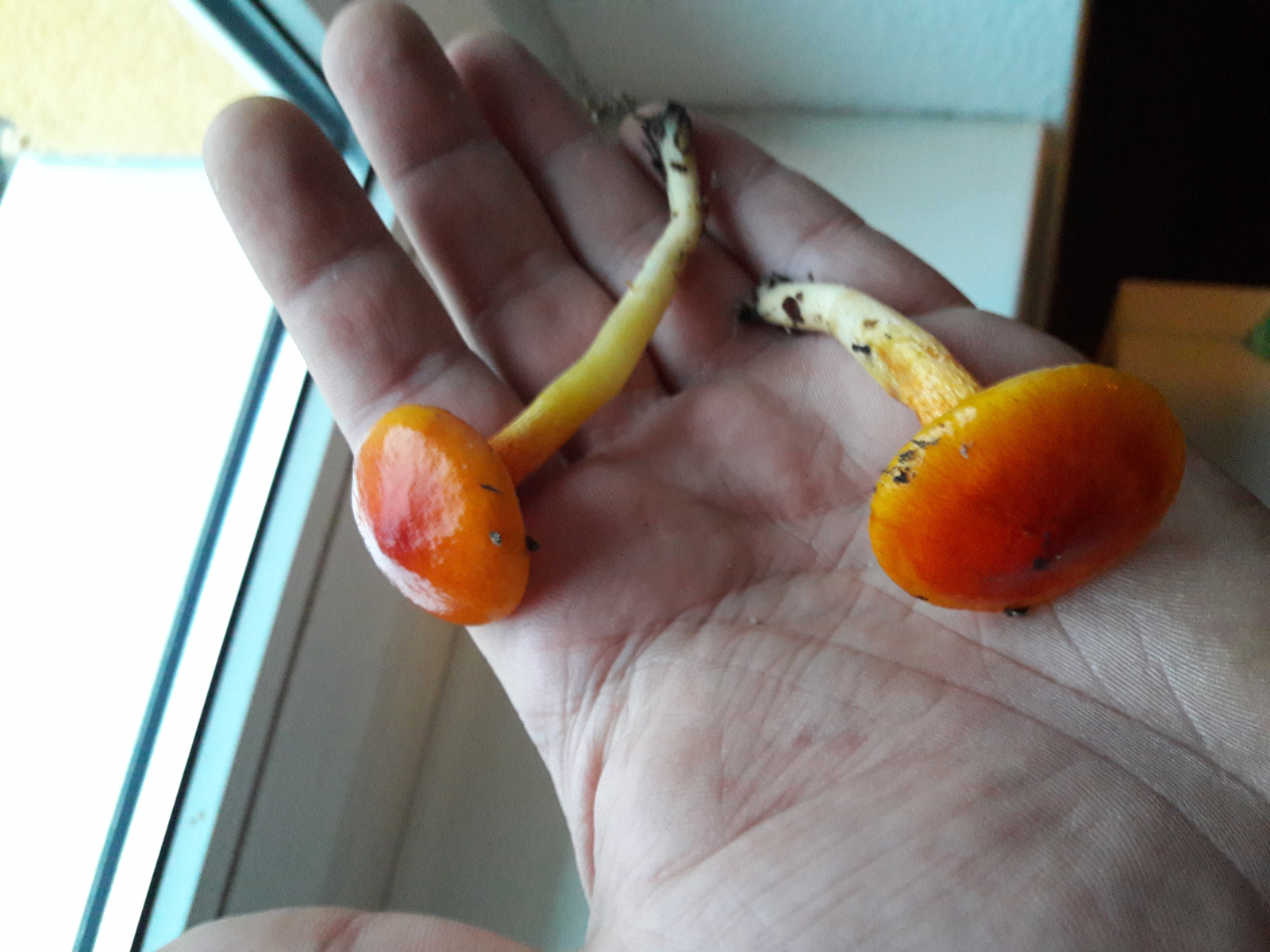 Meine ersten Ideen gingen in die Richung Milder Wachstäubling und Geriefter Weichtäubling, dafür aber vermutlich zu wenig gelbe Verfärbung und zu weißes Sporenpulver. Und evtl den duftenden Täubling, auch hier Sporenpulver falsch und kann mich an keinen mirabellenartigen Geruch erinnern. Jetzt habe ich eigentlich gar keine Idee mehr