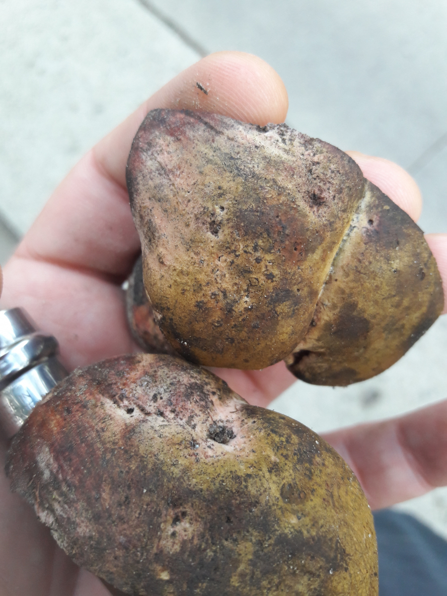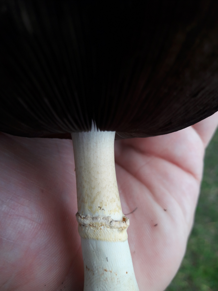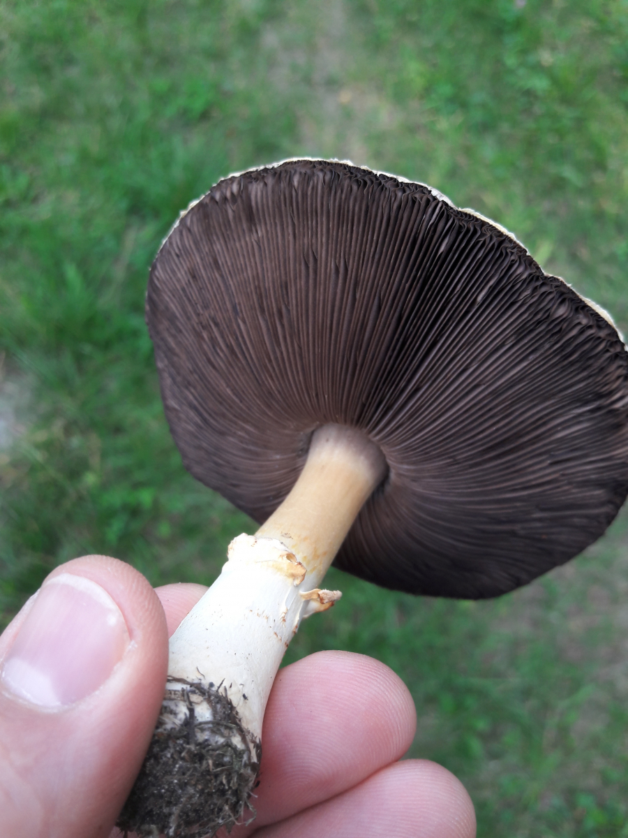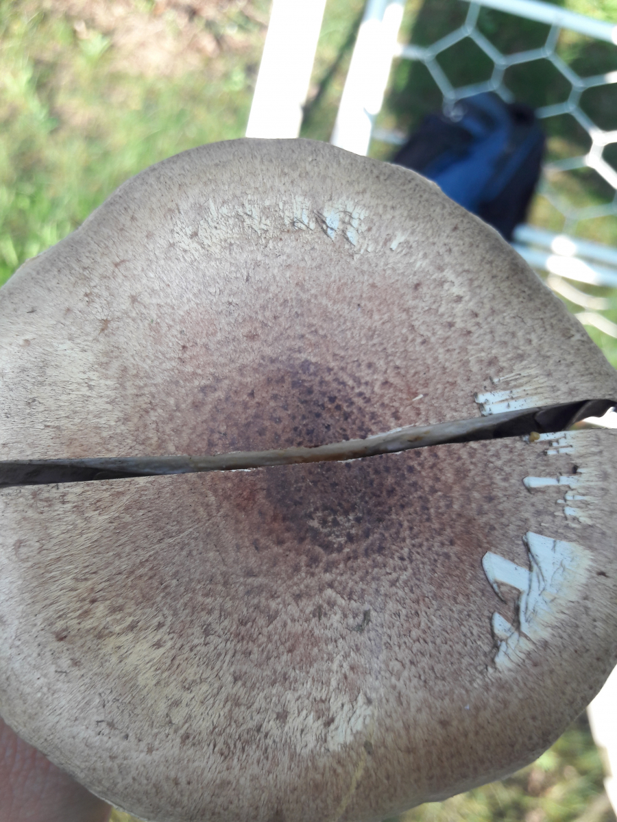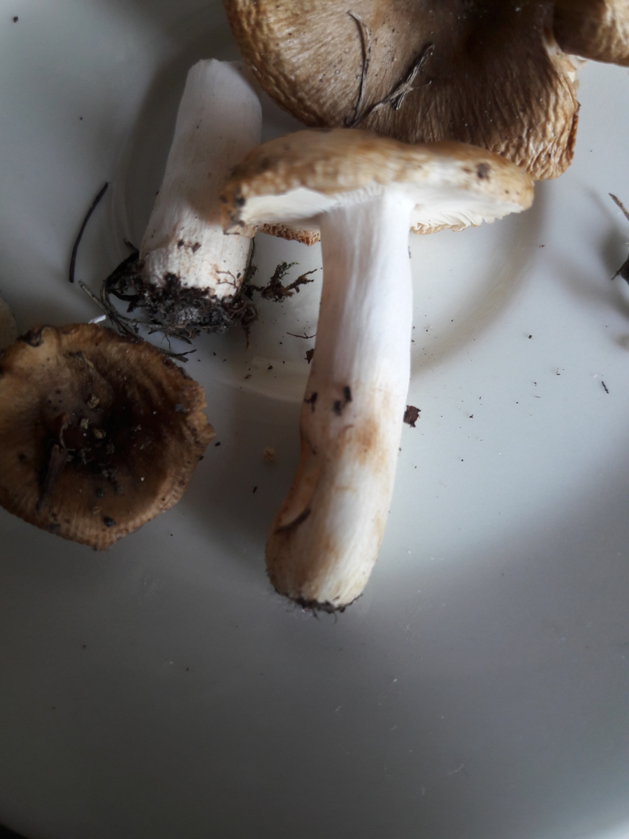 In fast trocken heute morgen nach dem Sporenabwurf waren die hüte eher olivbraun verfärbt, leichte braune Verfärbung am Stiel.