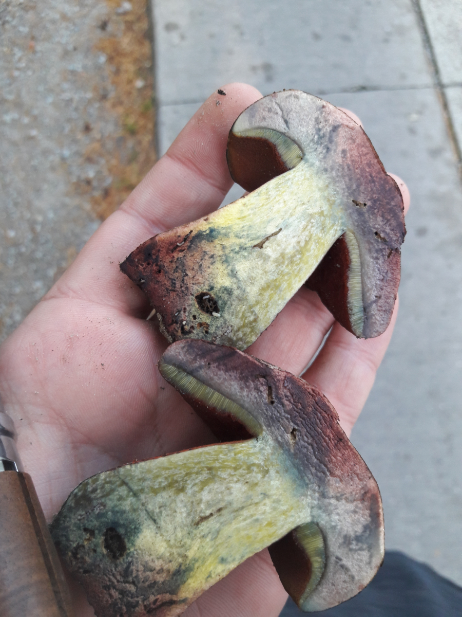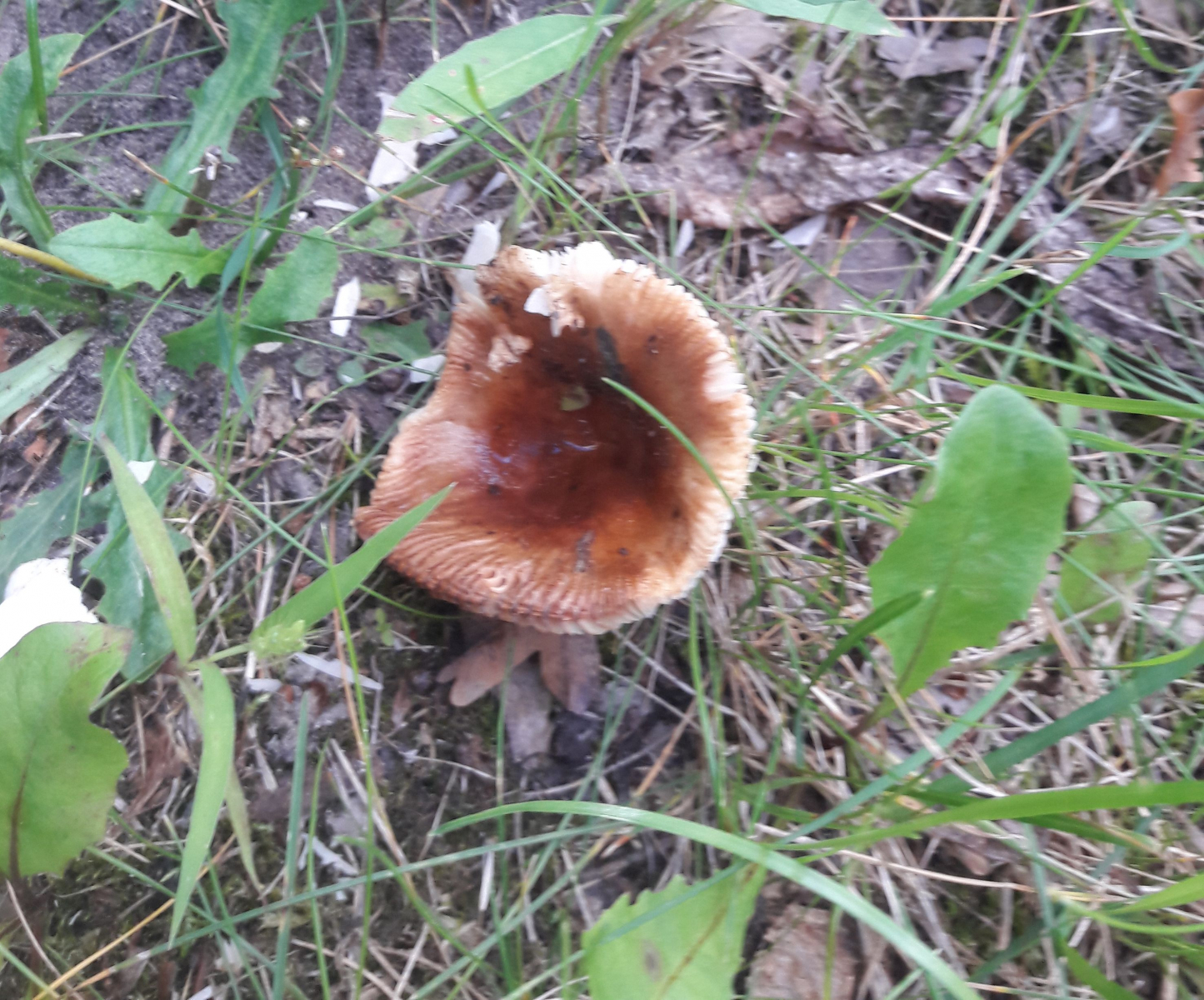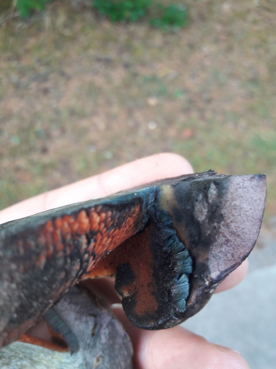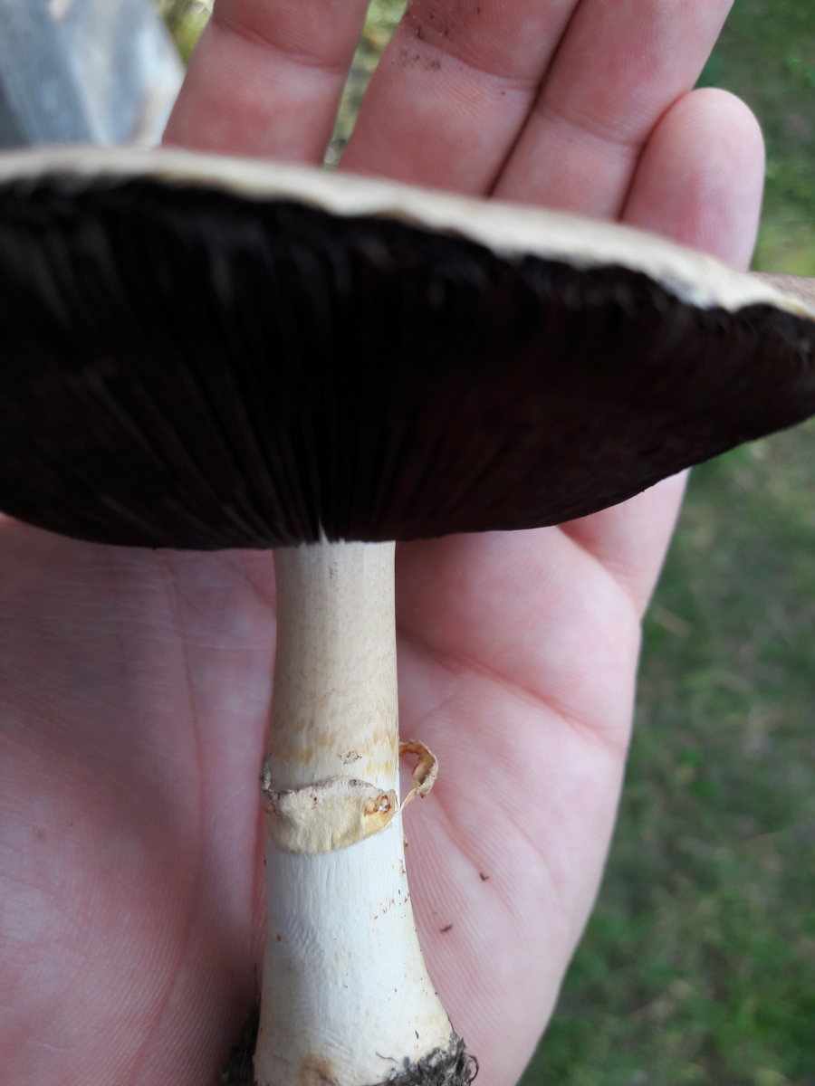 In fast trocken heute morgen nach dem Sporenabwurf waren die hüte eher olivbraun verfärbt, leichte braune Verfärbung am Stiel.