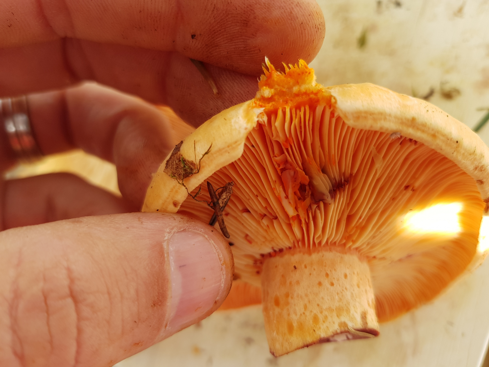 Also die Milch war bei allen karrottig orange und sie standen alle an einer Stelle. Das Problem ist dass es dort Fichten...Tannen und auch eine Kiefer gibt🙈 Die Lamellen waren alle ganz orange.