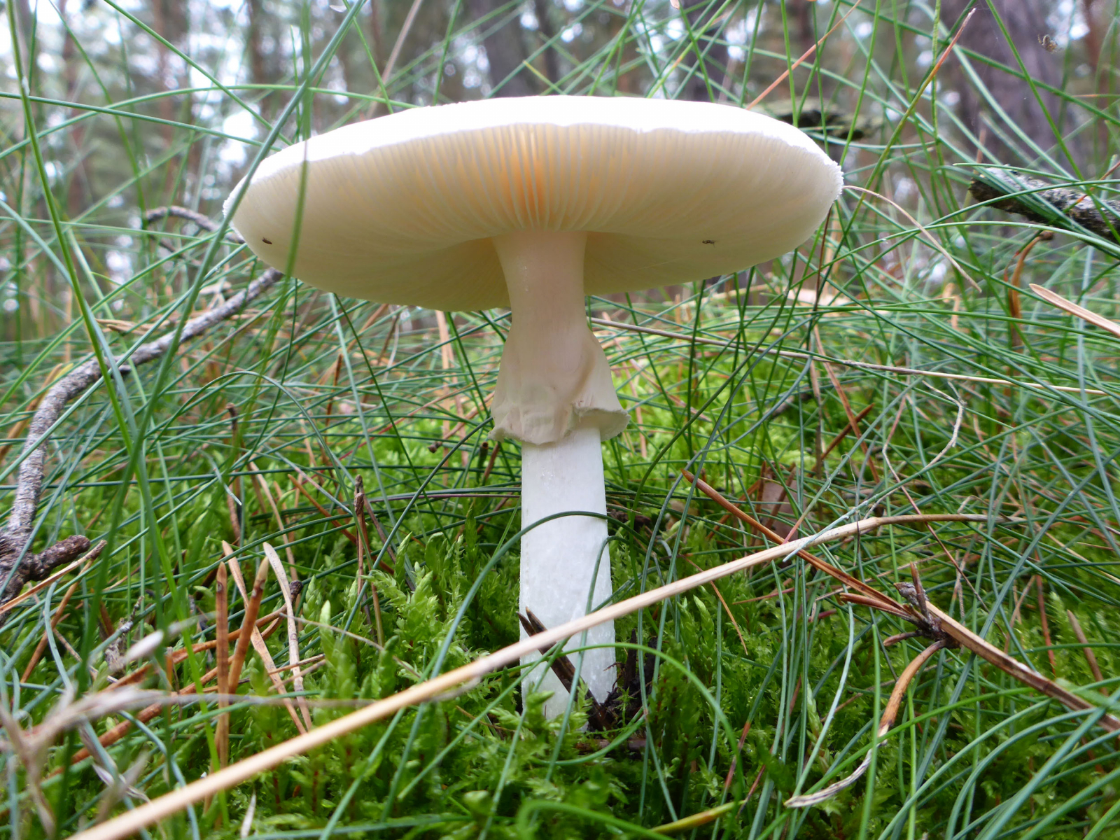 Amanita phalliodes var. alba mit angelegter Scheide scheint mir zumindst eine plausible Erklärung zu sein. Es gab zwischen den Kiefern auch immer wieder ein paar Laubbäume. Welcher Baum direkt daneben stand, weiß ich leider nicht mehr.