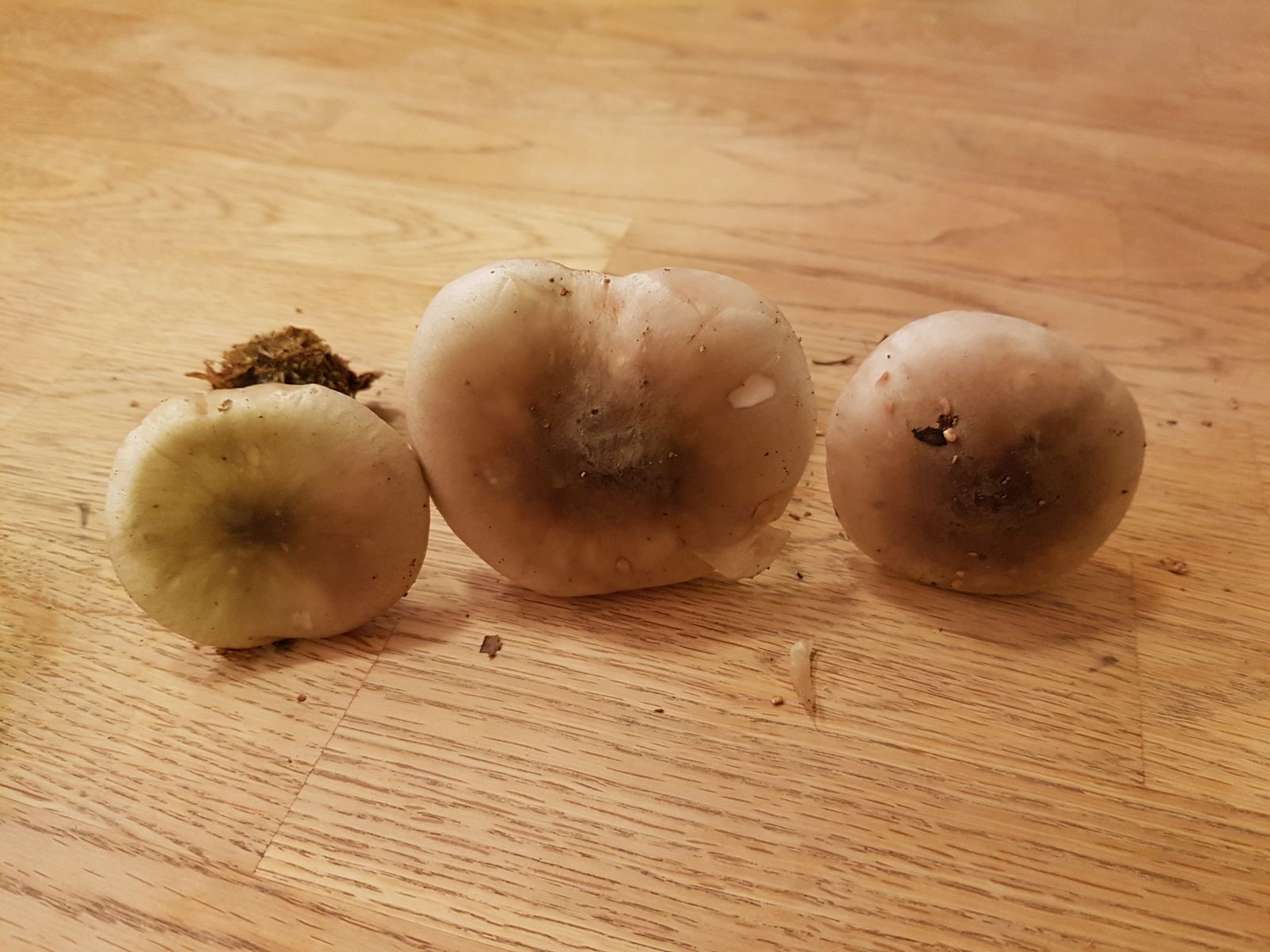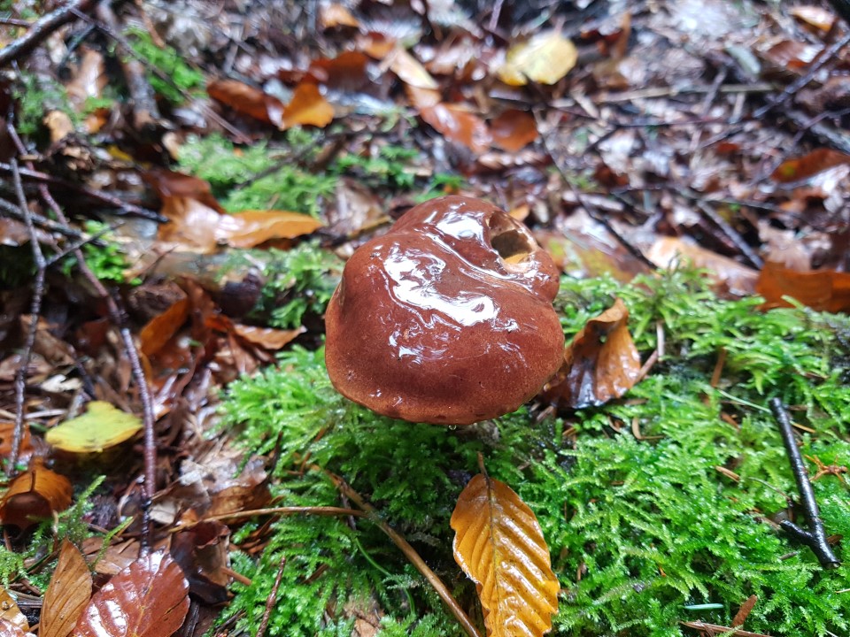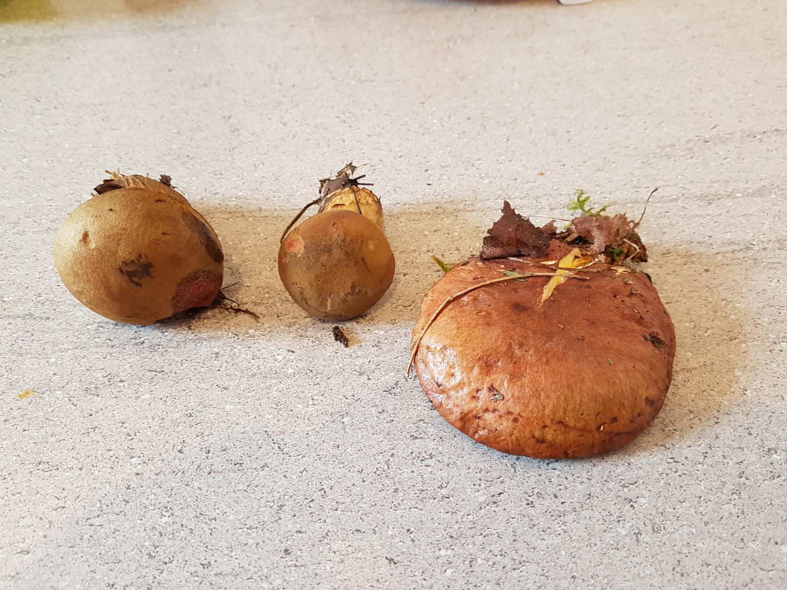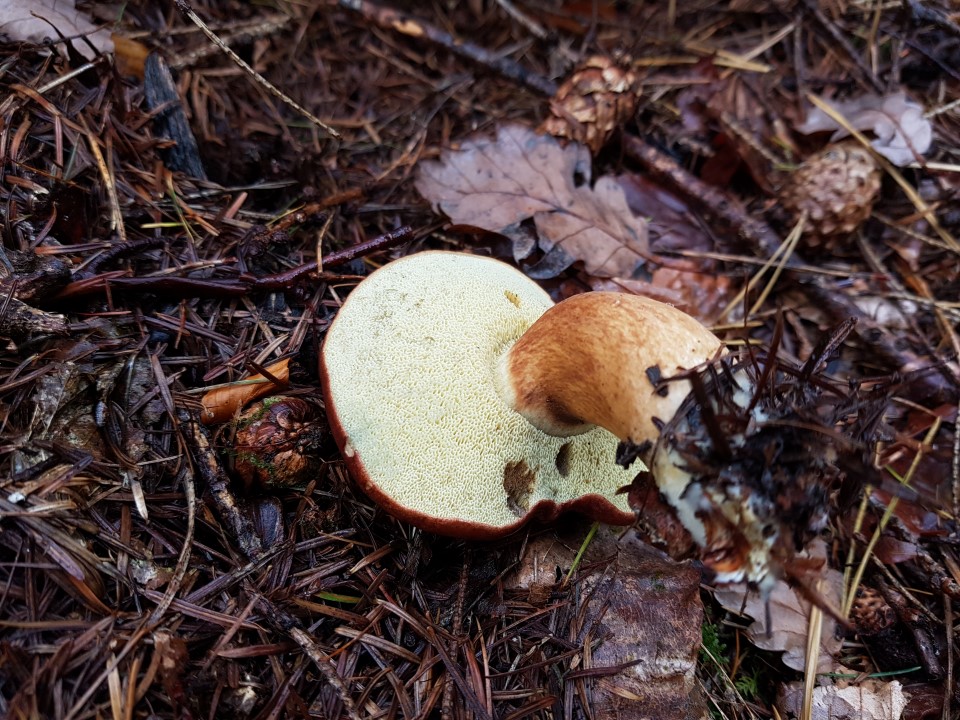 Wenn das Maronen sind, dann habe ich sie heute sehr oft gesichtet (siehe z.B. 26a, 26b). Sie sind unten schwammartig und färben sich bei Berührung sofort grün-blau. Dann werde ich sie beim nächsten Sammeln mitnehmen. Leider scheinen die Maronen bei Schnecken sehr beliebt zu sein.