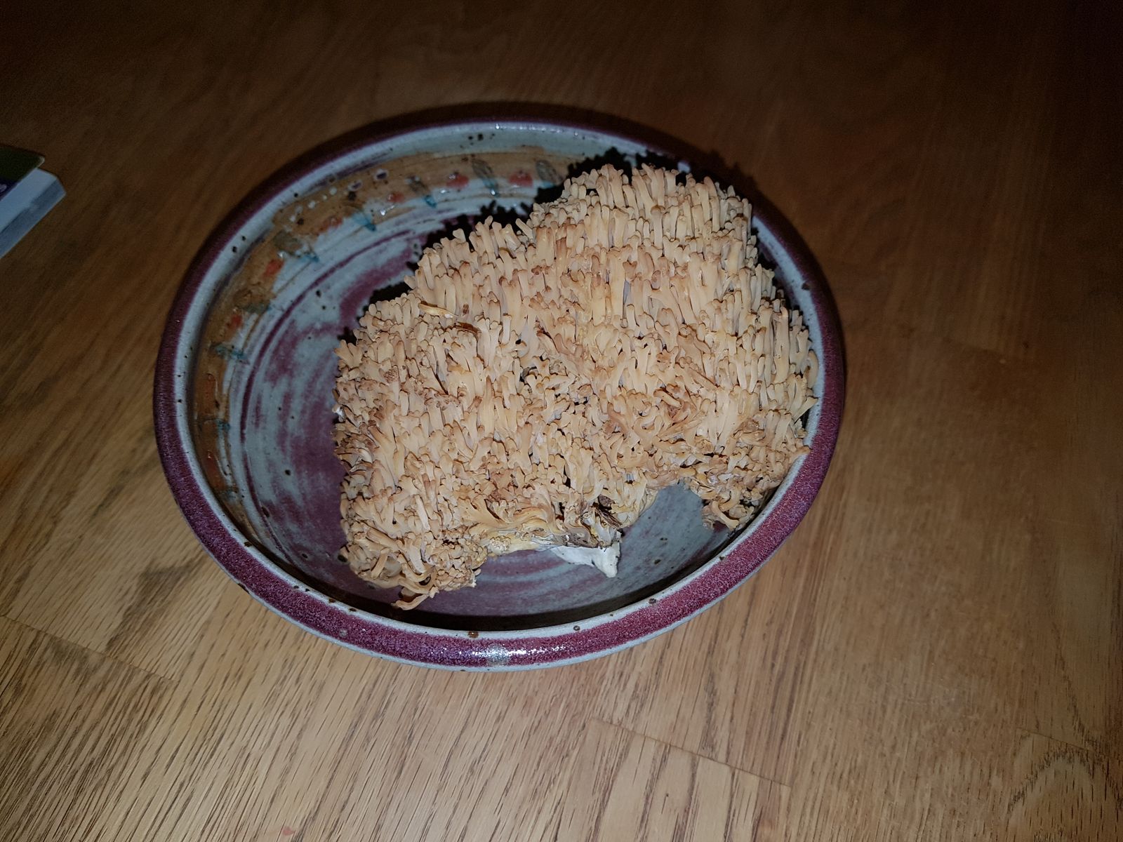 Danke! Scheint leider Nebelkappe zu sein. Schade, meine beiden Vermutungen wären essbar gewesen. Ja, der in der Schüssel ist aich ein Pilz. Siehe Fotos. Ich tippe auf Gelbliche Koralle.