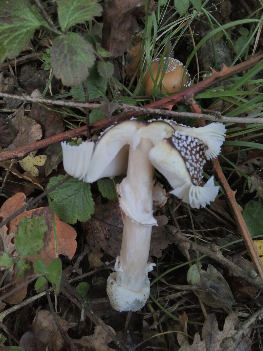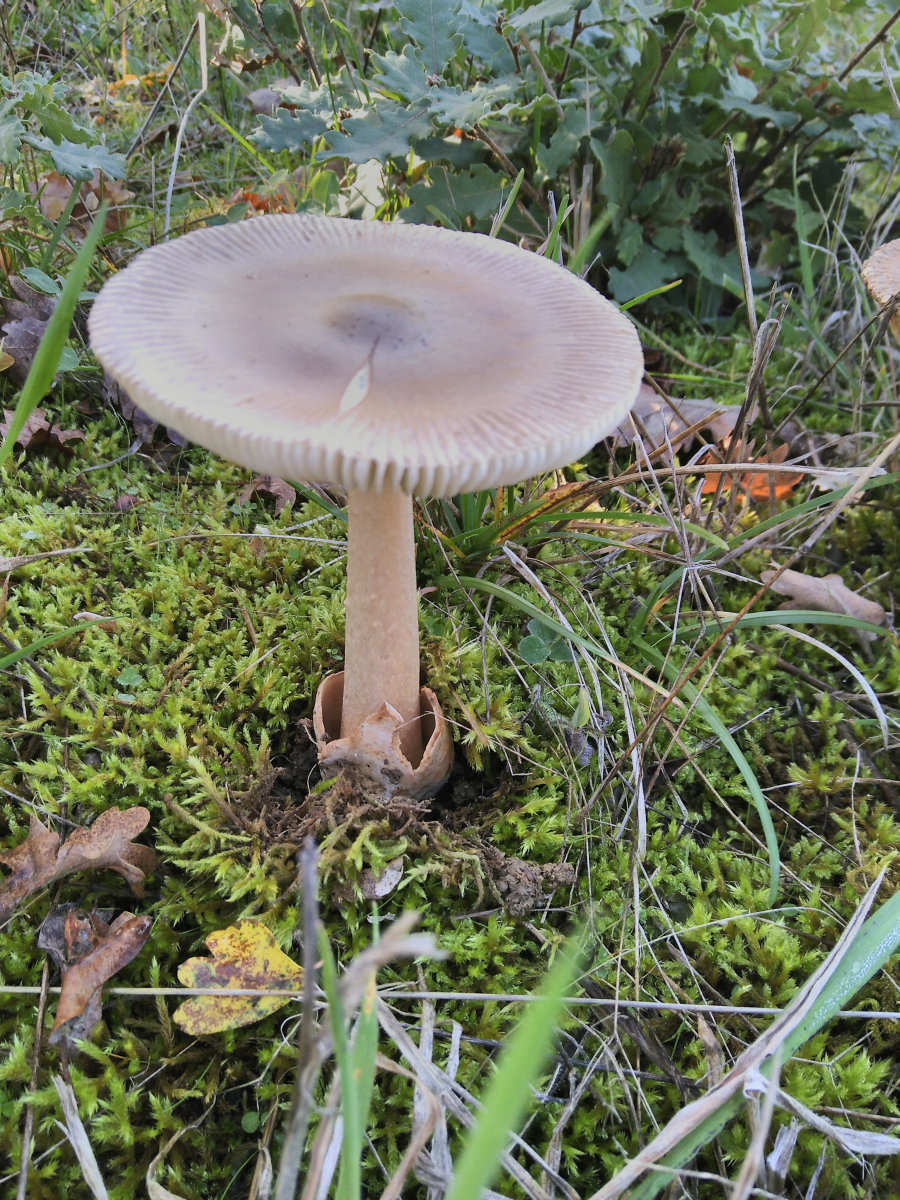 20 da würde ich den Grauen Streifling, A. vaginata ausschliessen, der hätte eine weiße Volva. Ich sehe da eine weißlich-rotbraune Volva die weit den Stiel hinaufreicht und wäre eher beim Rotbraunen Streifling, A. fulva s.l. Auch die dunklere Hutmitte passt eher zu Fulva. Möglich auch, dass es in Südeuropa weitere Arten gibt.