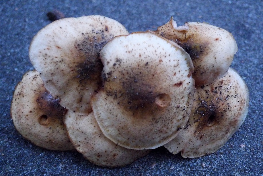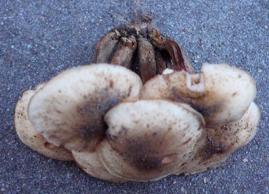 Aus den verwachsenen Büscheln einen kompletten Fruchtkörper rauszunehmen war nicht so ein einfach, die sind mir alle unten abgebrochen. Ich probiere es heute nochmal etwas vorsichtiger und stelle das Bild mit Stielbasis dann noch hier ein,
