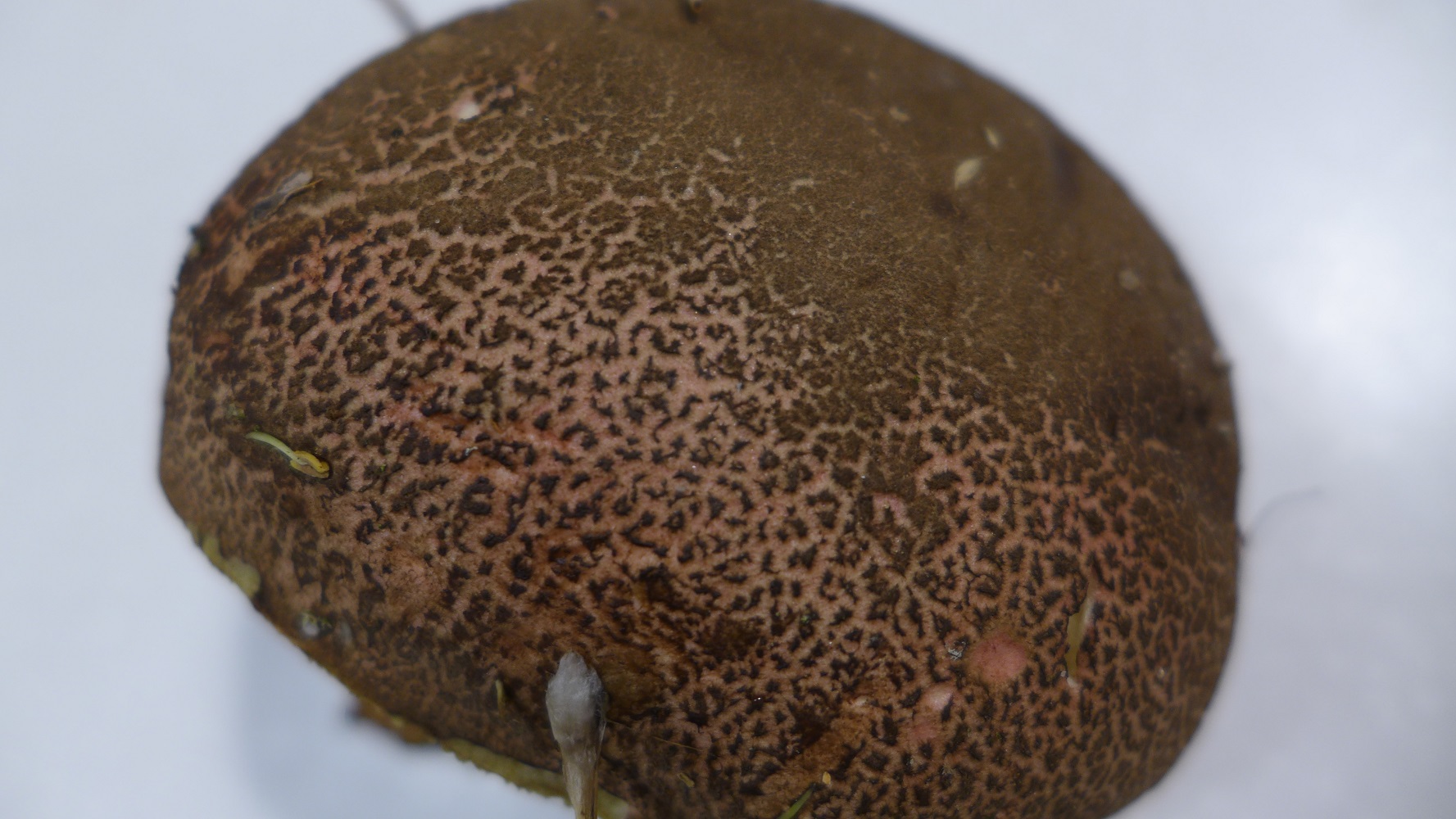 Der Stil hat keine Netzzeichnung sondern eher "Streifen" senkrecht. Am Hut hell und am Stil eher rötlich-braun werdend