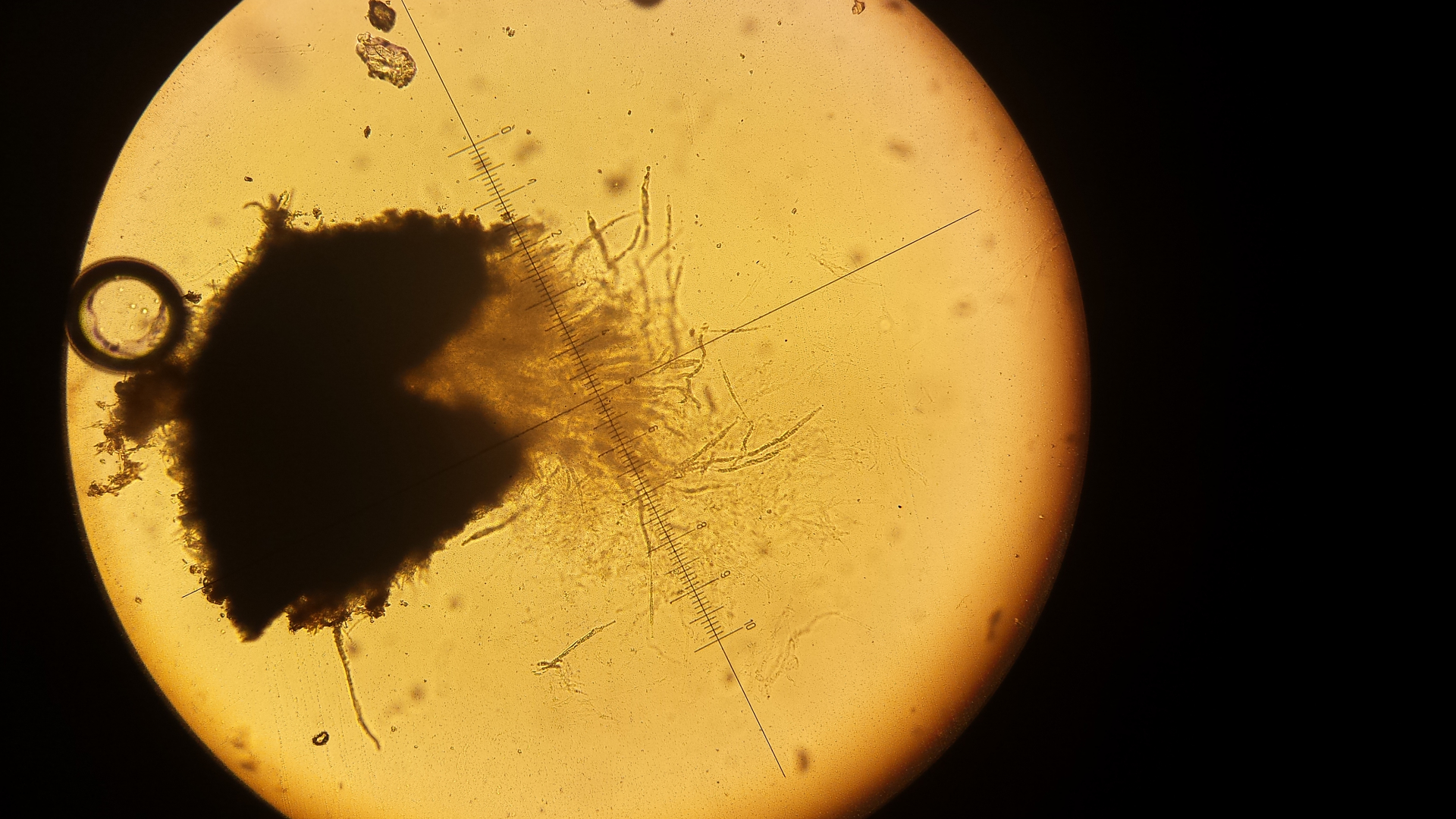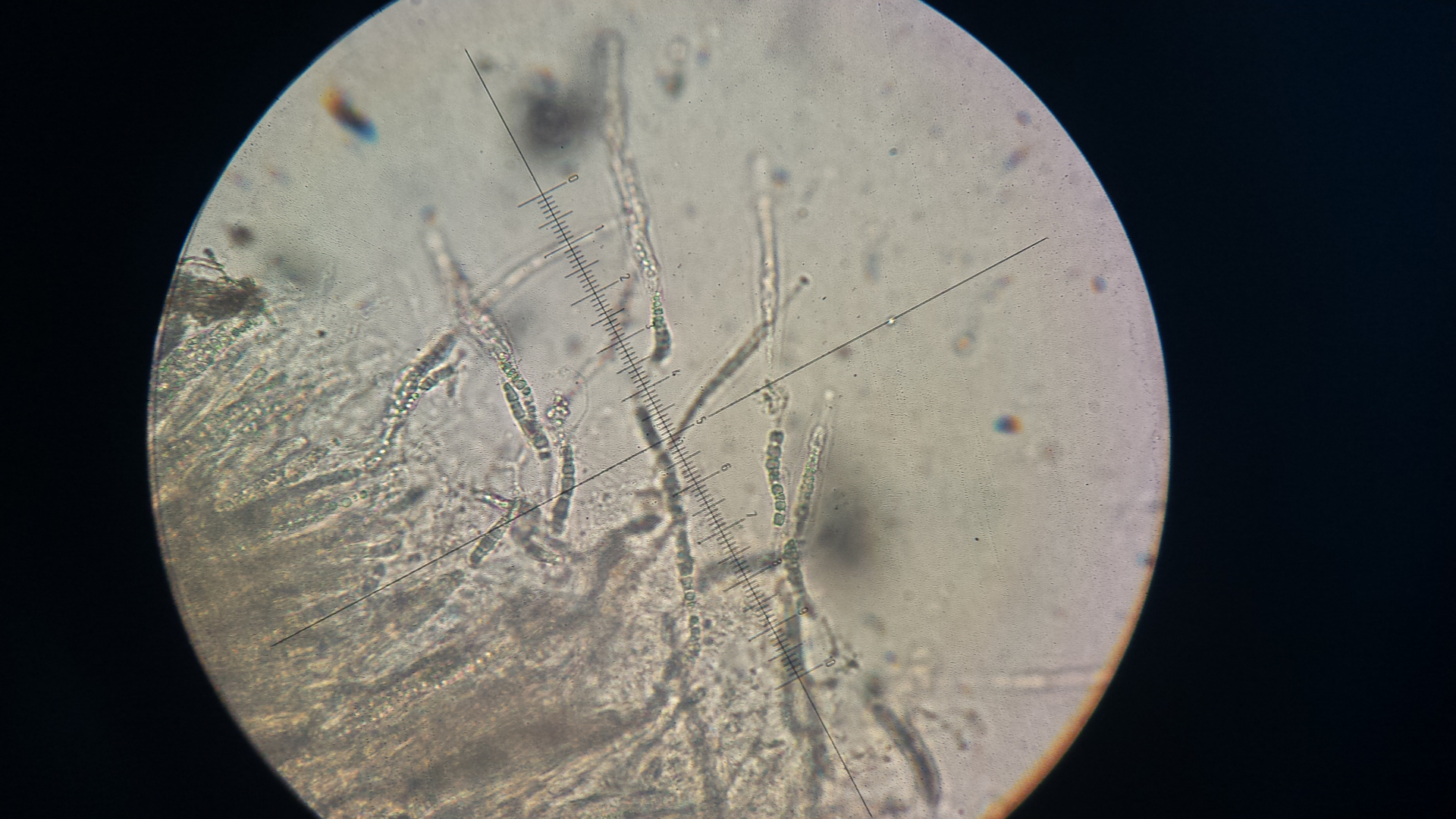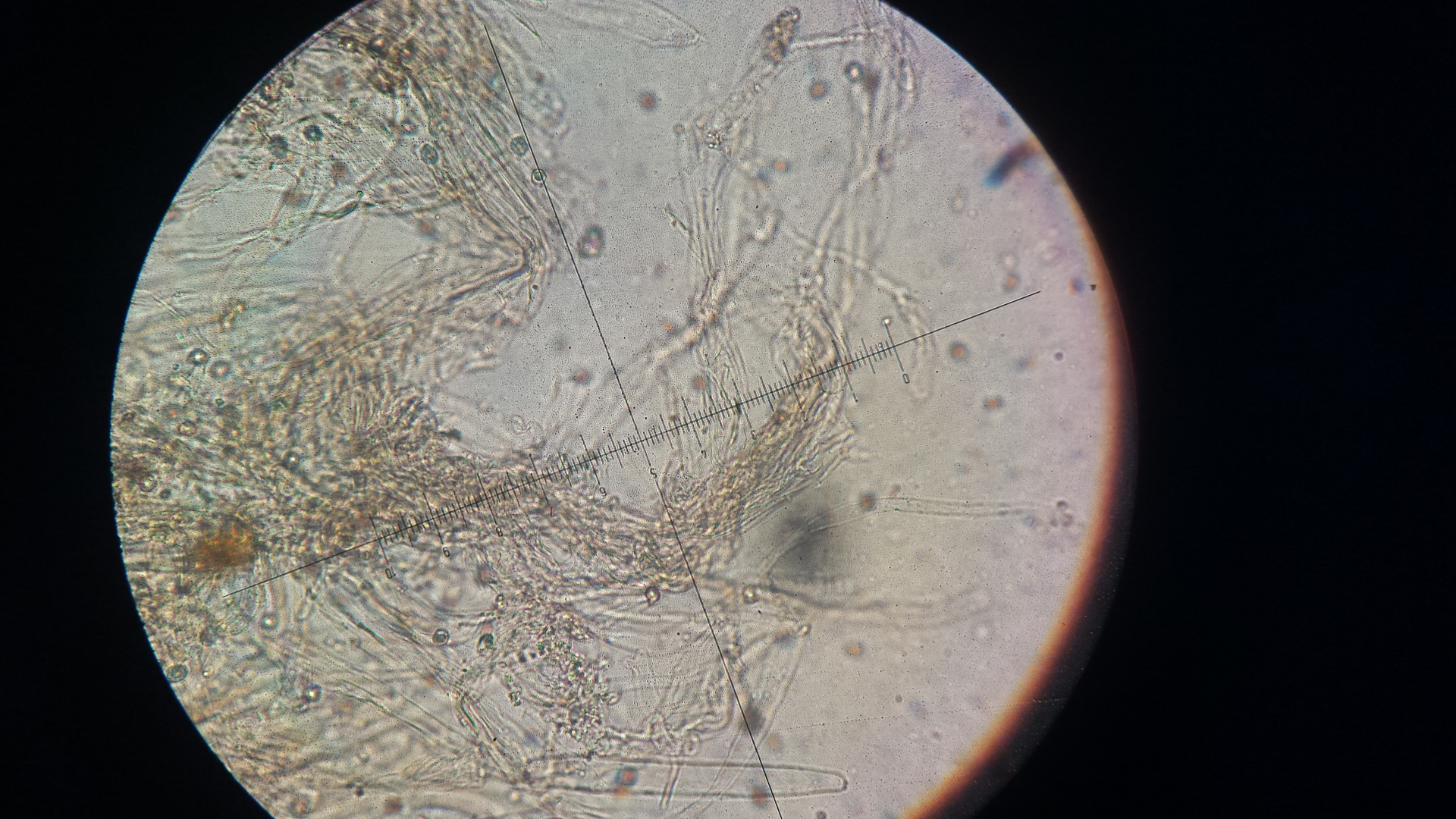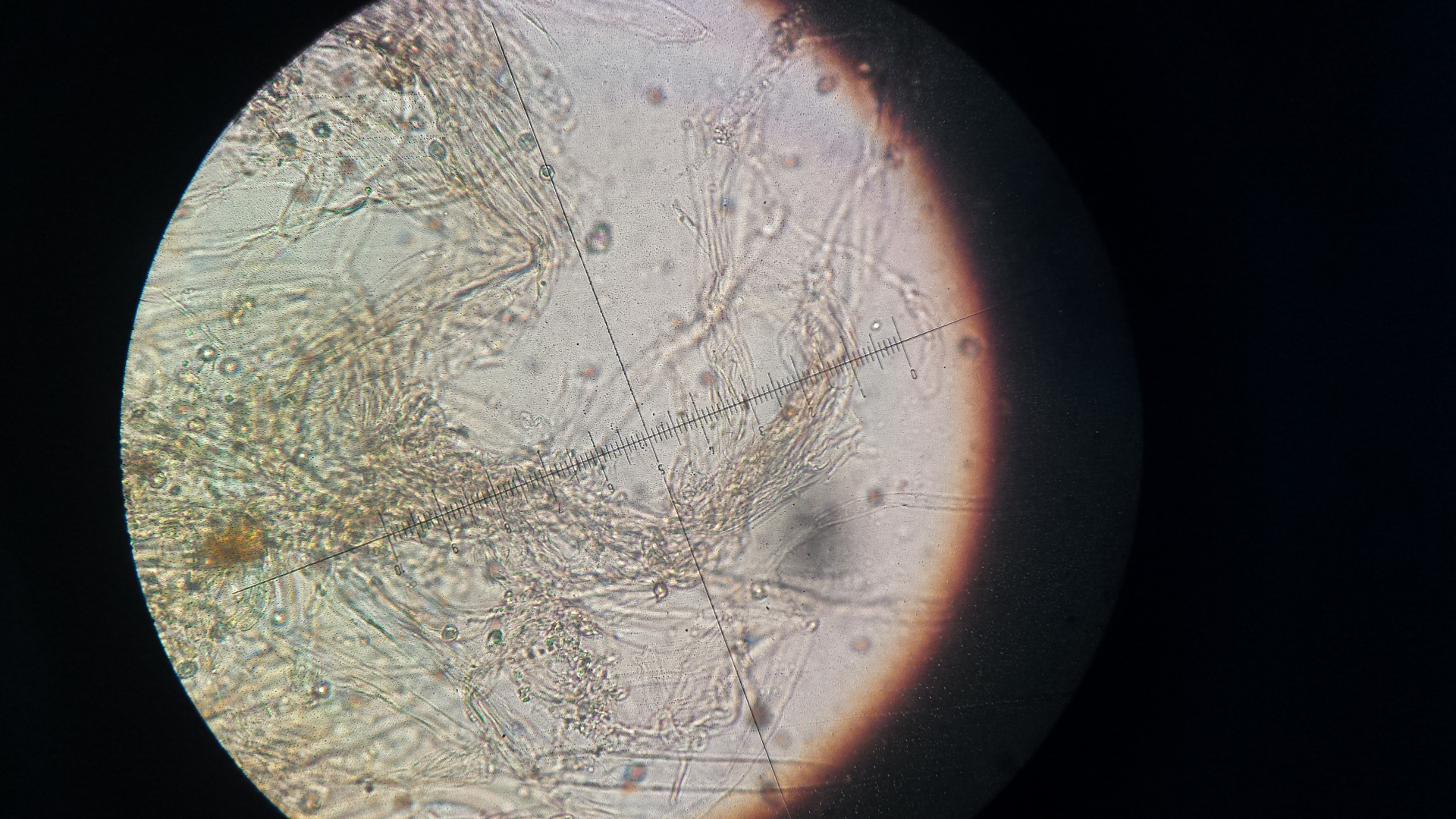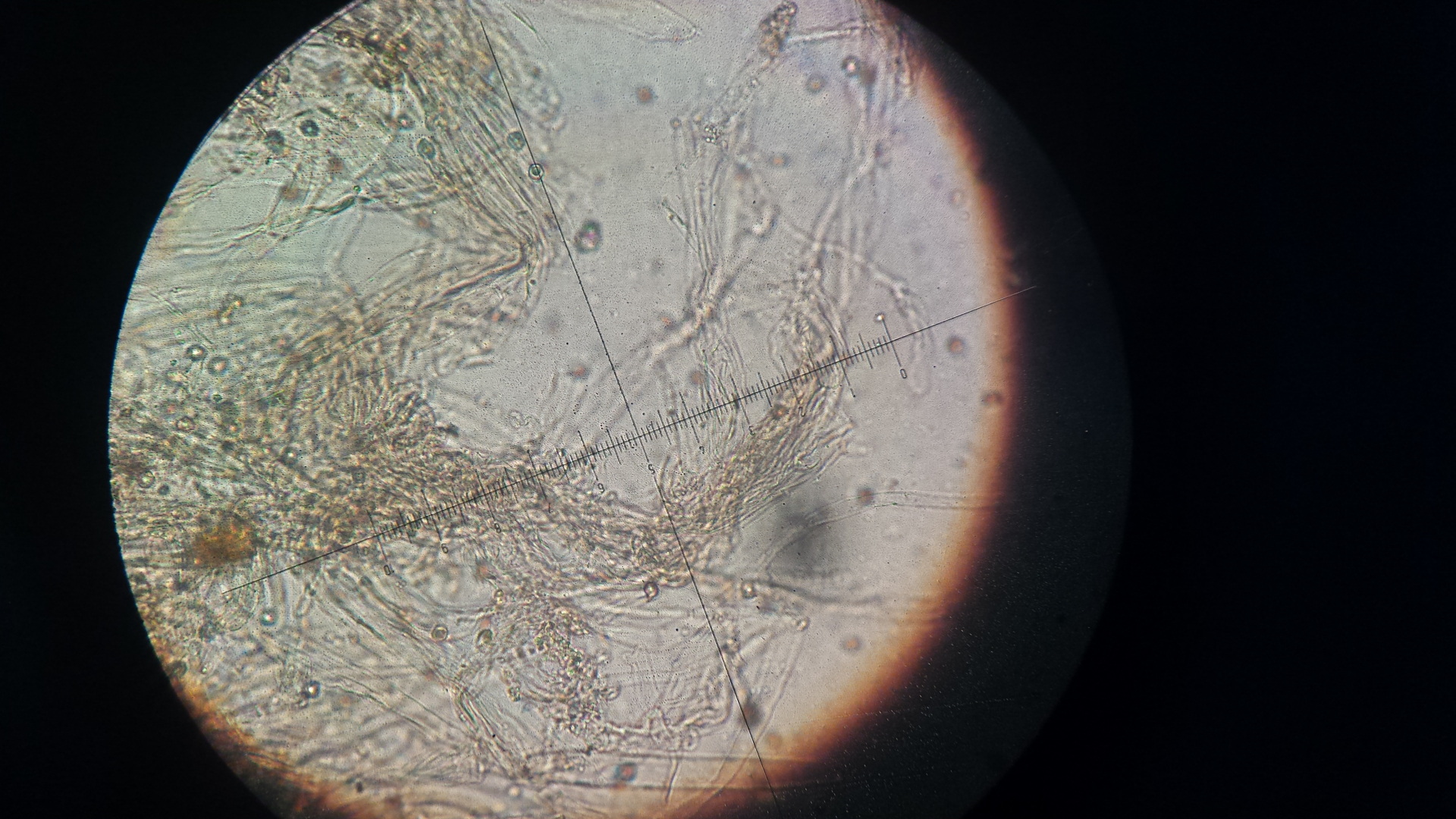 Also ich hab mal reinmikrsopiert und dran gerochen - Mehlgeruch kann ich nicht wahrnehmen, Schnallen meine ich zu sehen, ob die Huthaut inkrustiert ist ? Die Sporen sind isodiametrisch, wäre zumindest meine Interpretation und ca,8 µm im Durchmesser.