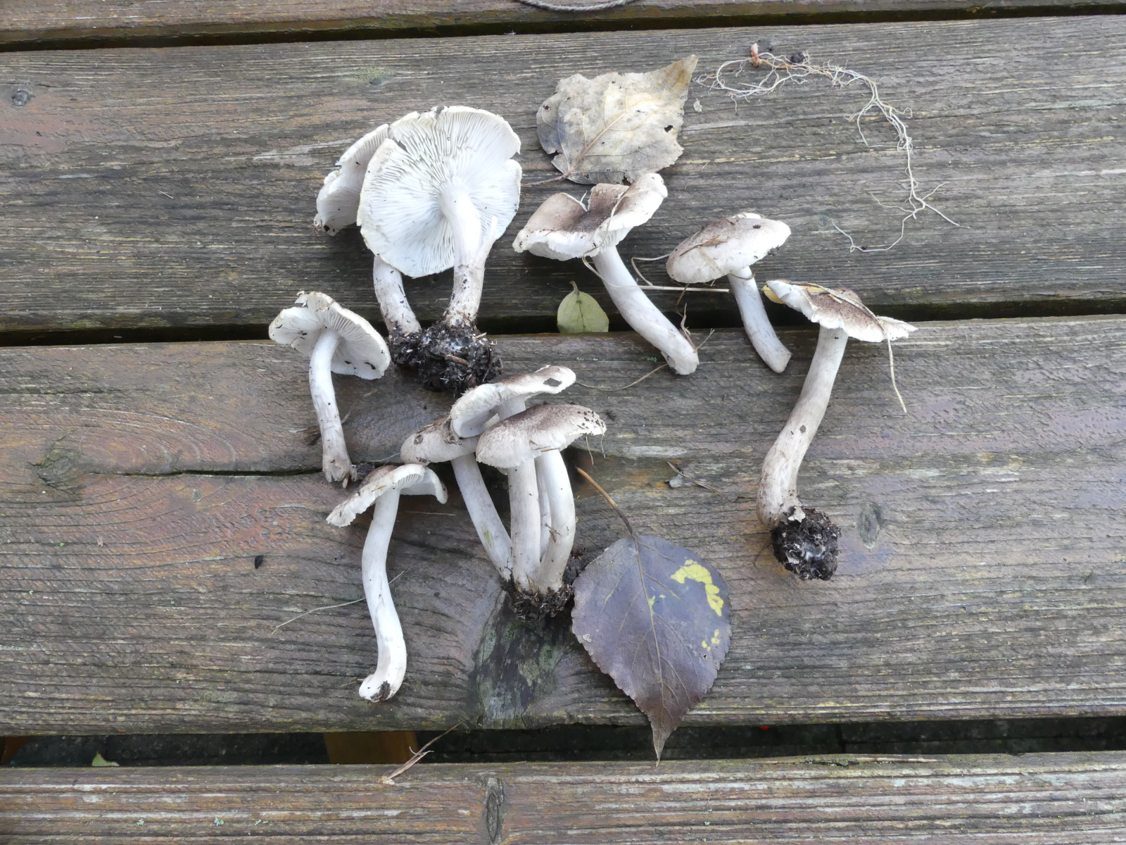 Habe auf "meiner" Stromtalwiese bei Ingelheim heute diese Pile gefunden - ich lande bei den Ritterlingen, und da wiederum komme ich beim Komplex Tricholoma argyraceum-inocybeodis-scalpturatum raus. Geschmack ist ranzig-mehlig, reinmikroskopiert hab ich noch nicht, weil mir die Unterschiede irgendwie marginal erscheinen - bin für Hinweise dankbar