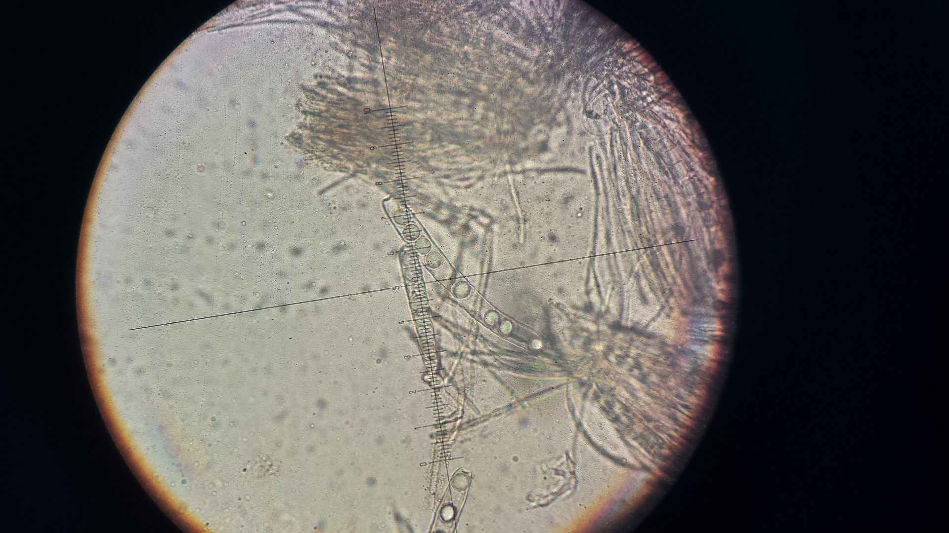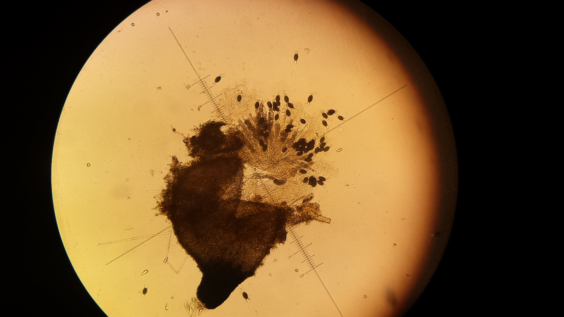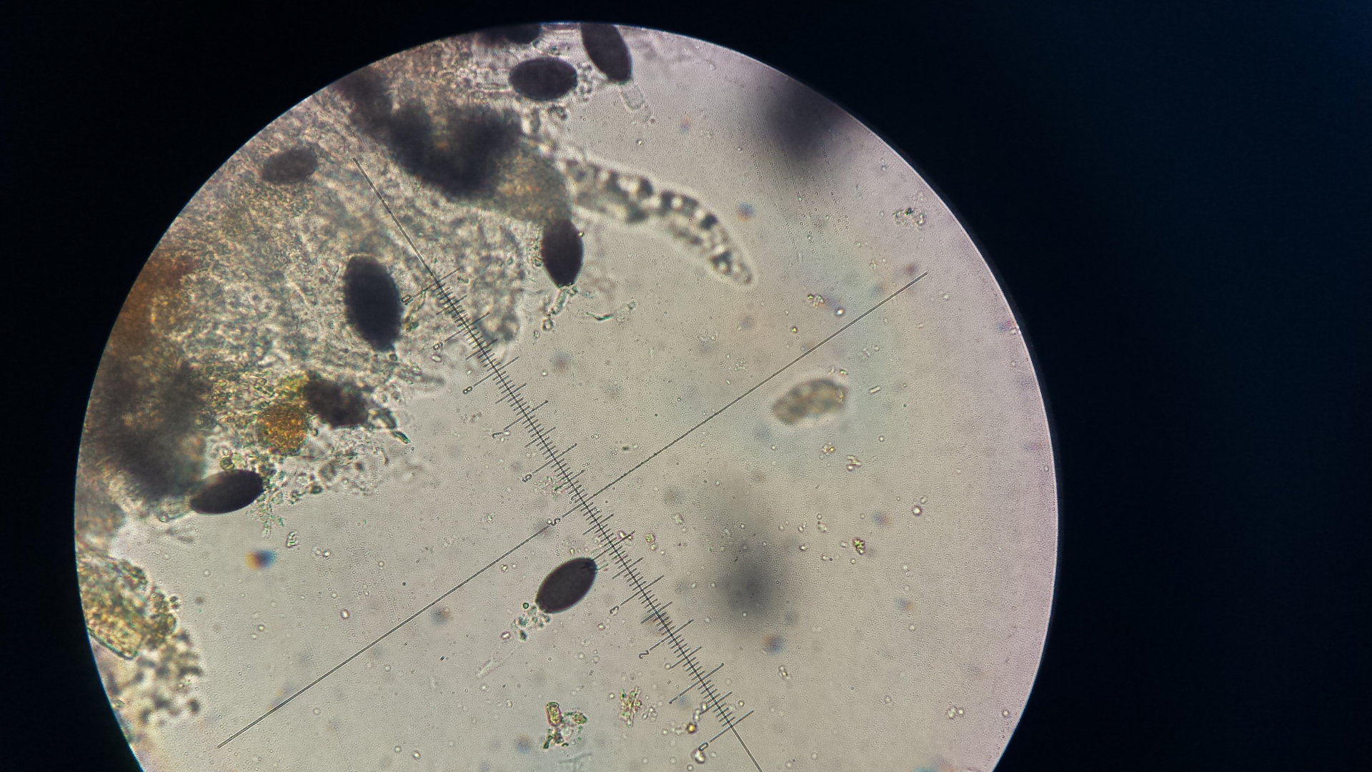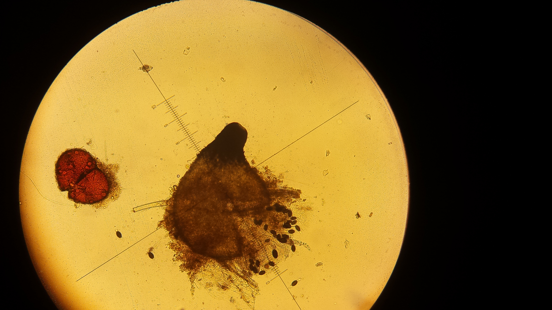 die Podospora hab ich von Wildkaninchen, der Dung liegt schon eine weile im Döschen. ich erde aus dem Ding nicht schlau, hat jemand eine Idee? Sporen sind ca. 34x16µm