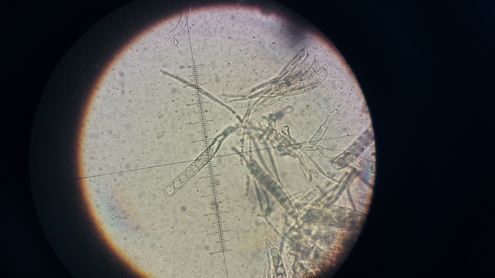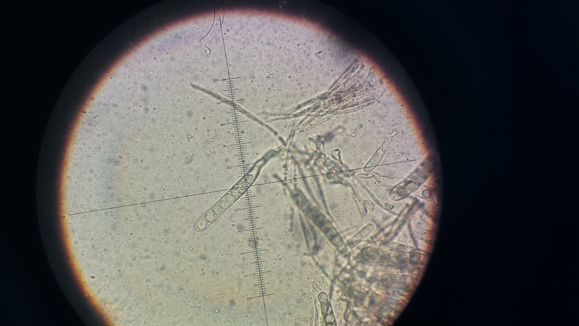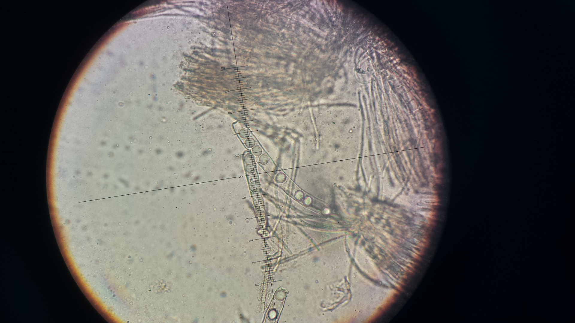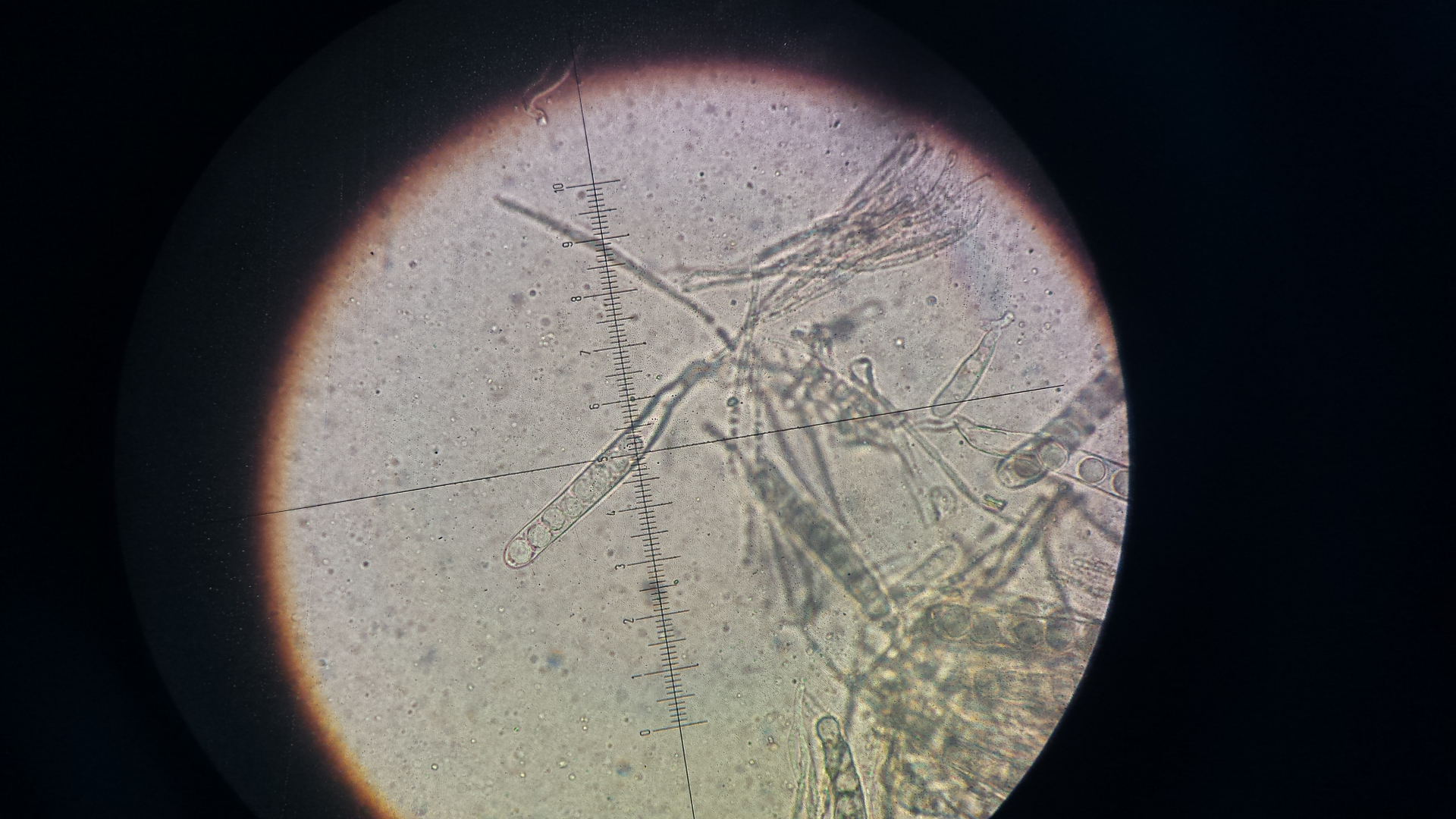 die Podospora hab ich von Wildkaninchen, der Dung liegt schon eine weile im Döschen. ich erde aus dem Ding nicht schlau, hat jemand eine Idee? Sporen sind ca. 34x16µm