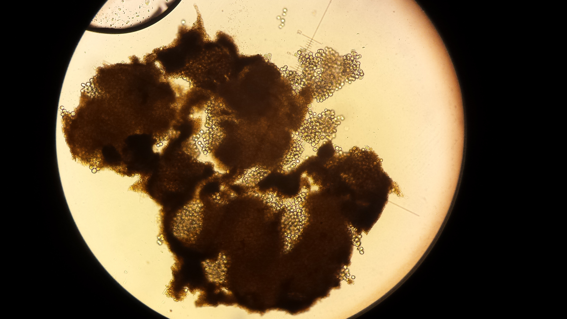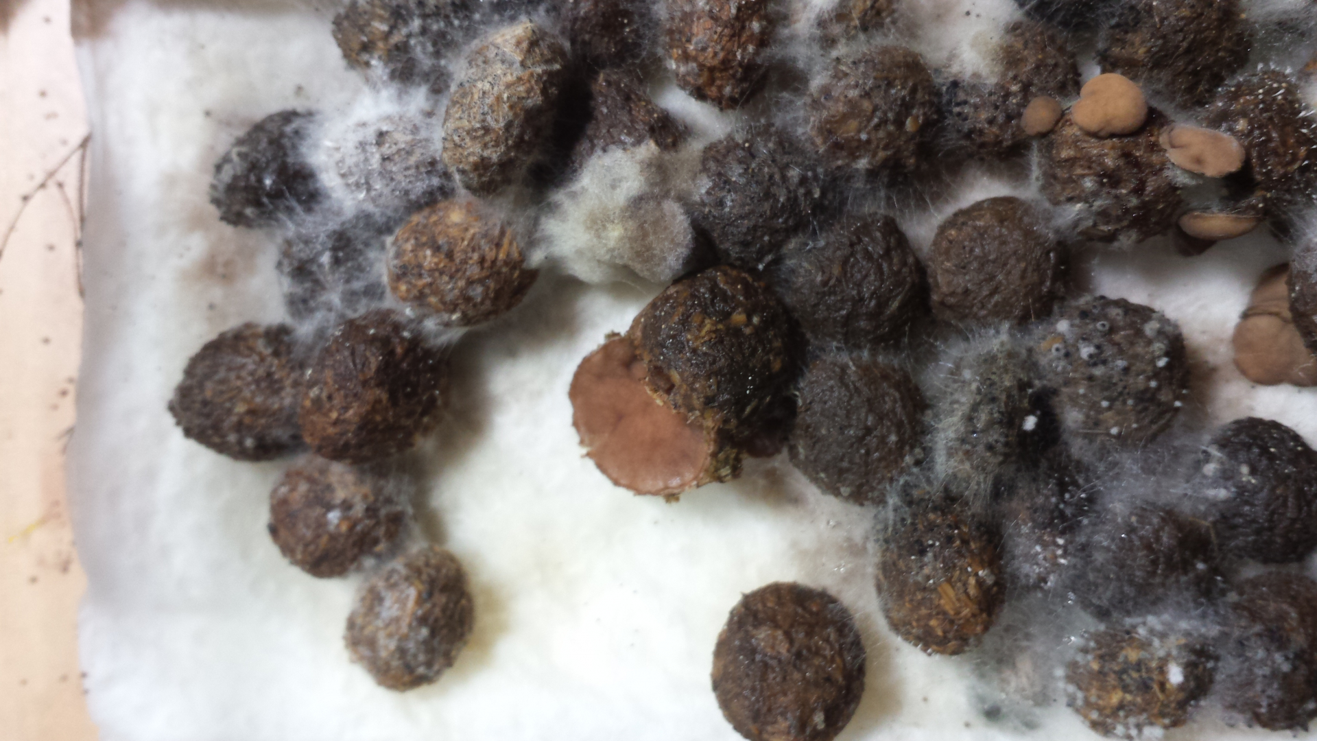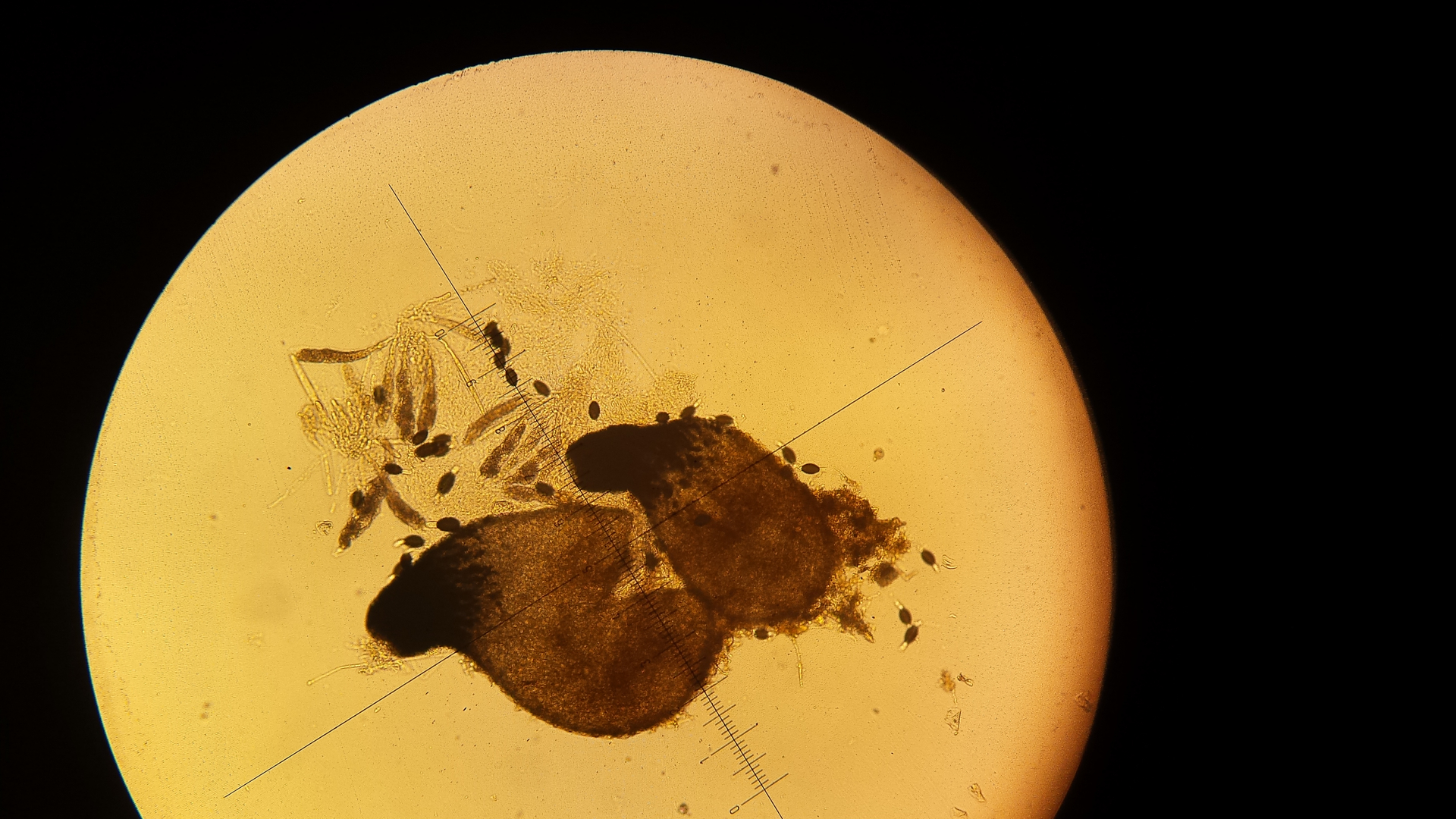 Das kam auf dem Kaninchen. Sieht aus wie ganz winzige Ascocoryne, aber keine wirklich im Mikroskop erkennbaren Strukturen.