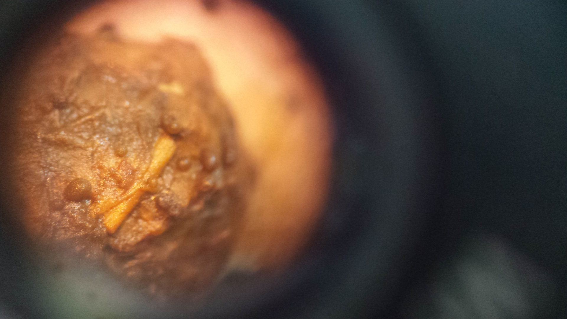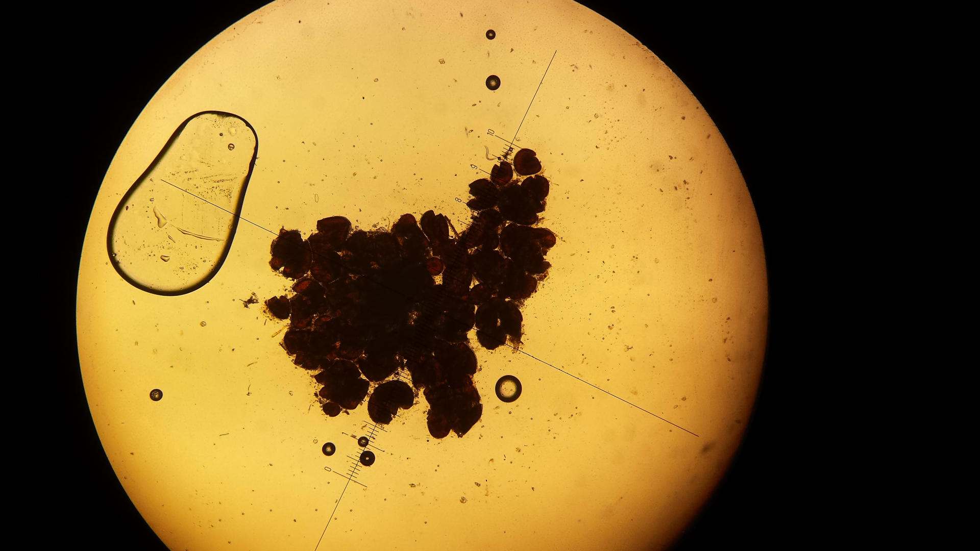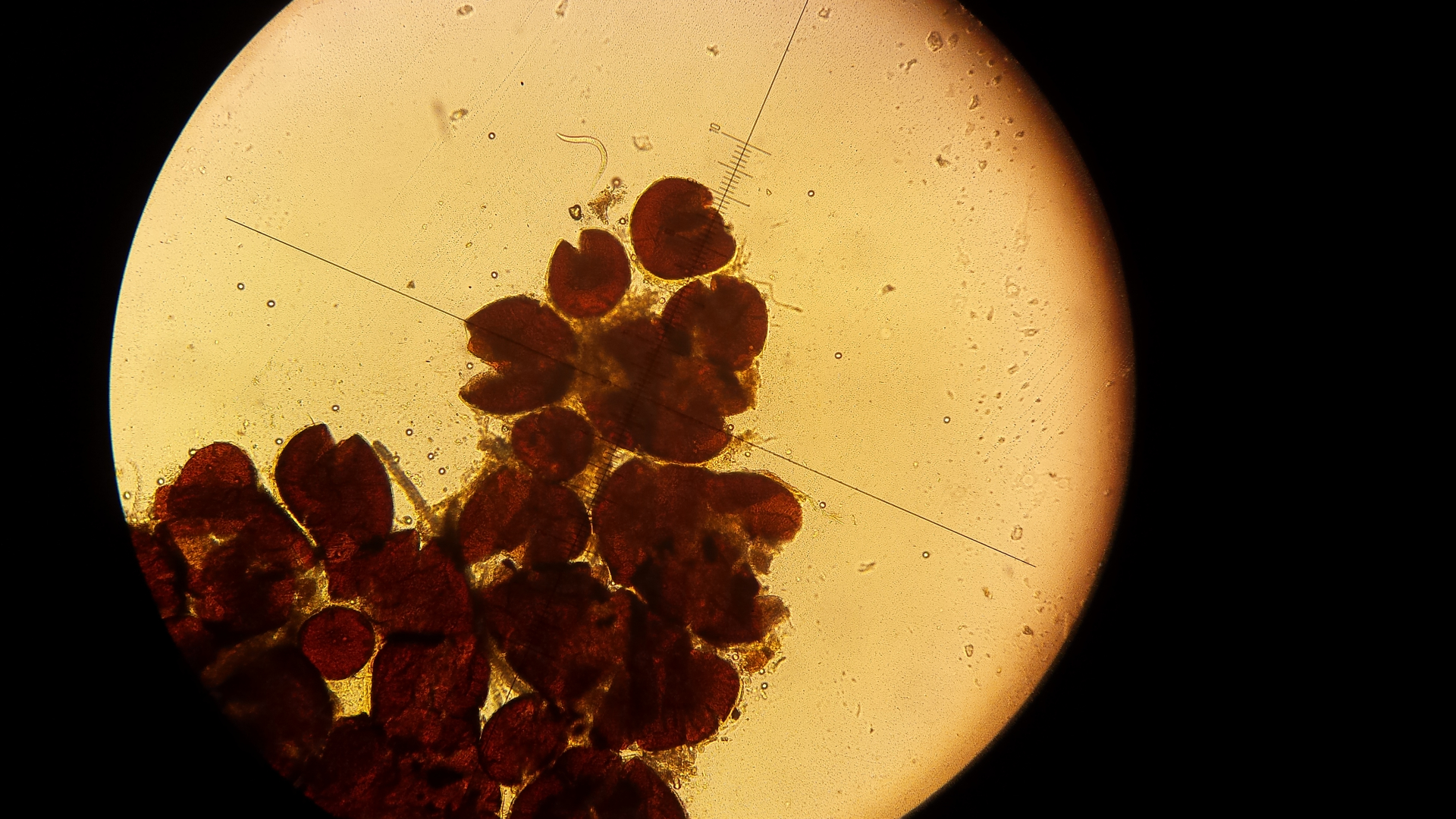 Auf meinem Wildkaninchen wachsen wunderliche Dinge. Was könnten diese Kügelchen sein? Scheinen mit ca. 5 µm großen kugelförmigen Sporen gefüllt zu sein. Ich hab keine Idee.