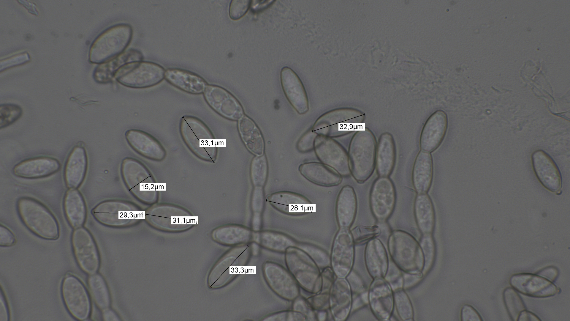 Da nerv ich das ganze Wochenende mit Tintlingszeugs und dann bringt der Hunsrückhirsch doch Sporormiella. Erster Blick durchs Mikroskop - ach minima, check, wär ja auch verwunderlich, wenn es den da nicht gäbe. Zur Sicherheit noch mal Sporen messen -- aha 37,9 - 39 bis 40 µm ... äh ... Dottore sagt minimoides, reitet aber auf dem Keimspalt rum, schräg, aber ohne Knick ("Kink" - googelt das mal :-)) - diagonal ?? , leichten Knick mein ich schon zu sehen, aber wirklich schräg ..? (lies sich leider nicht schlecht im Bild festhalten). OK - gehen wir zur Quelle Achmed & Chain - ähnliches Ergebnis - wobei da minimoides schon bei 36 µm endet..... aber australis finde ich, passt auch nicht so recht, da wären die Sporen am unteren Ende und sollen nicht zerbröseln, tun meine aber, in Einzelteile ... wobei dann wieder - mag Hirsche ...).und von dem gibts drei Nachweise von hier, einer bestimmt von Nobi auf Pferd nur wenige km weg .. Mal wieder ratlos .... Hagen