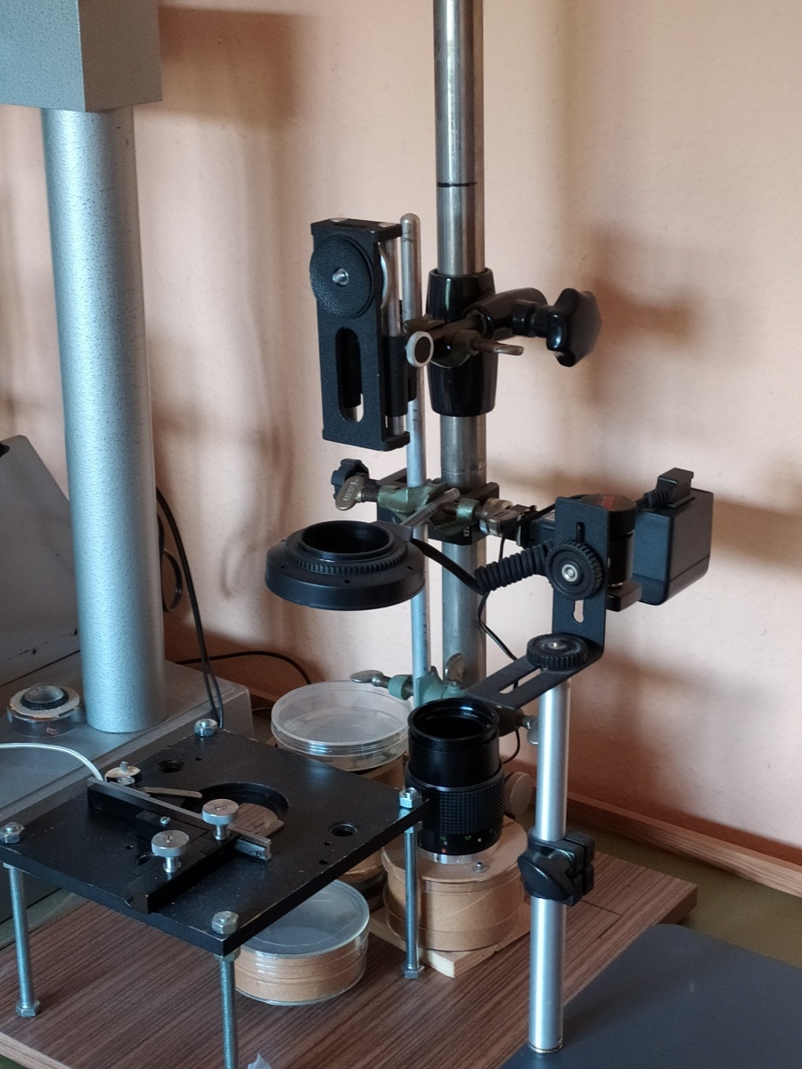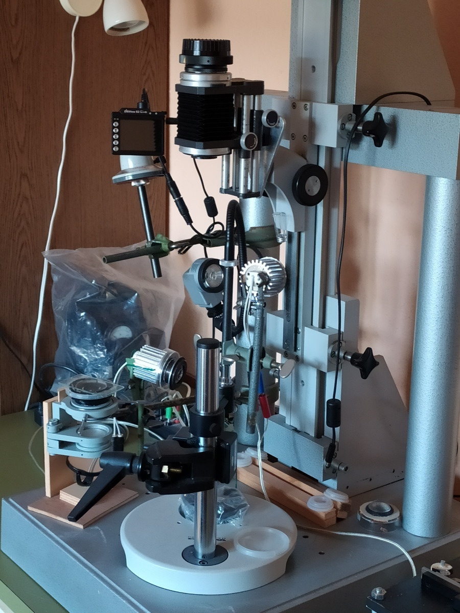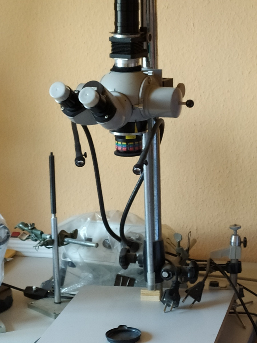 diese Mikroskopieranlage steht in der Nähe von Mainz, ein mittlerweile älterer Herr hat sie gebaut und auch genutzt, unter anderem für Artikel in der Mikrokosmos. Leider ist er nicht mehr in der Lage, sie zu bedienen oder zu erklären. Ich selber habe nur über drei Ecken diese Bilder. Die Familie muss sich davon trennen, wäre aber arg dran interessiert, dass sie jemand im Sinne des Erbauers nutzen könnte. Bei Interesse bitte PN, dann stelle ich Kontakt her.