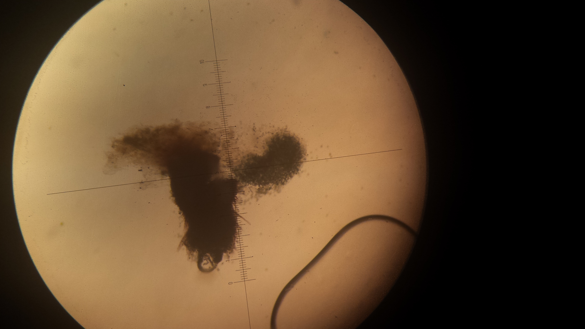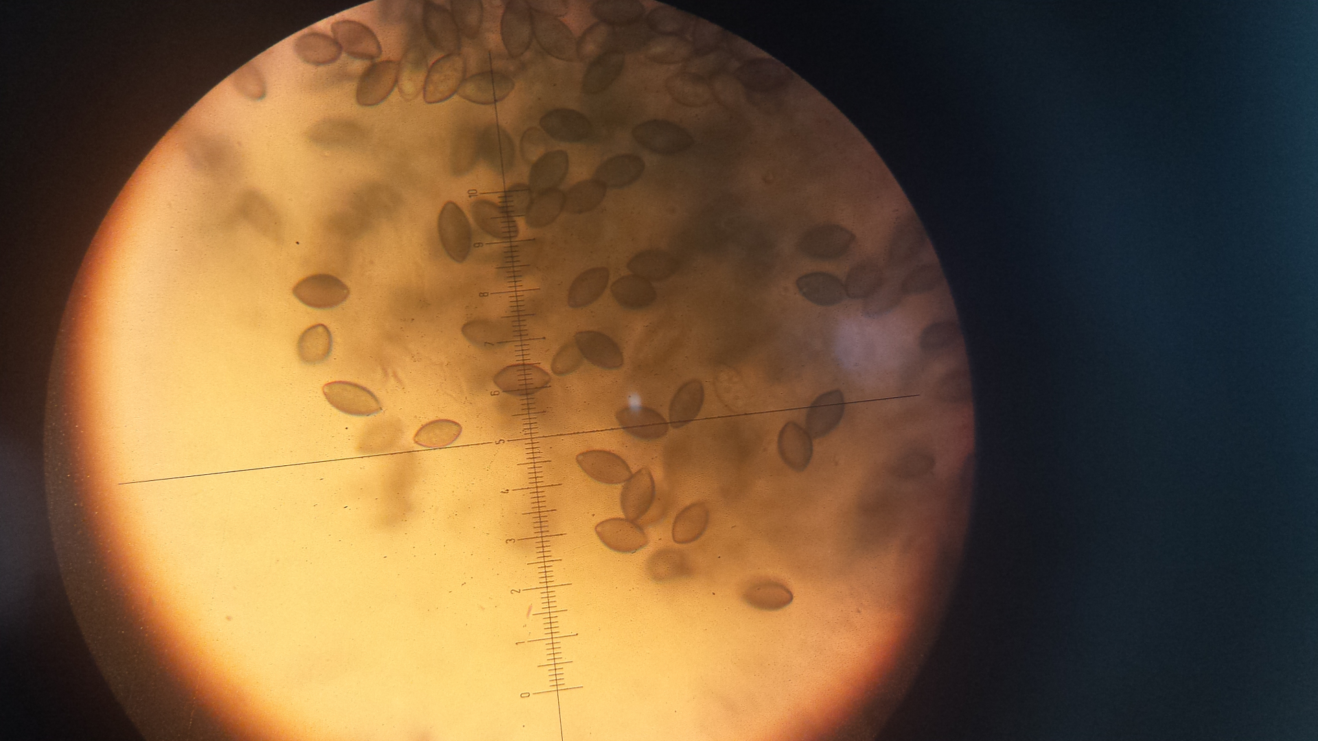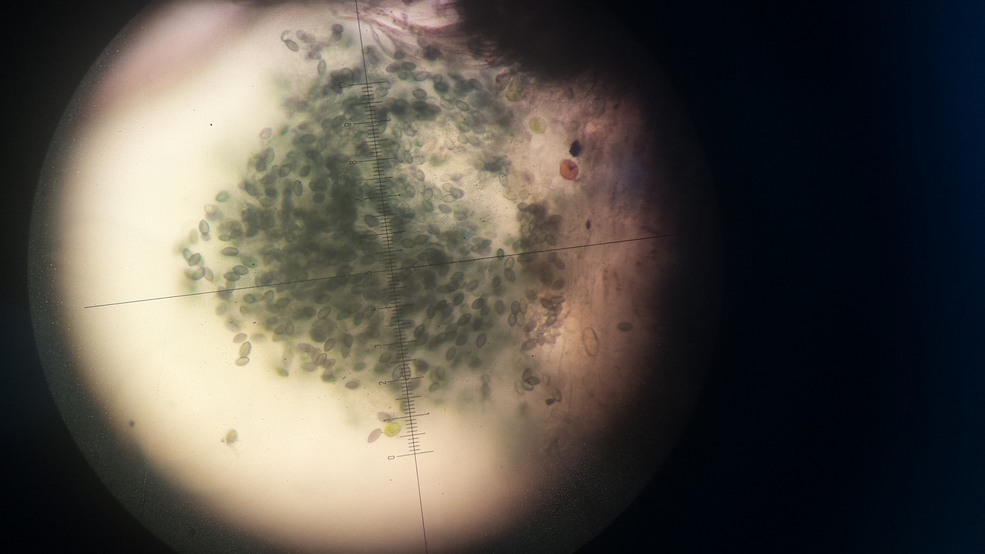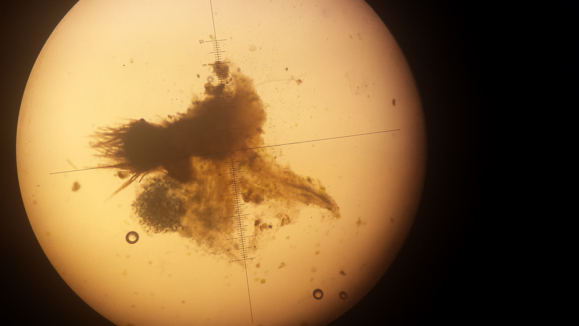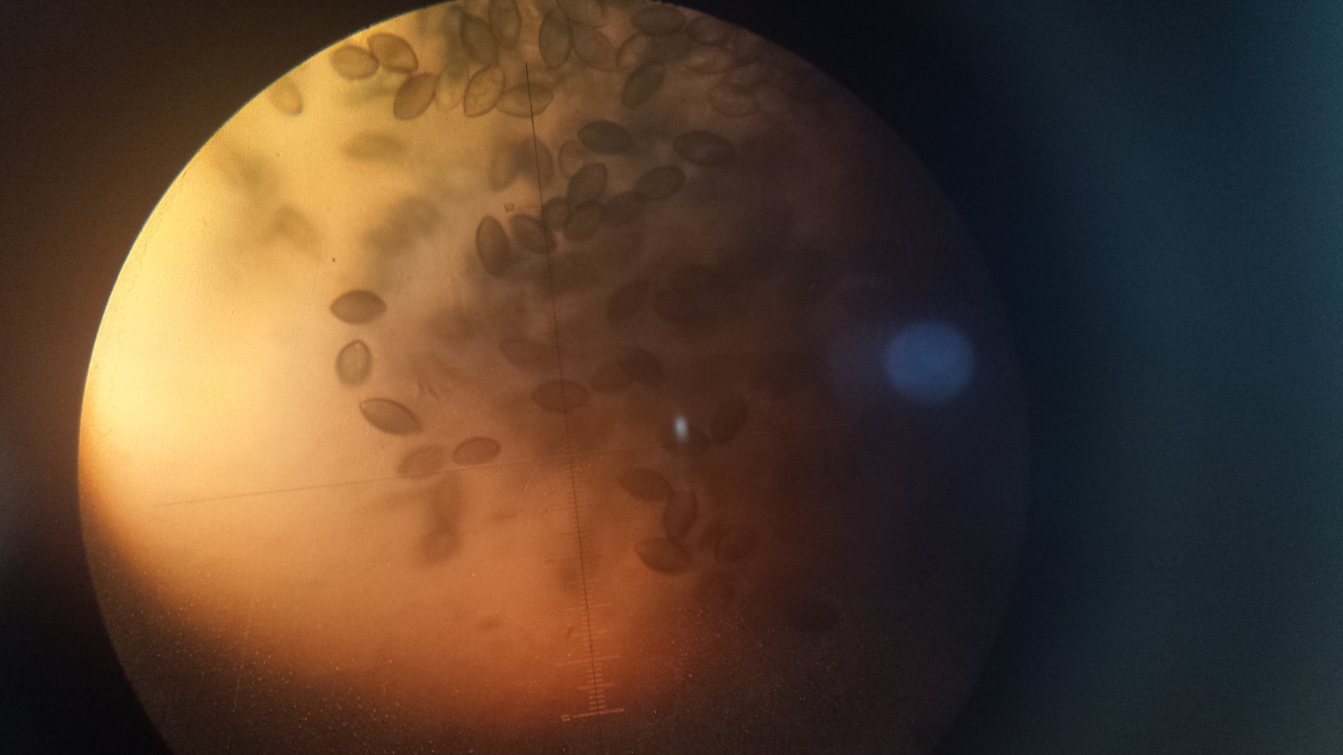 auf einer Probe Rinderdung kommen diese Dinger - leuchtend gelb, tropfenartig, ohne eigenen stiel, eher an Fasern aus dem Substratwachsend. Unter dem Mikroskop eine Masse an Konidien, ca 4-5 µm, fast rund. Die größeren Objekte könnten auch Nematodeneier sein, das Präparat wimmelte. Hat jemand eine Idee?