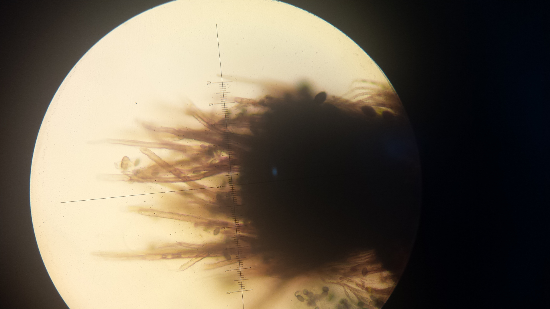 der Haarschopf nur wenig ausgebreitet ist, wenigstens so lange er trocken ist. Die jugendlichen Sporen liegen meist zu 8 zusammengeballt und vermuthe ich, dass die Schläuche sovielsporig sind, ohne jedoch, dass ich letztere entdecken konnte.)Gruß