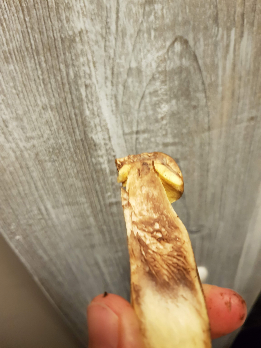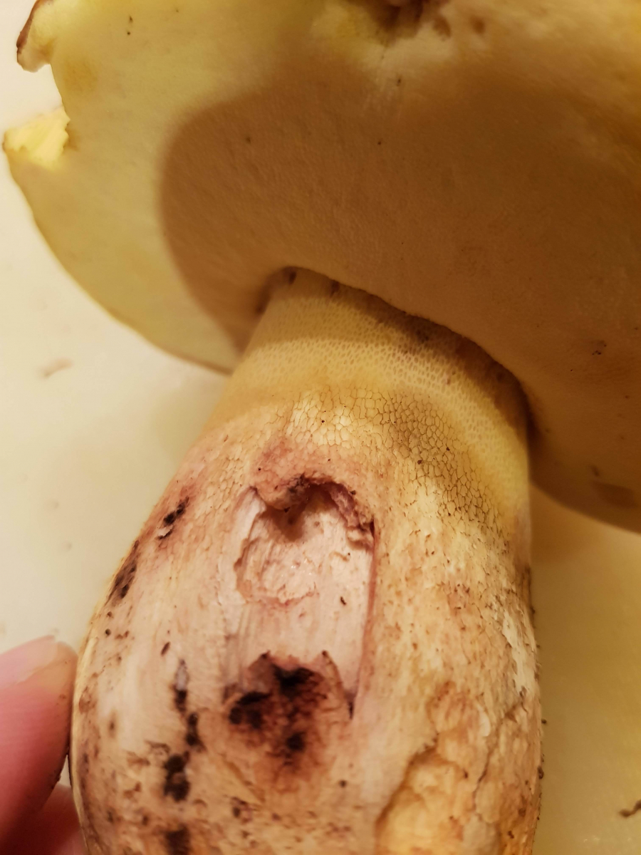 6. Ich hätte getippt, dass es ein echter Anhängselröhrling ist. Keine Verfärbung auf Druck oder Anschnitt und man sieht dieses Art Anhängsel an der Basis.